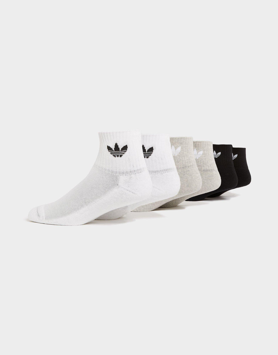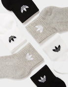 Stock up on top drawer staples with this 6-Pack Quarter Socks from adidas Originals. Coming in White, Grey and Black colourways, these everyday socks are made with a soft, stretchy cotton and recycled poly blend for lasting comfort. They have soft padding underfoot, and a ribbed, ankle-length collar for a snug, secure feel. Finished with signature Trefoil branding to each pair. Machine washable.