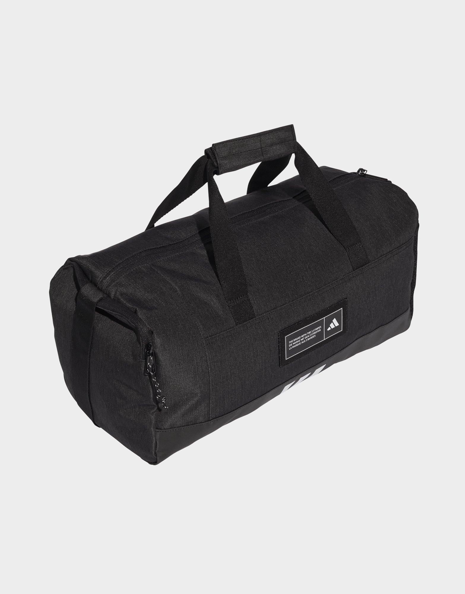 Wherever you're headed—gym, practice, or game day—this compact adidas 4ATHLTS Duffel Bag Small keeps your gear organized. The spacious main compartment holds clothes, shoes, and essentials, while side slip-in pockets and an internal zip pocket keep smaller items secure. A coated bottom adds durability, and the detachable shoulder strap offers versatile carry options. Made with at least 50% recycled materials to help reduce waste and lessen environmental impact. | IM5523 (H: 20 x W: 45.5 x D: 23cm)