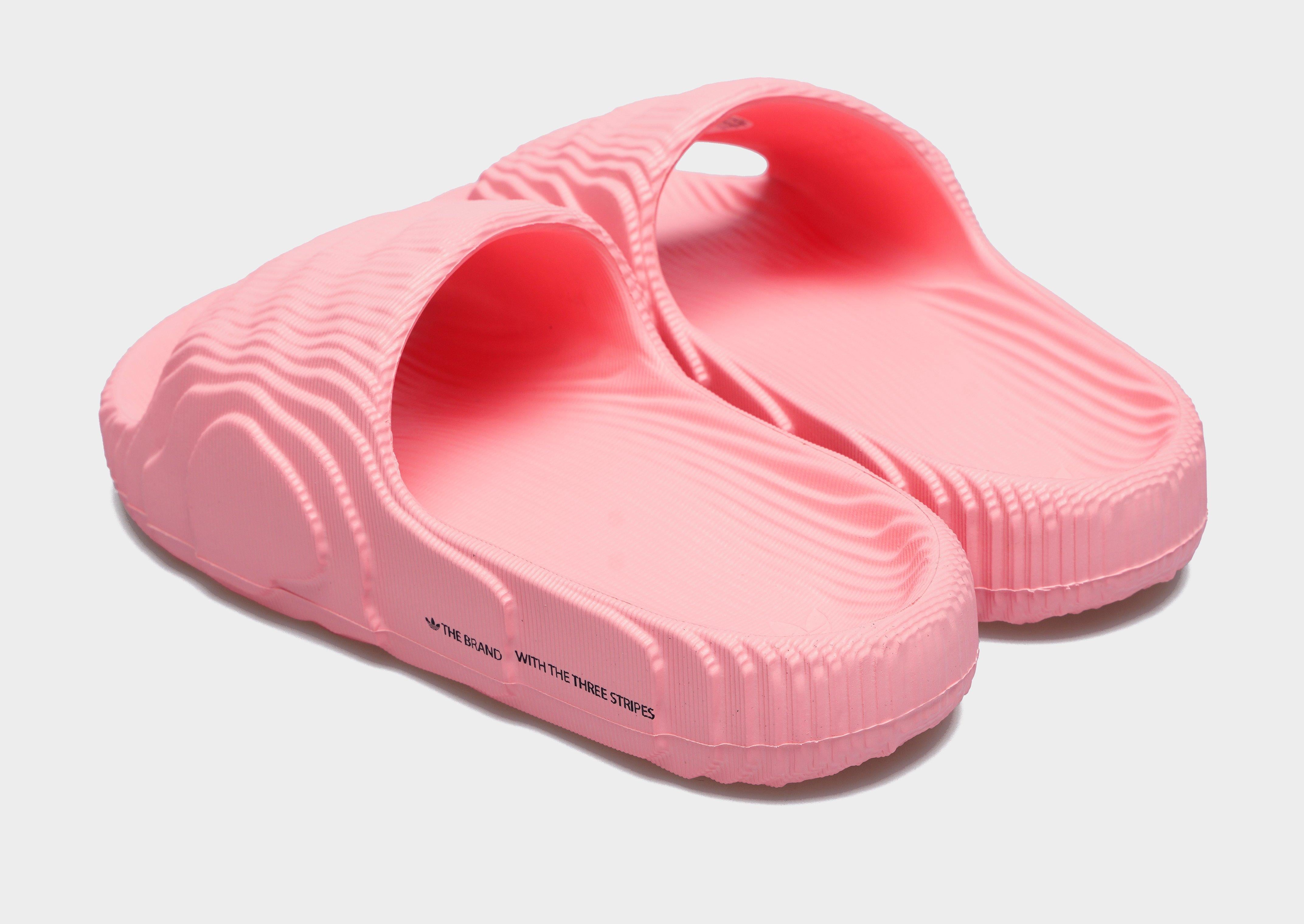Upgrade your essentials with adidas Originals Adilette 22 women's slides in pink. Featuring a smooth, partly recycled synthetic upper and a secure footstrap, these slides offer lightweight comfort and a responsive midsole. A grippy outsole completes the look for reliable wear all day long.