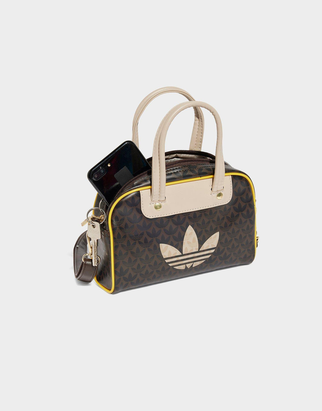 Celebrate adidas heritage with this mini bowling bag, featuring an allover Trefoil monogram print and a bold screen-printed Trefoil on the front. Designed with detachable shoulder straps, carry handles, and contrasting piping, it adds a ’70s-inspired touch to your look wherever you take it. ( H:21 x W:21 x D:21cm )