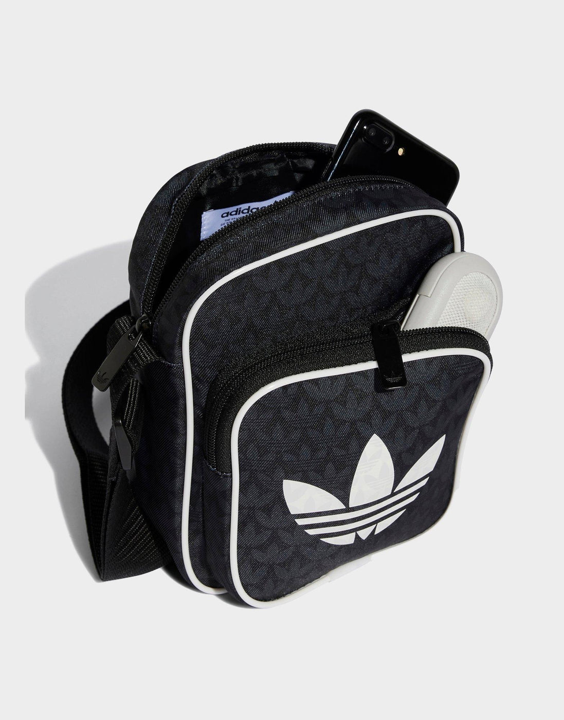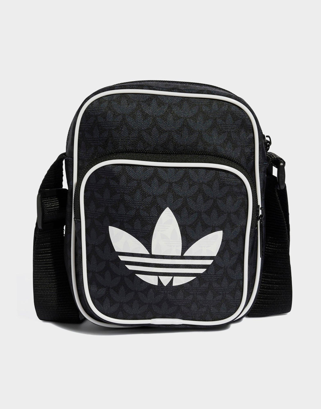 This small adidas Originals shoulder bag is inspired by retro style with a modern, sustainable twist. It features the iconic Trefoil monogram print and an oversized logo, celebrating adidas heritage with a '70s fashion nod. The main compartment is perfectly sized for essentials like your phone, keys, and wallet, complemented by a front pocket with contrasting piping for easy access to smaller items. Made with at least 50% recycled materials, primarily from soft polyester twill, this bag supports waste reduction and lowers environmental impact.