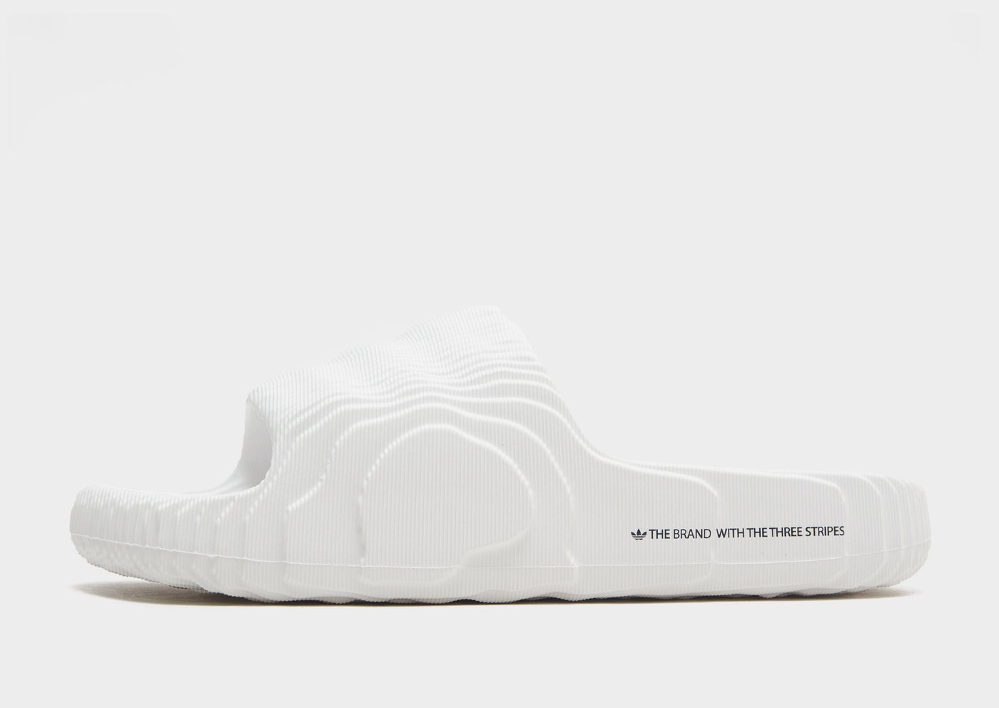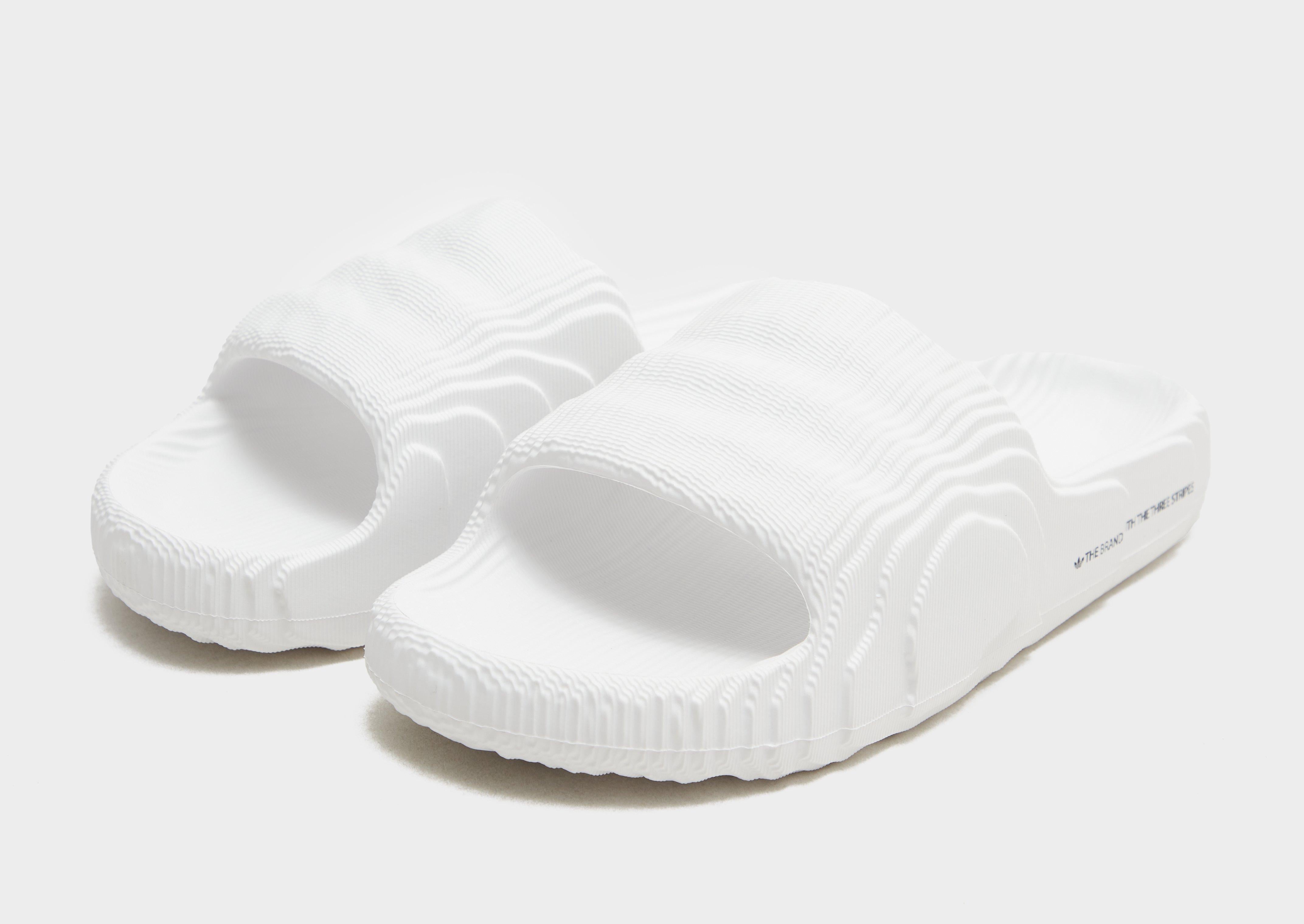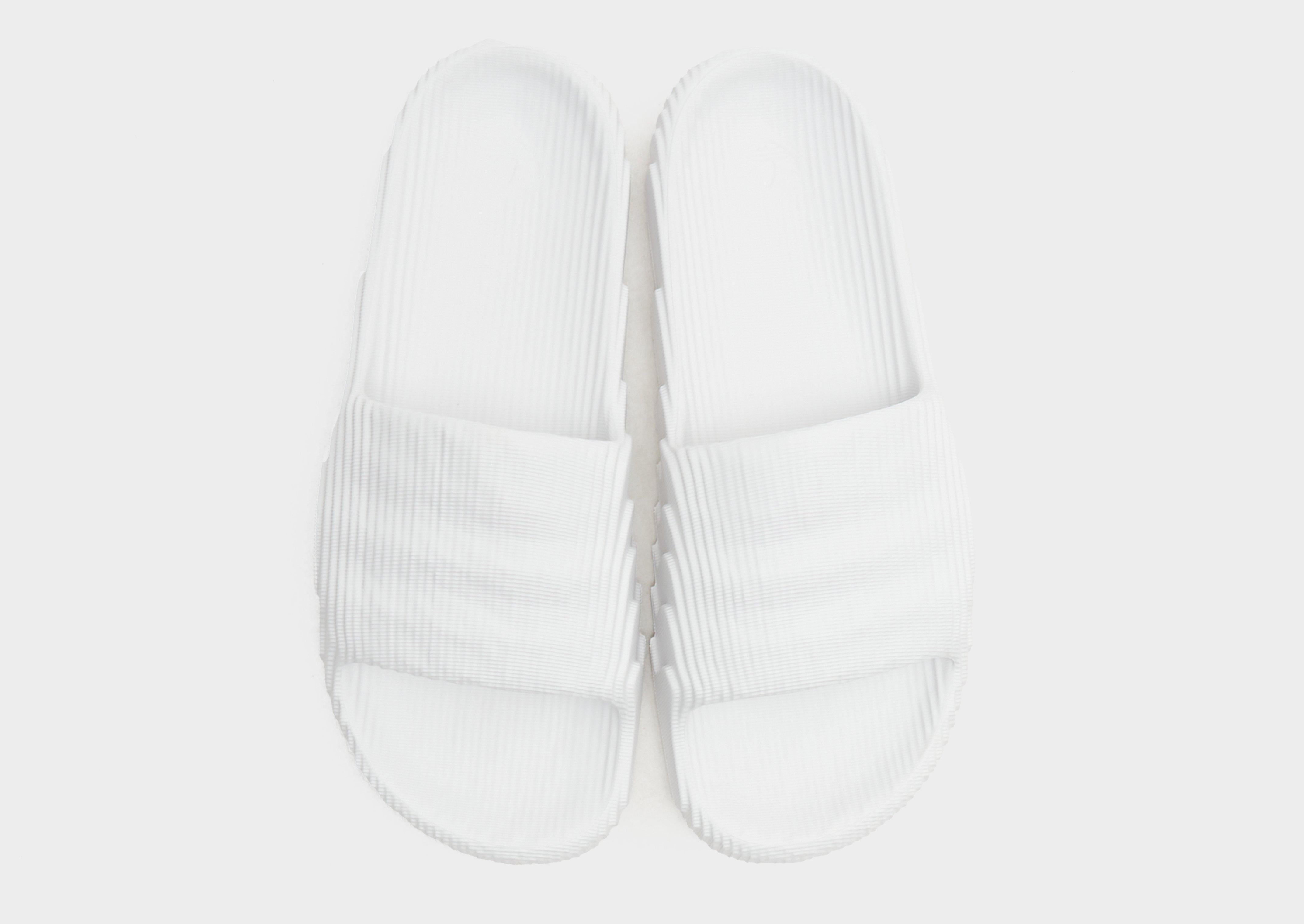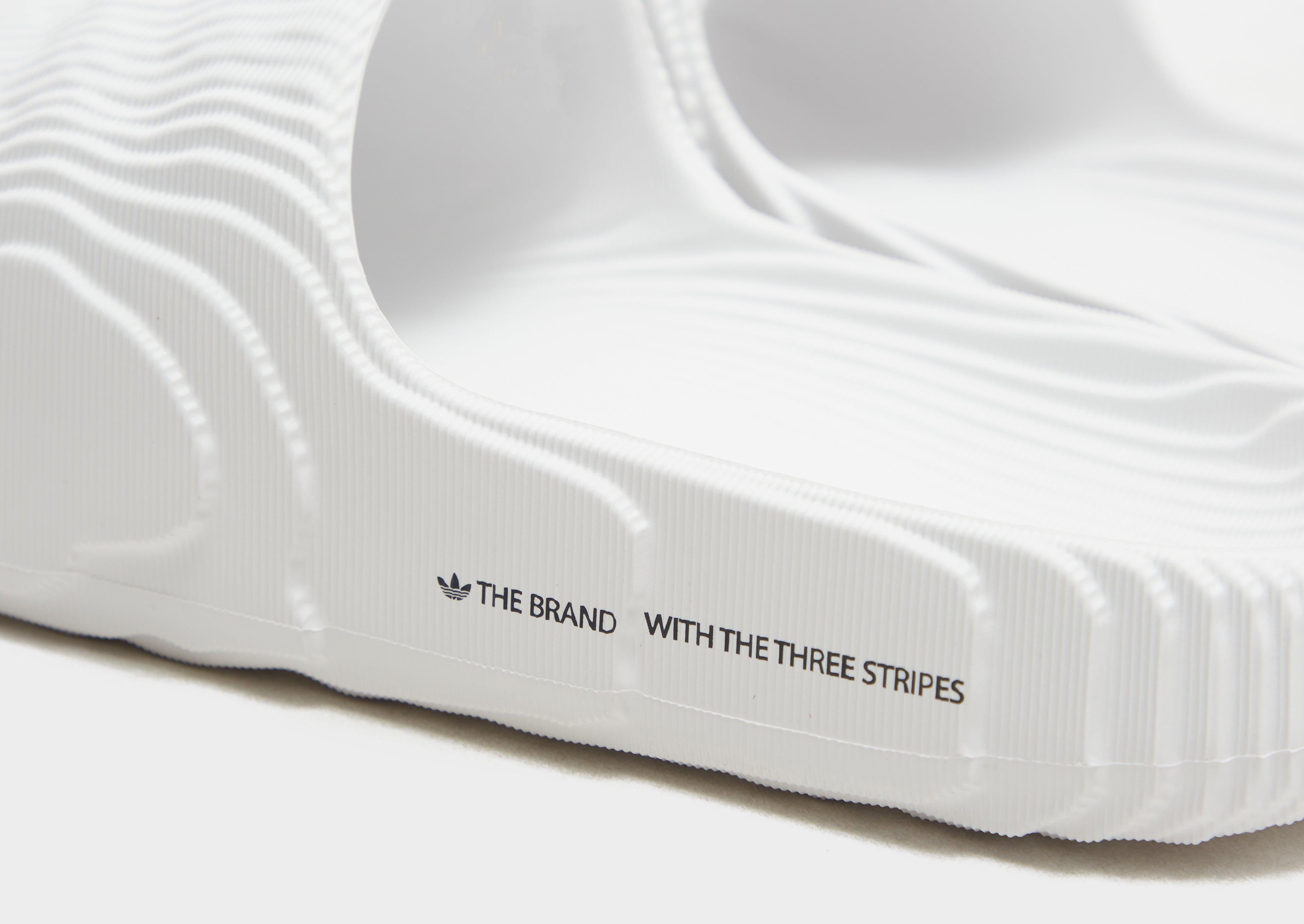 For the design of these adidas slides we looked to topographic maps illustrating expeditions to Mars and the dimensional stages of a new planet. And the futuristic vibes don't end there. They're built with material made in part from sugarcane, one step on the road to a more sustainable future. Wear them on diverse terrain from wet to dry. These slides are made with natural and renewable materials as part of our journey to design out finite resources and help end plastic waste.