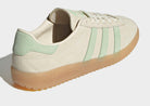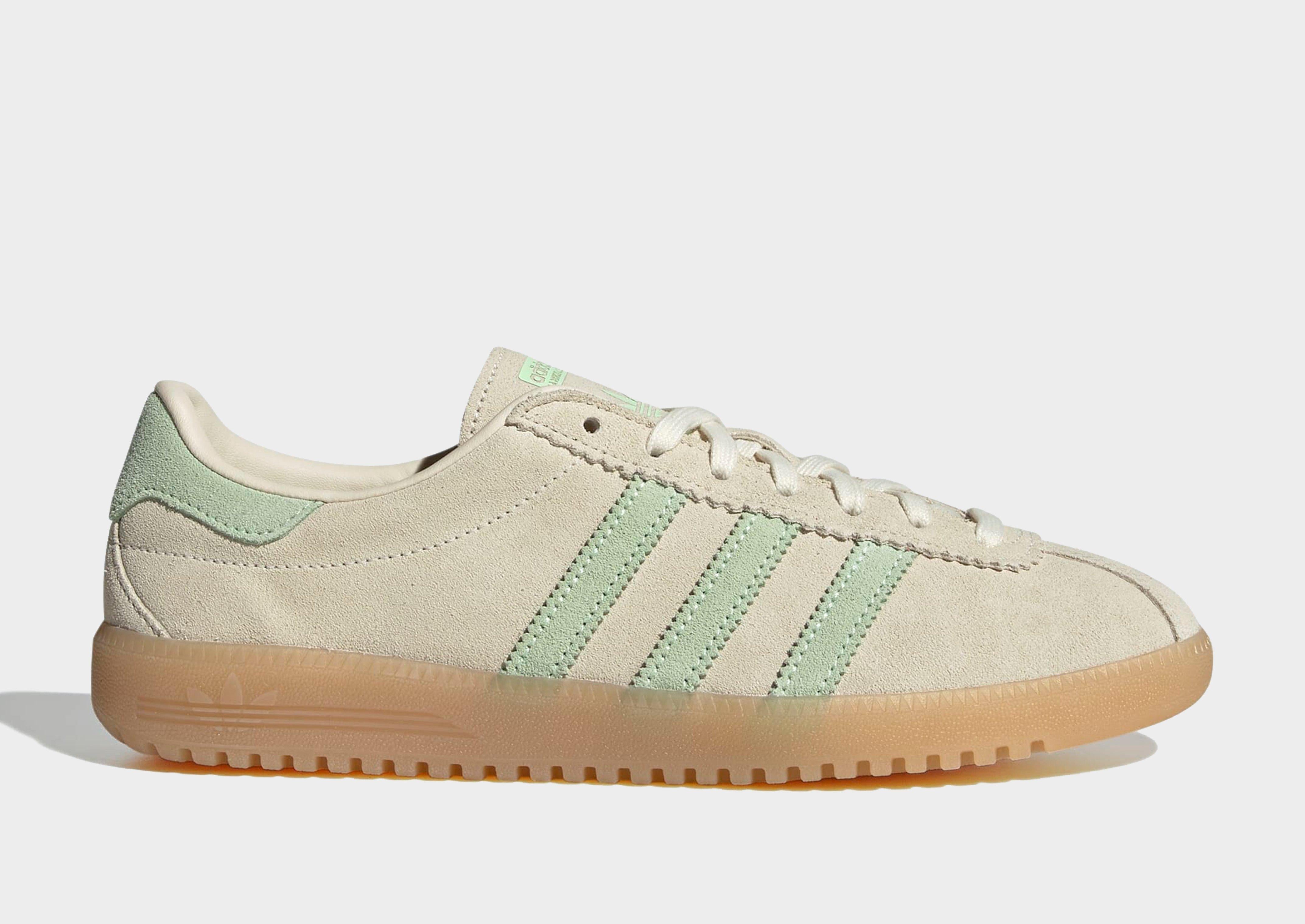 The adidas Originals BRMD trainers for women showcase a retro-inspired design in a Cream White colorway with Semi Green Spark accents. Crafted with a super-soft premium suede upper and featuring a stitched T-toe overlay, these shoes blend vintage style with modern comfort. They offer a tonal lace fastening and a sleek low-profile silhouette for a clean, understated look. Light cushioning ensures comfortable daily wear, while the gum rubber outsole provides reliable grip. Signature adidas Originals branding is featured throughout, reinforcing the heritage vibe of this stylish and versatile trainer.