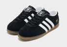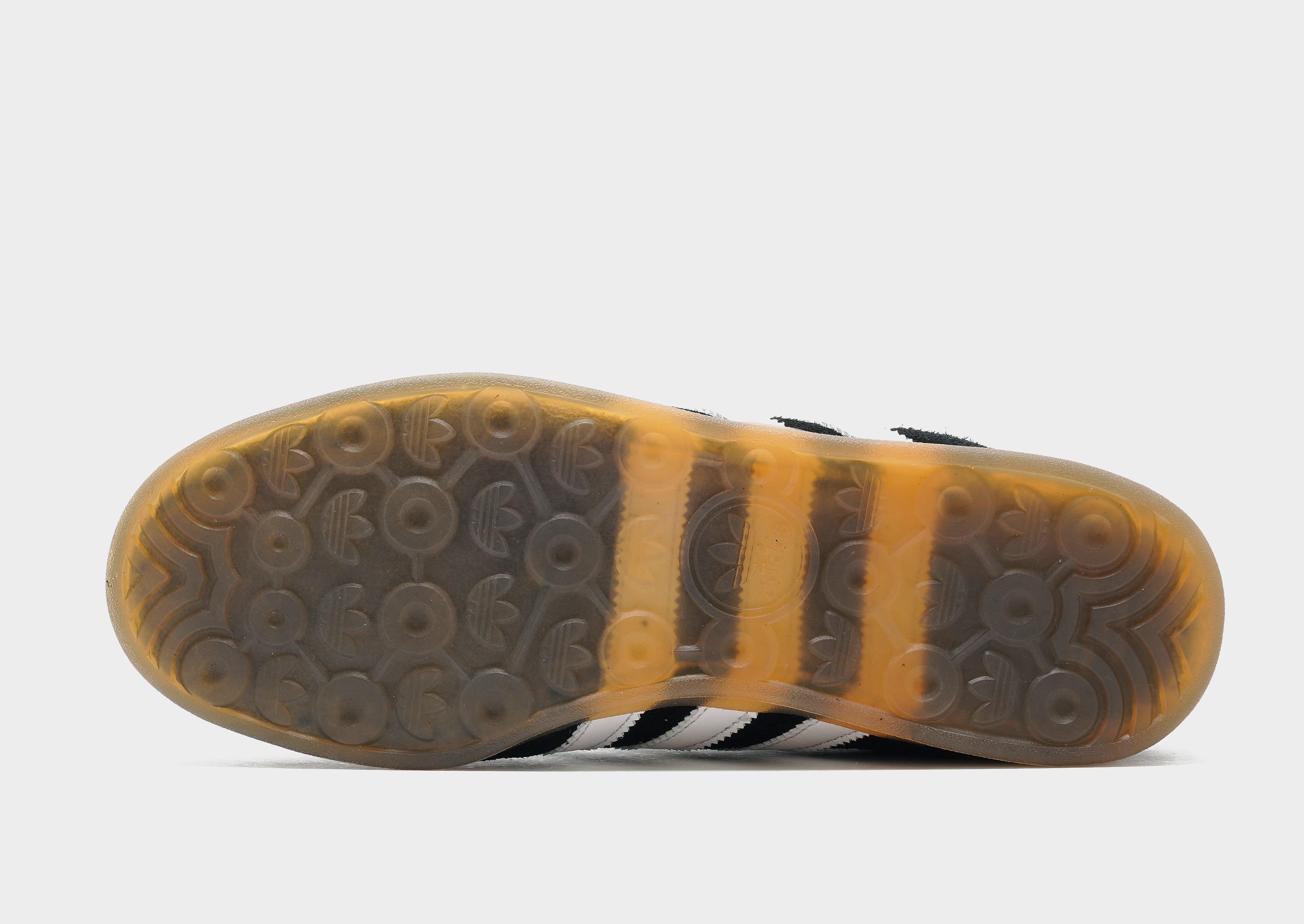 The icon, but lower. These women's Gazelle Lo Pro trainers from adidas Originals land in a classic Black and White combo. The synthetic leather and suede upper has the signature T-toe support. Underfoot, the ultra-low sole has a Gum 3 rubber tread to keep you gripped. Finished off with the 3-Stripes, a Trefoil badge and the Gold foil Gazelle wordmark.