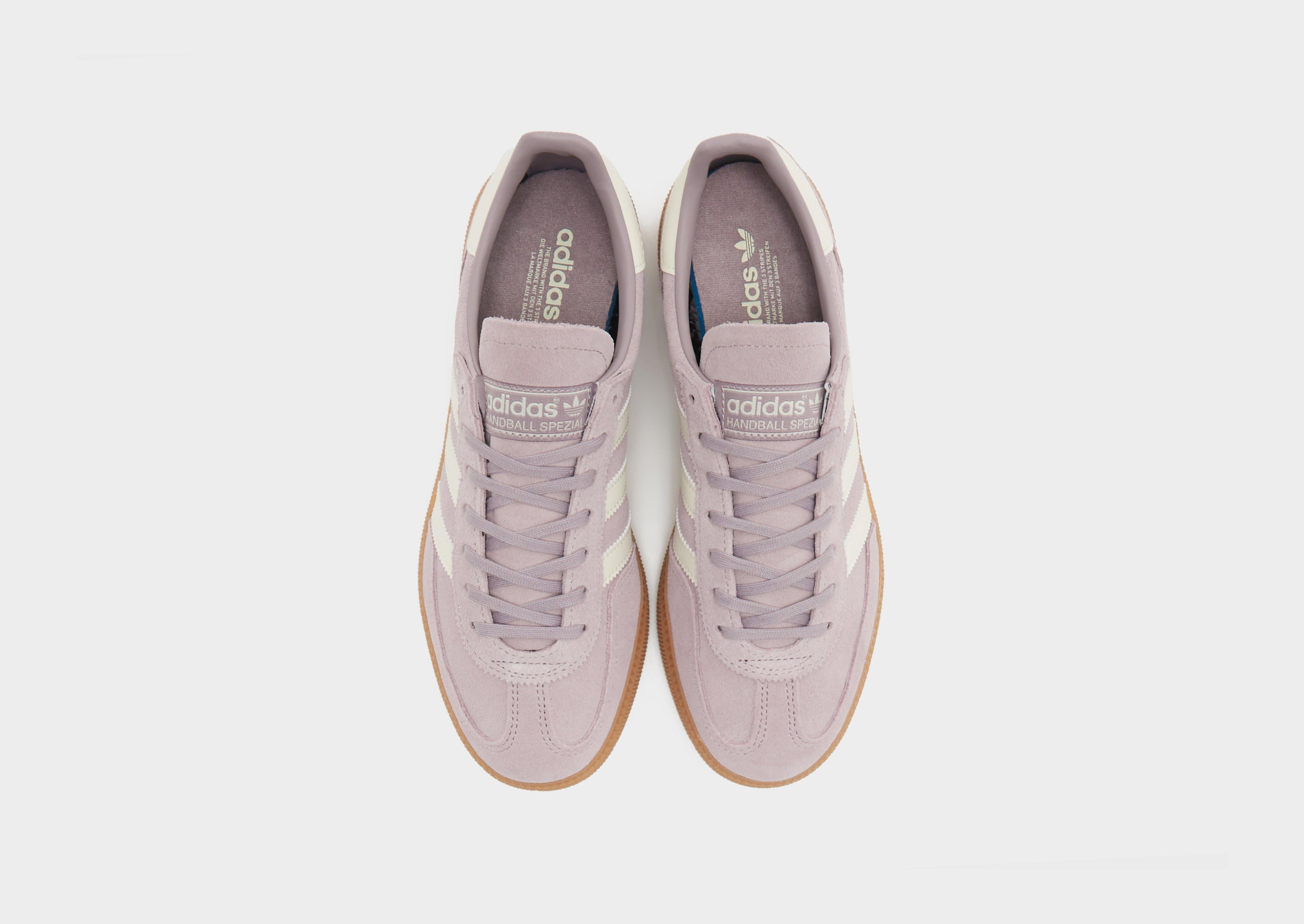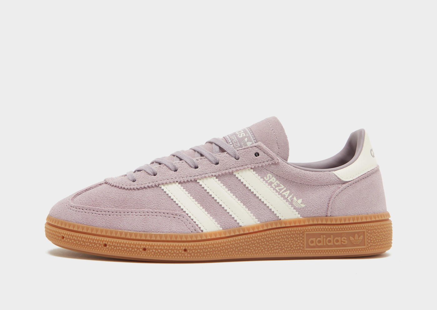 Freshen up your rotation with these juniors' Handball Spezial trainers from adidas Originals. In a JD-exclusive Preloved Fig and Cream White colourway, these kicks have a soft suede upper for lasting wear. With the iconic T-toe construction, they feature a tonal lace fastening with a padded collar to lock you in, with light cushioning underfoot for all-day comfort. They have a sleek, streamlined sole and a gum rubber tread for traction. Signed off with adidas' legendary 3-Stripes to the sidewalls and Trefoil branding throughout. | JH8663