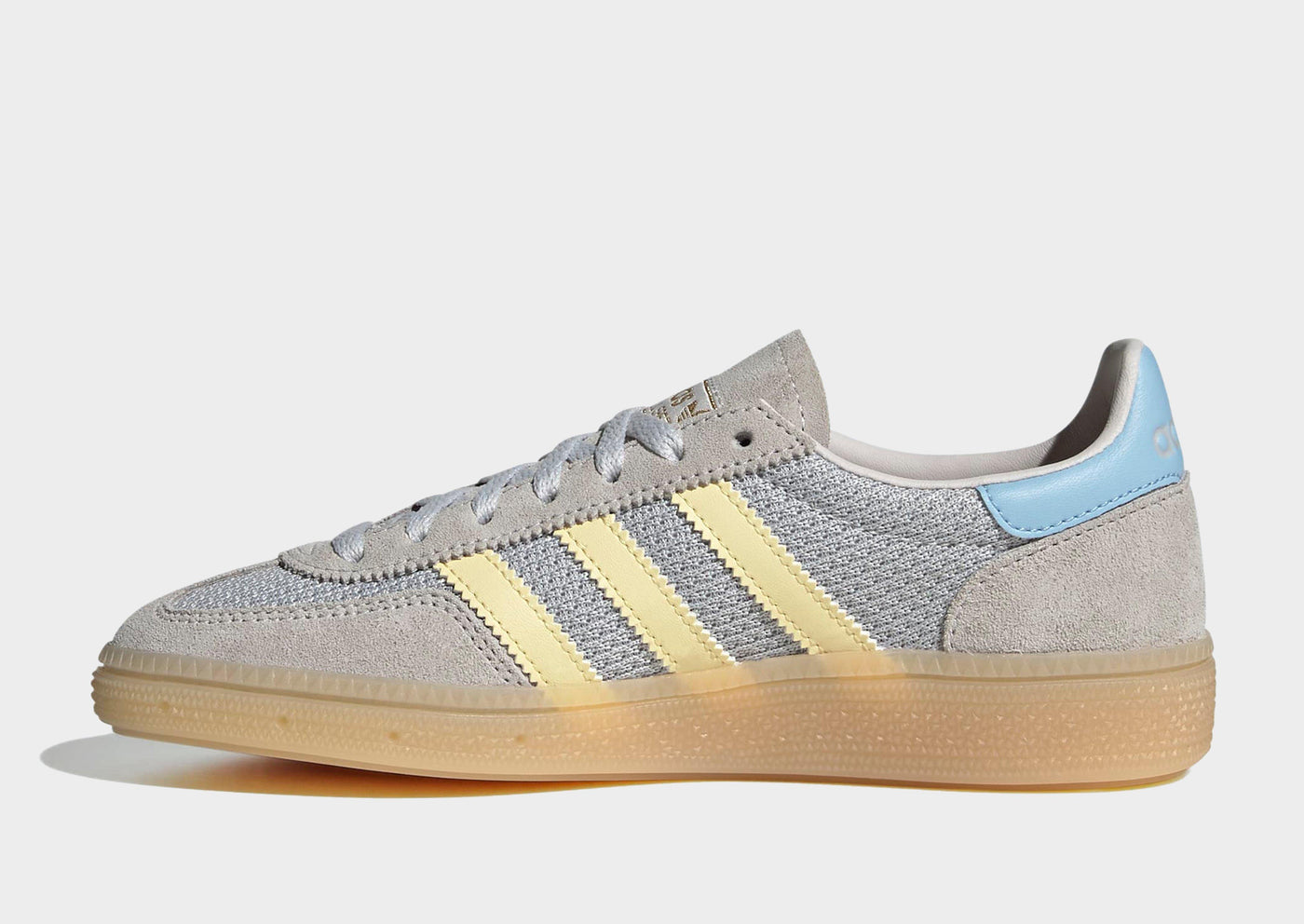 Terrace icons get a remix. Check out these juniors' Handball Spezial Woven sneakers from adidas Originals. In a Grey One and Almond Yellow colourway, these JD-exclusive sneaks are cut from breathable mesh with smooth leather overlays. They feature a lace fastening to lock you in, with a textile lining for a snug fit. Underfoot, they sit on a grippy rubber outsole for firm traction and are finished up with classic Trefoil branding and signature 3-Stripes.