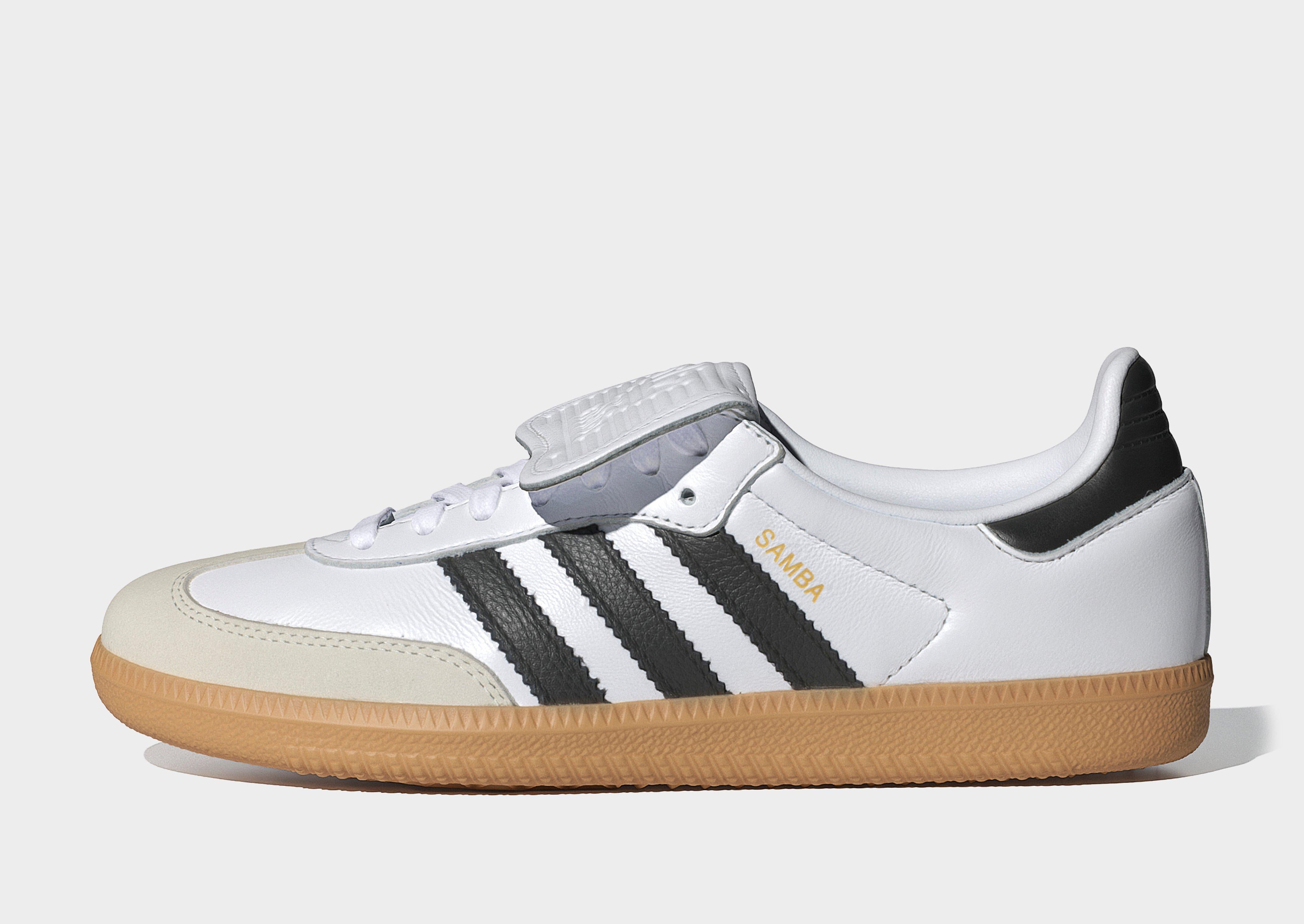 Lace up legendary adidas Samba LT shoes that blend retro sport heritage with modern streetwear flair. Originally designed for indoor football, these classics now shine with an oversized, football-inspired tongue that turns heads. Crafted from premium leather and finished with a sleek nubuck toe, they add a refined edge to any outfit — from denim to joggers. The lightweight rubber outsole delivers durable traction and timeless style, making these shoes your go-to for everyday cool.