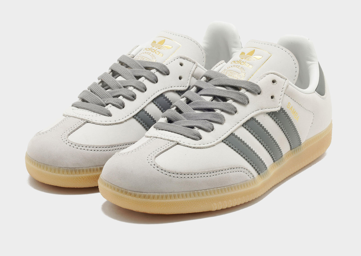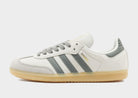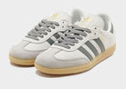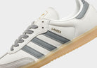 Add a streetwear icon to your footwear rotation with these men's Samba OG shoes from adidas Originals. Taking cues from the original football-inspired Samba design first introduced in the 1950s, these iconic terrace sneakers let you imagine you're walking in those vintage footsteps. Built with a Light Grey leather upper, they feature a suede toe guard and are sat upon a responsive gum midsole. With tonal laces and signature adi 3-stripes to the side in Grey, they're signed off with 'Samba' wording to the side, and iconic Trefoil branding to the tongue.