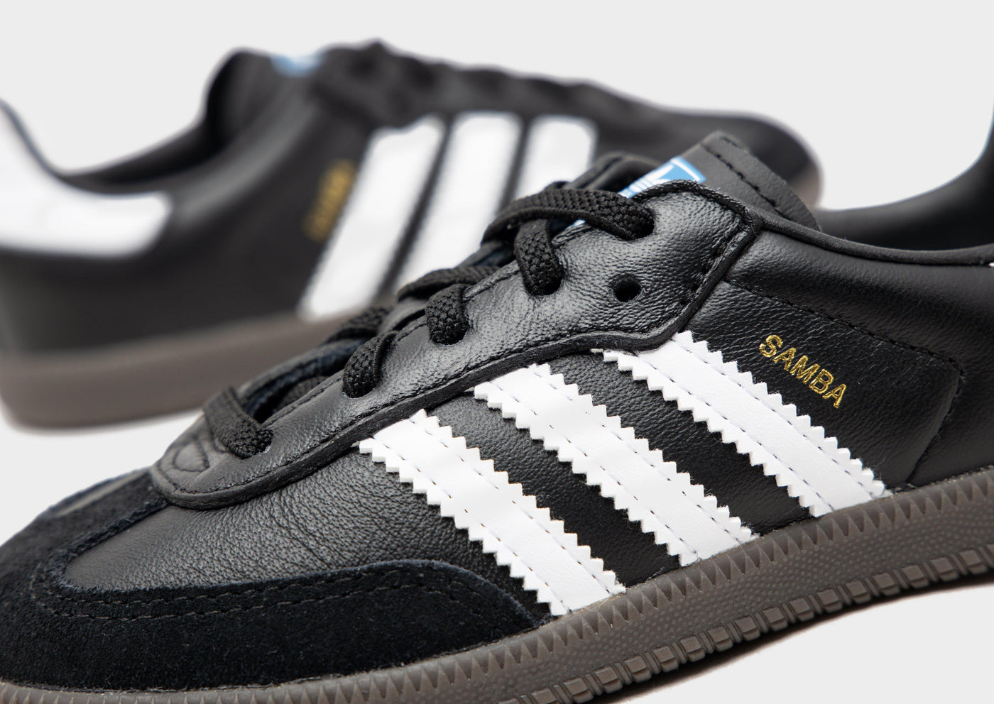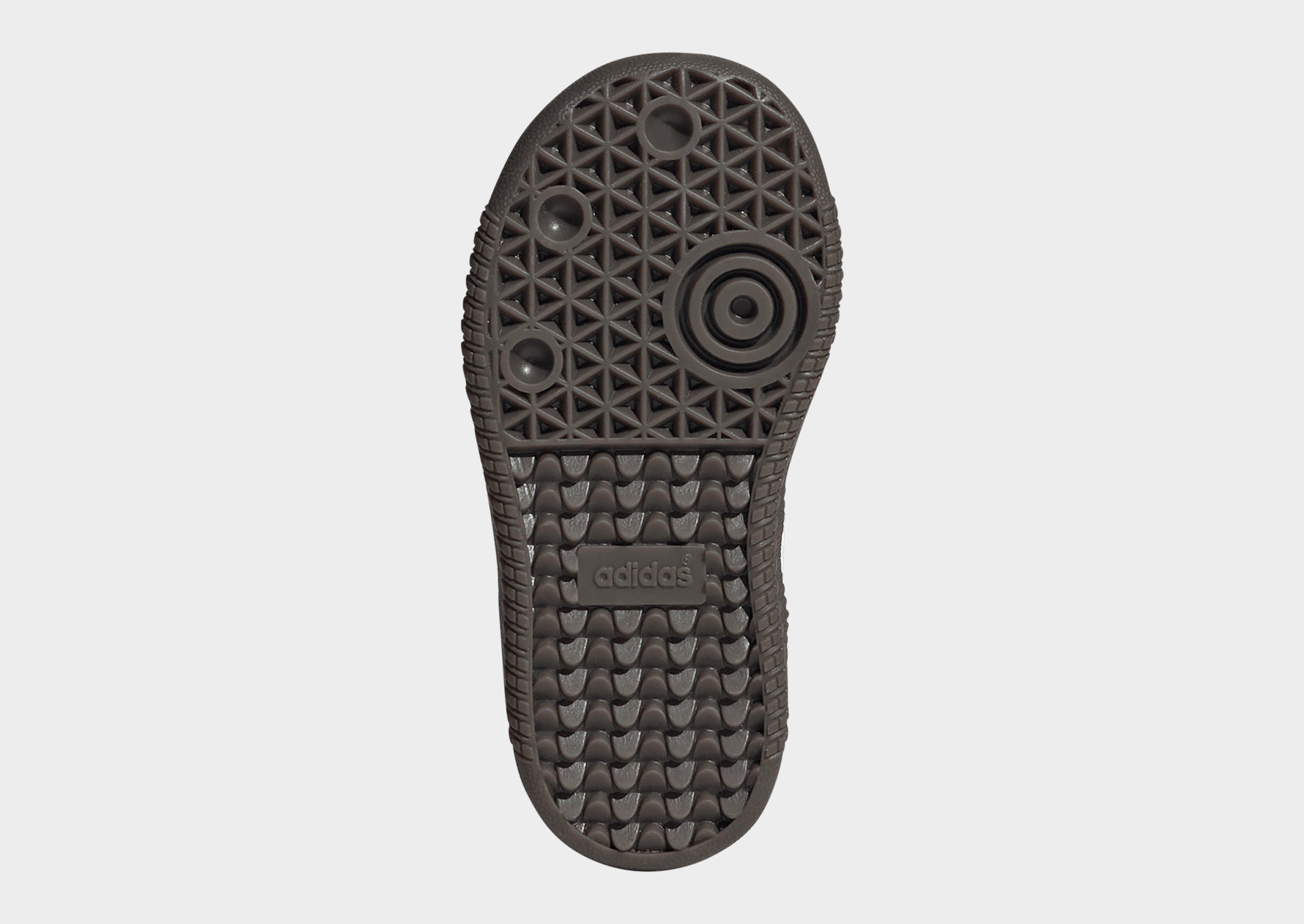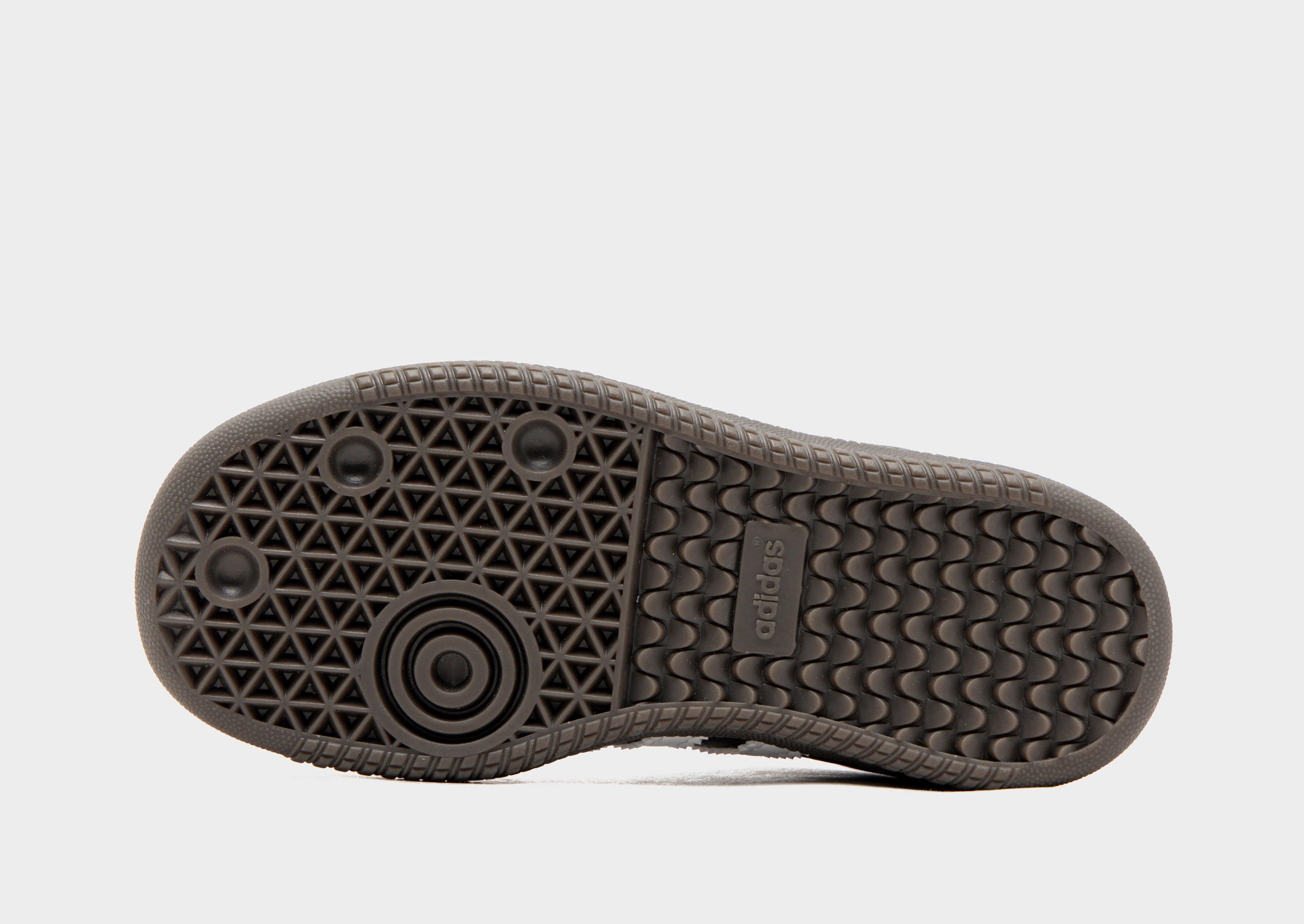 Treat 'em to a downsized terrace classic from adidas Originals in these infants' Samba OG trainers. Coming in a Core Black colourway, these low-profile kicks have a leather upper for durable wear and a premium vibe. They feature an elastic lace closure with a padded ankle collar for a snug, secure fit and a OrthoLite sockliner for cushioned comfort. Underfoot is a lightweight midsole for all-day wear and a gum rubber outsole to keep them gripped to the surface. With the famous 3-Stripes to the sidewalls, they're signed off with the Trefoil to the tongue.