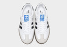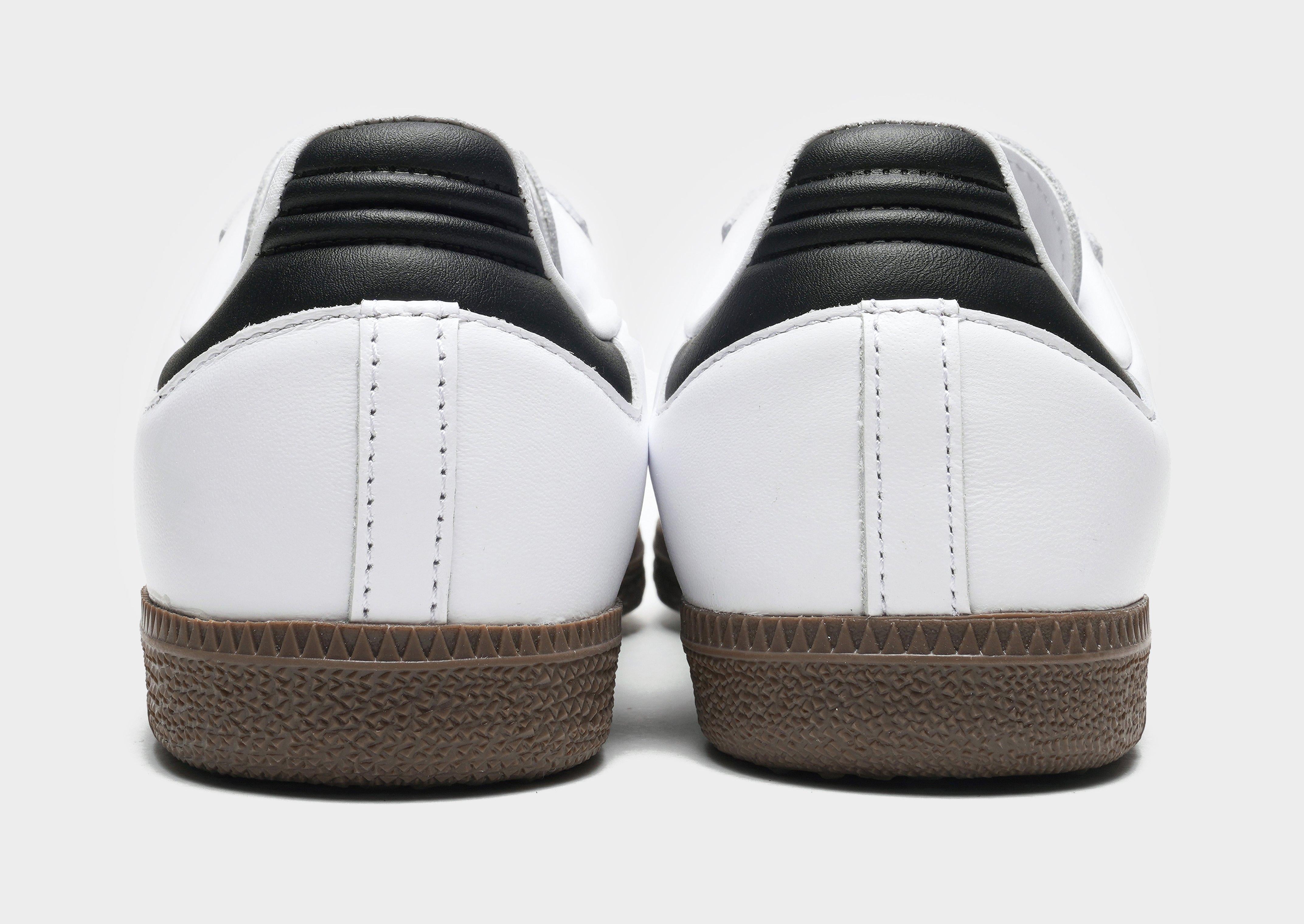 Freshen up your rotation with an iconic style in these juniors' Samba OG trainers from adidas Originals. In a White colourway, these kicks have a durable leather and suede upper for lasting wear. With a classic T-toe construction, they have a tonal lace fastening with soft padding around the collar for a locked-in fit. They sit above a lightweight, streamlined midsole for cushioning underfoot, while a grippy gum rubber outsole delivers essential traction. Finished with signature 3-Stripes to the sidewalls with a Samba wordmark, and the legendary Trefoil logo throughout. | IE3675