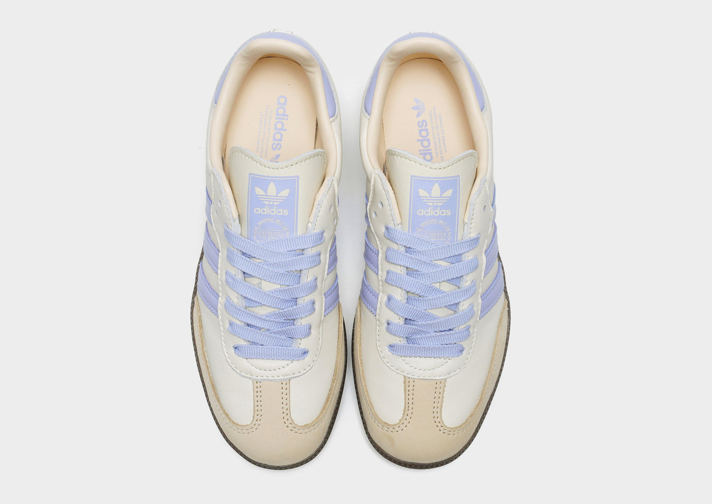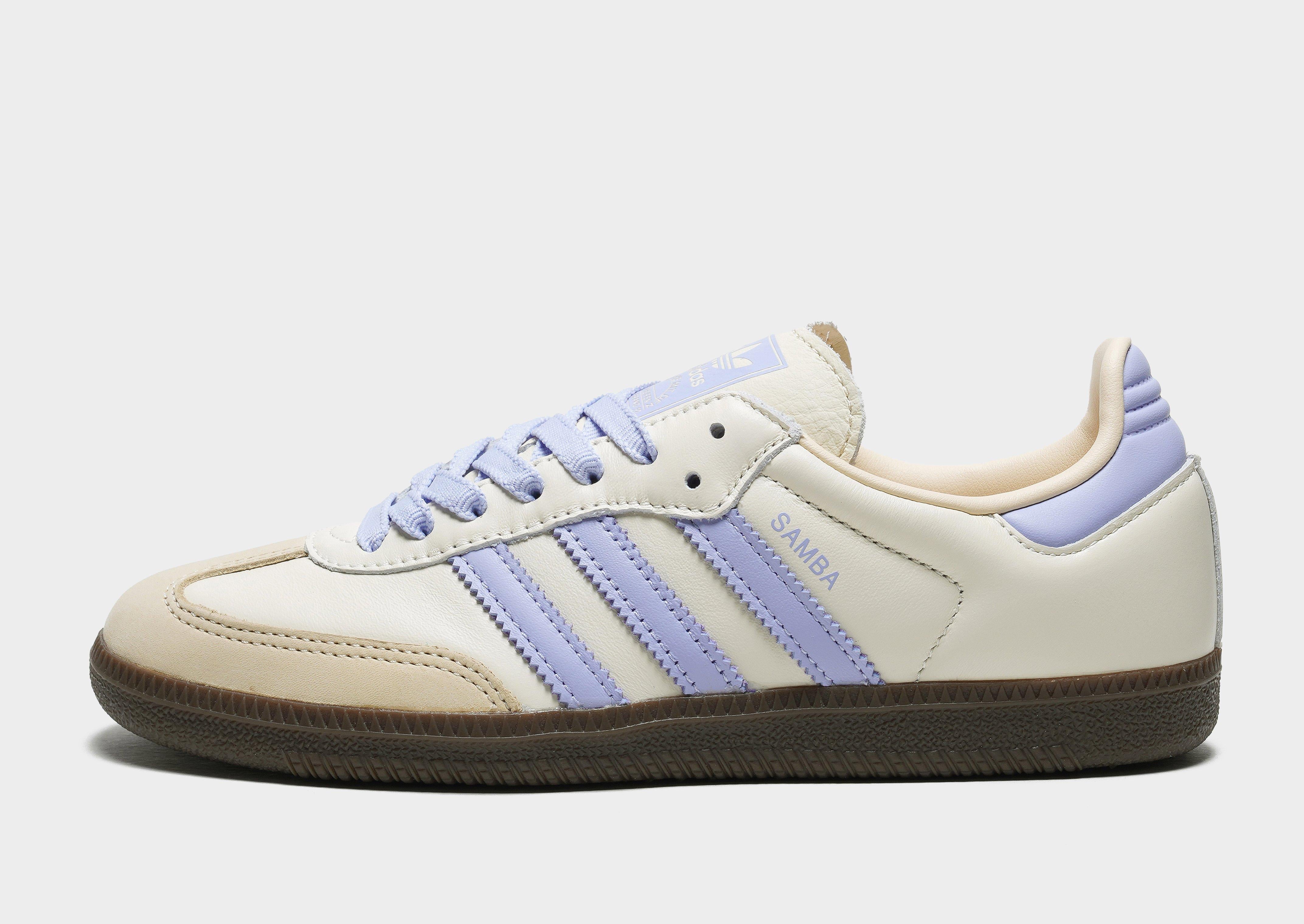 Add a timeless touch to your wardrobe with the adidas Originals Samba OG Women's trainers. With a Cream White upper and Violet Tone accents, these shoes feature soft leather and a signature suede T-toe cap. A sleek midsole and grippy gum rubber outsole finish off the iconic look.