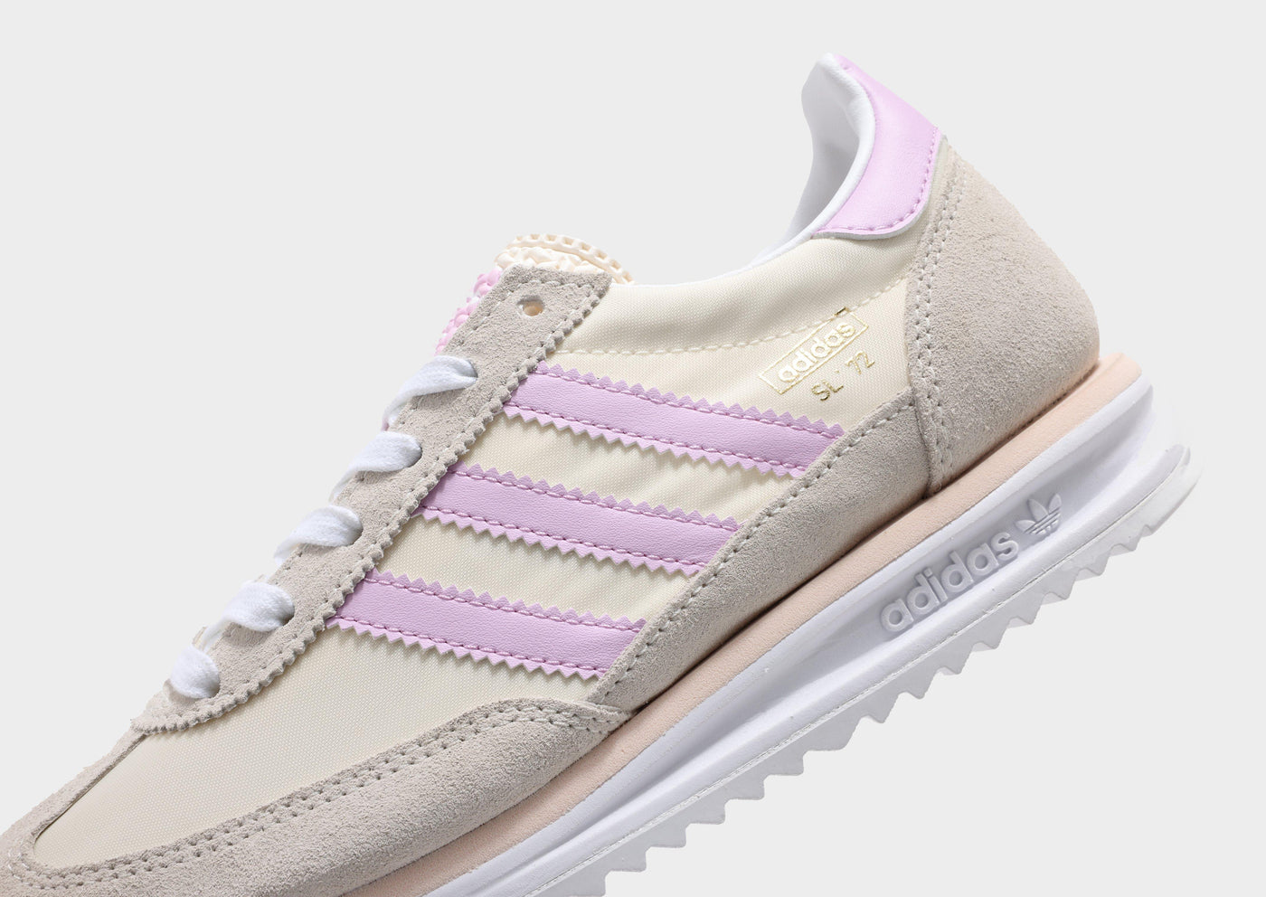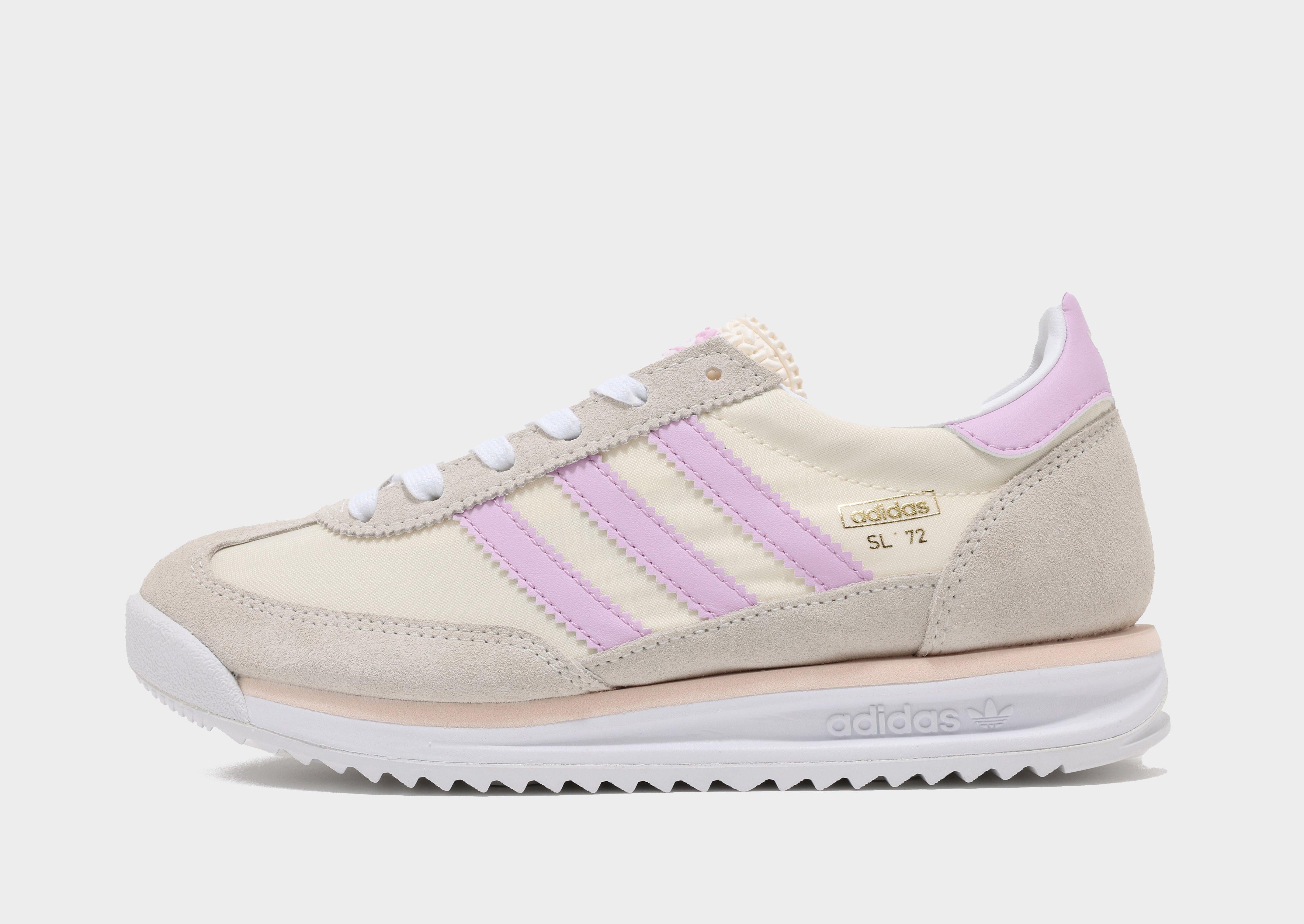 Remastered for a fresh look, the adidas Originals SL 72 RS Junior trainers blend nylon and suede in a Chalk White and Wonder Quartz colourway. Lightweight EVA midsoles and serrated rubber outsoles provide comfort and grip, finished with Bliss Lilac 3-Stripes and gold branding.