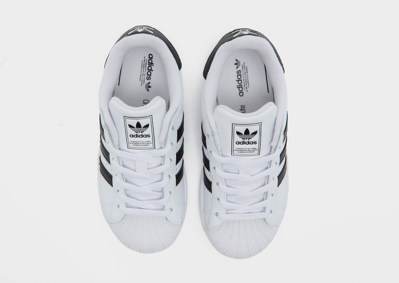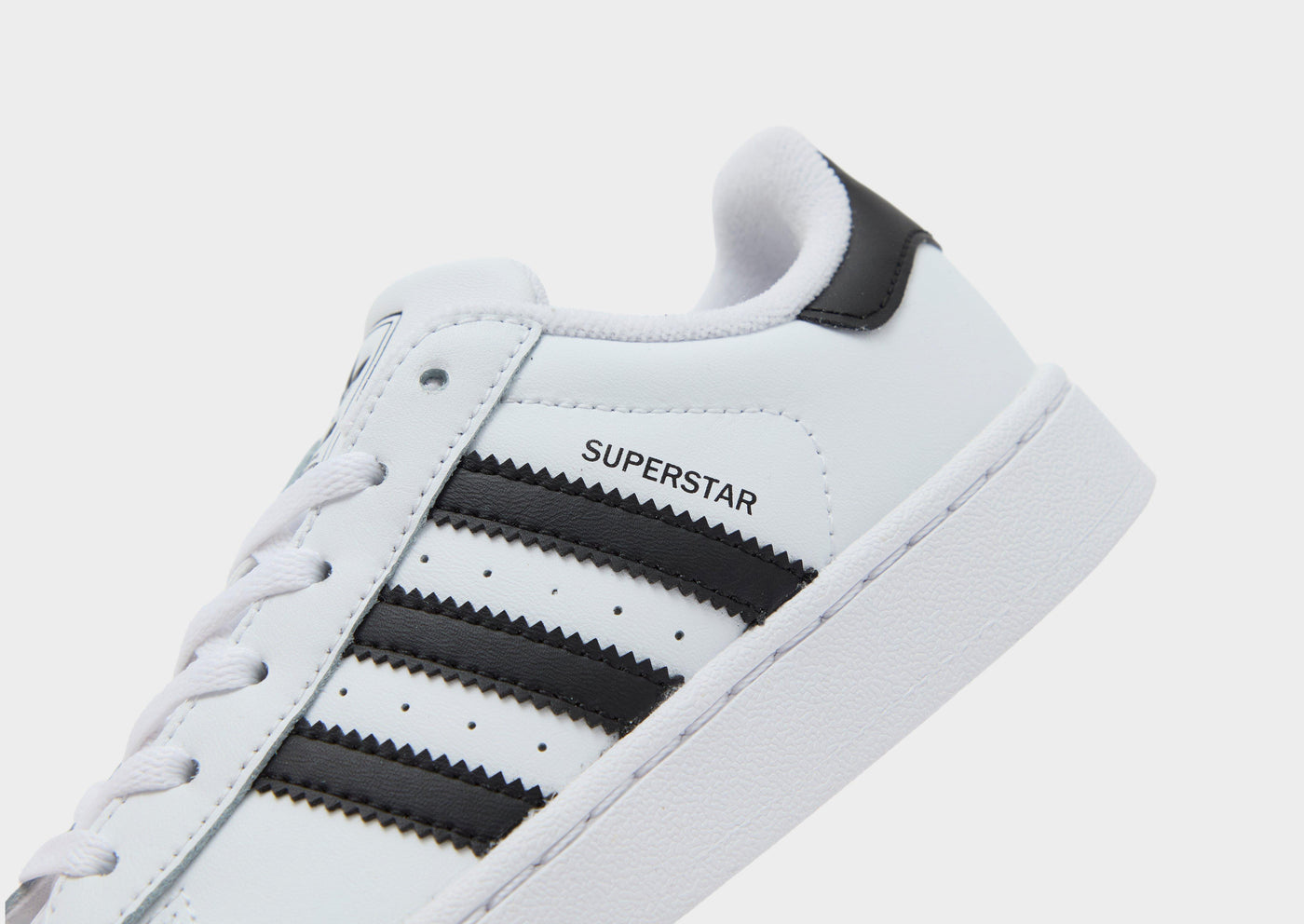 Lace em up in OG style. These children's Superstar sneakers from adidas Originals are straight-up classic. With a smooth and durable upper, they have a padded collar for support. A textile lining for a snug fit. And a grippy rubber tread for traction. Finished with serrated 3-Stripes and Trefoil branding.