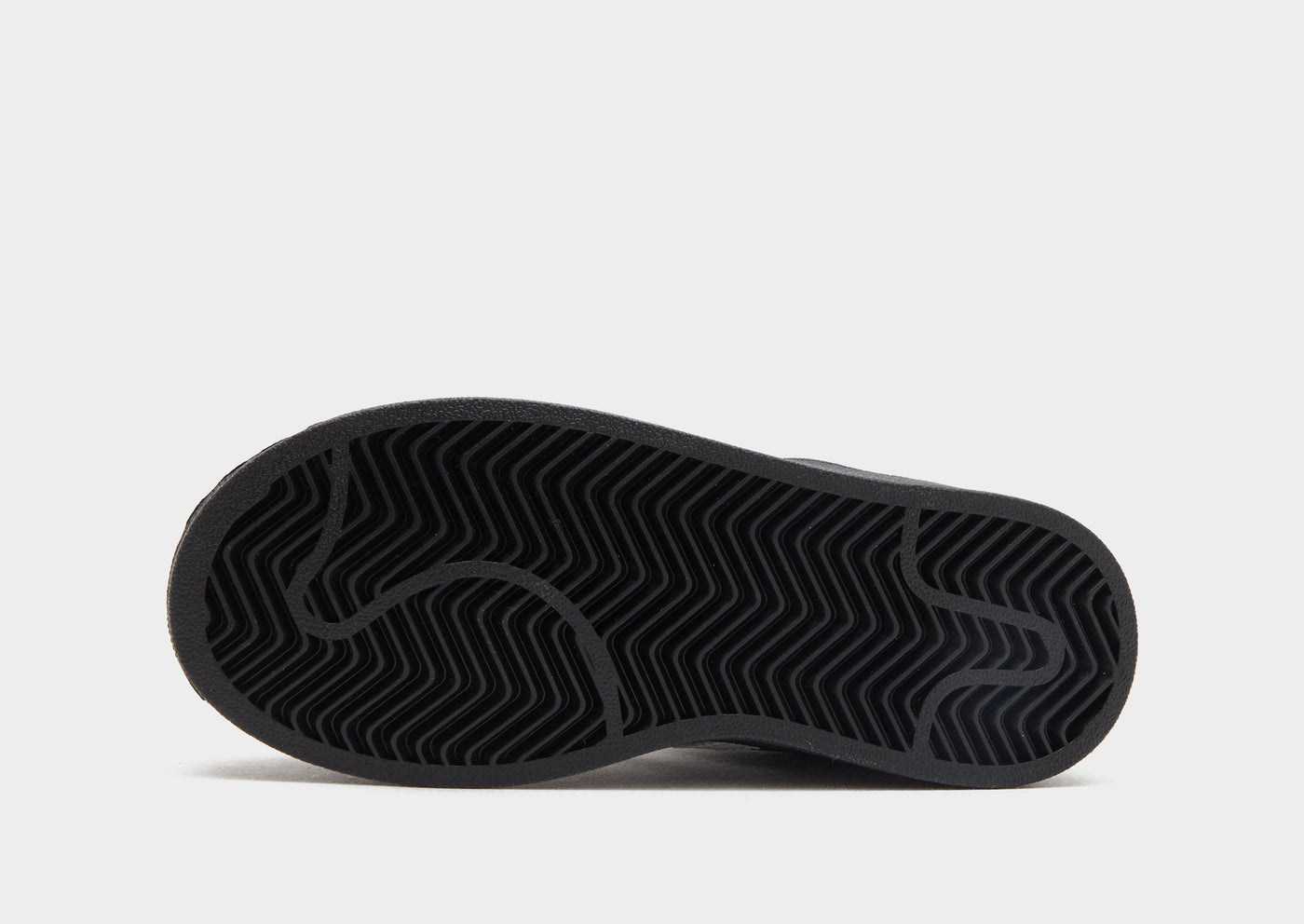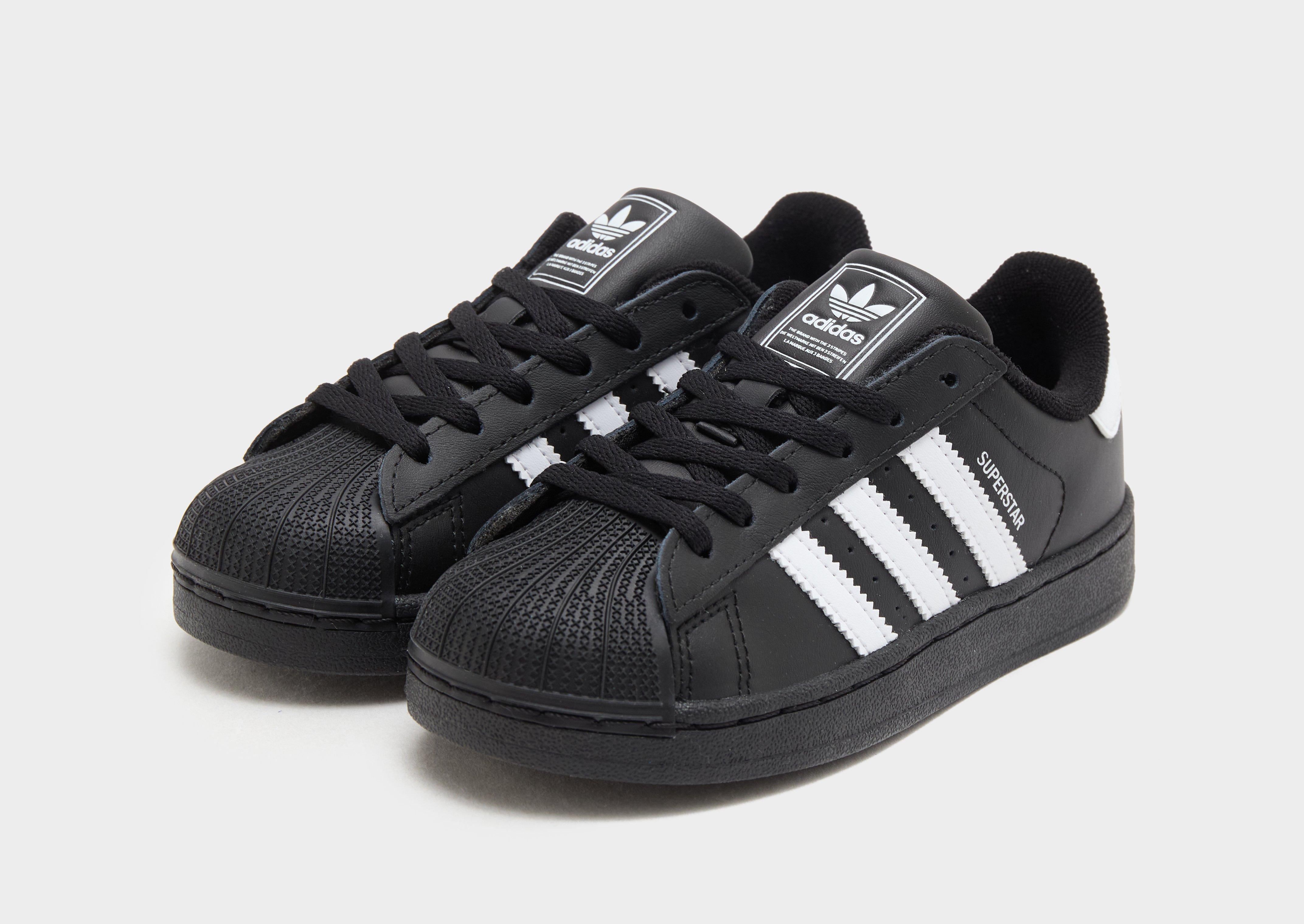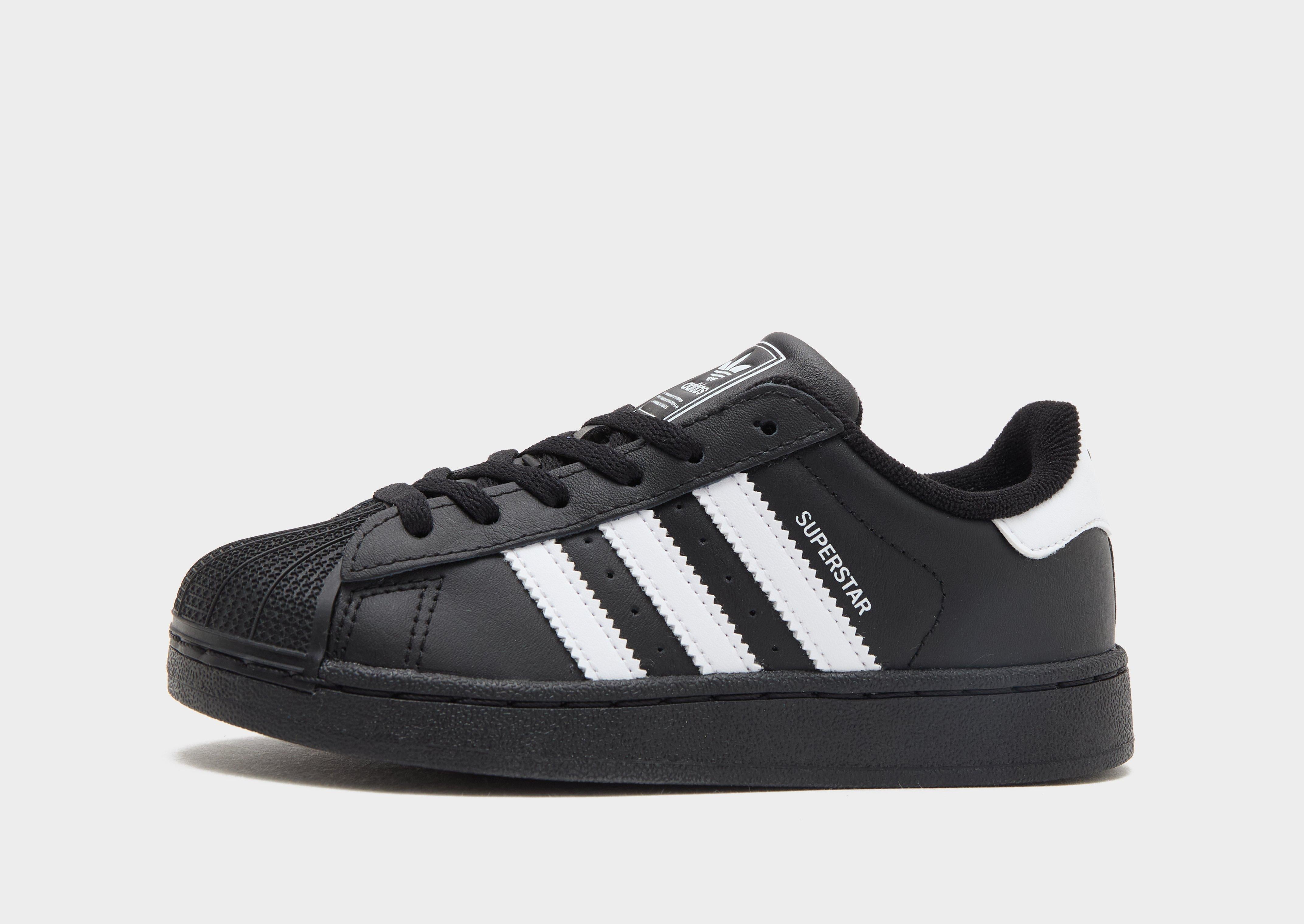 Keep it classic on their feet. These children's Superstar sneakers from adidas Originals bring OG style to their step. The upper is smooth and durable. A padded collar keeps them supported. The moulded sockliner and textile lining keeps the fit snug. Underfoot, a grippy rubber outsole brings firm traction. Serrated 3-Stripes and Trefoil branding signs things off.