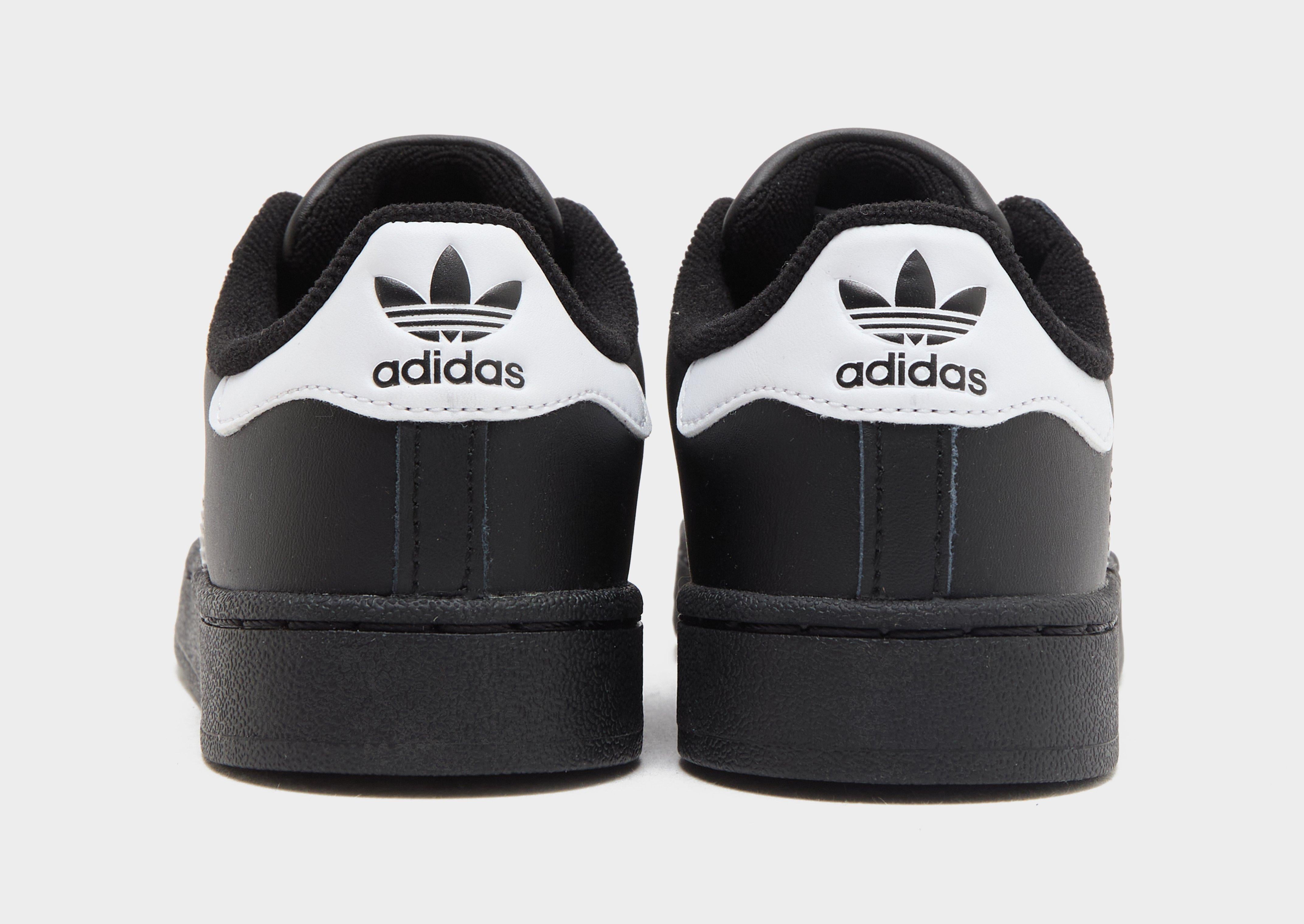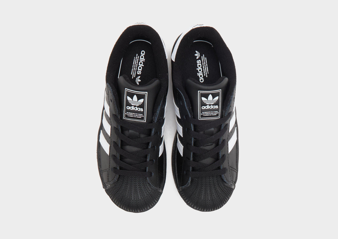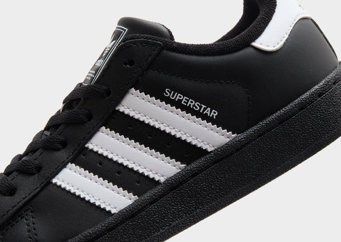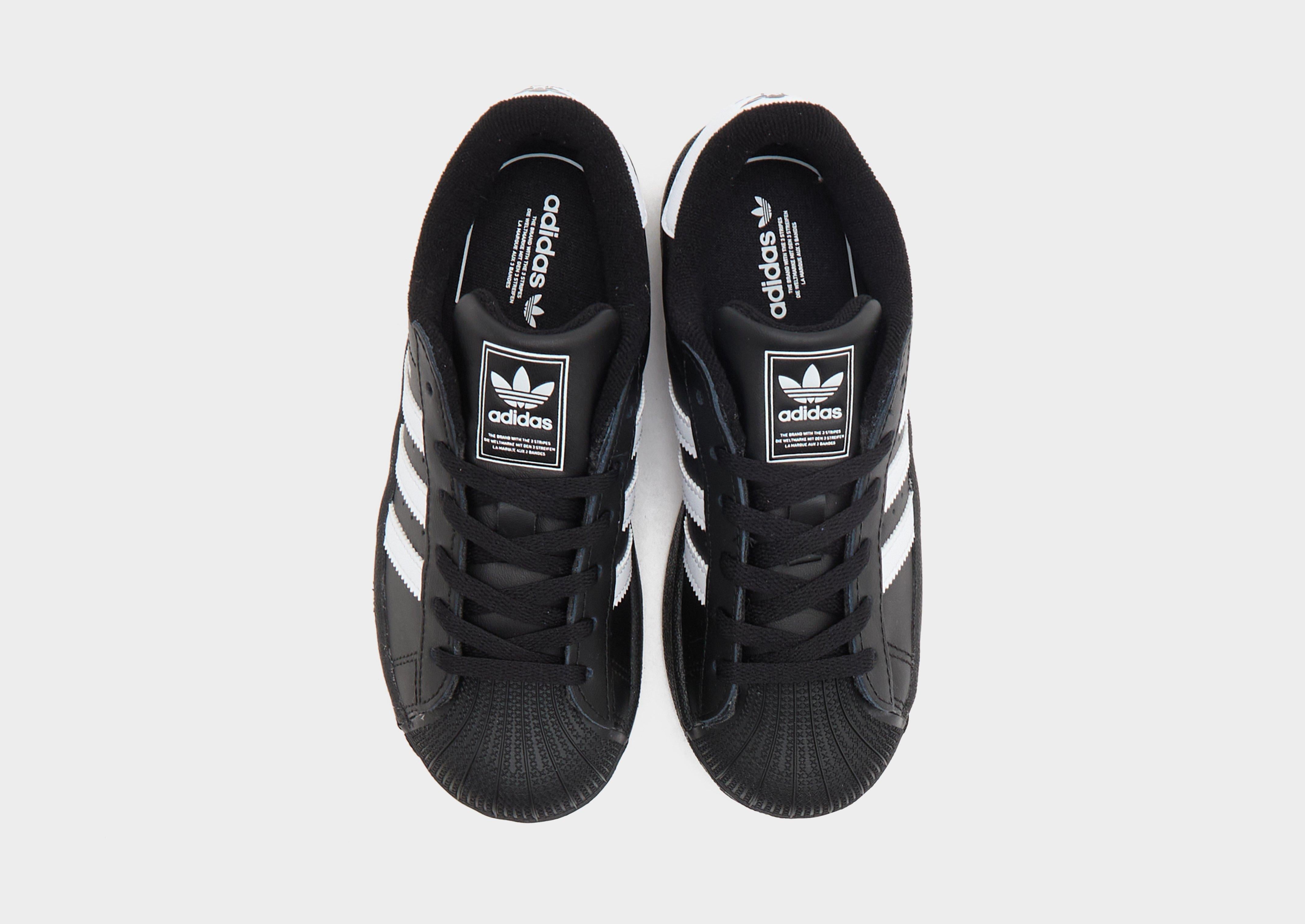 Keep it classic on their feet. These children's Superstar sneakers from adidas Originals bring OG style to their step. The upper is smooth and durable. A padded collar keeps them supported. The moulded sockliner and textile lining keeps the fit snug. Underfoot, a grippy rubber outsole brings firm traction. Serrated 3-Stripes and Trefoil branding signs things off.
