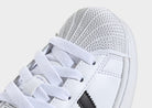 Lace up in an OG classic. These juniors' Superstar sneakers from adidas Originals have the iconic shell toe. Smooth and durable, they feature a padded collar for support and a moulded sockliner for a snug fit. Underfoot, they sit on a grippy rubber outsole for firm traction. Finished up with serrated 3-Stripes and Trefoil branding. |