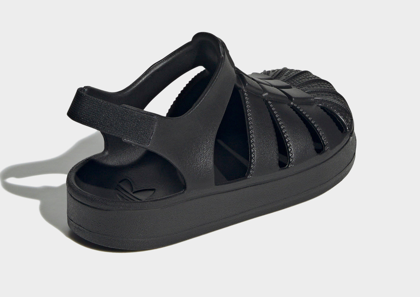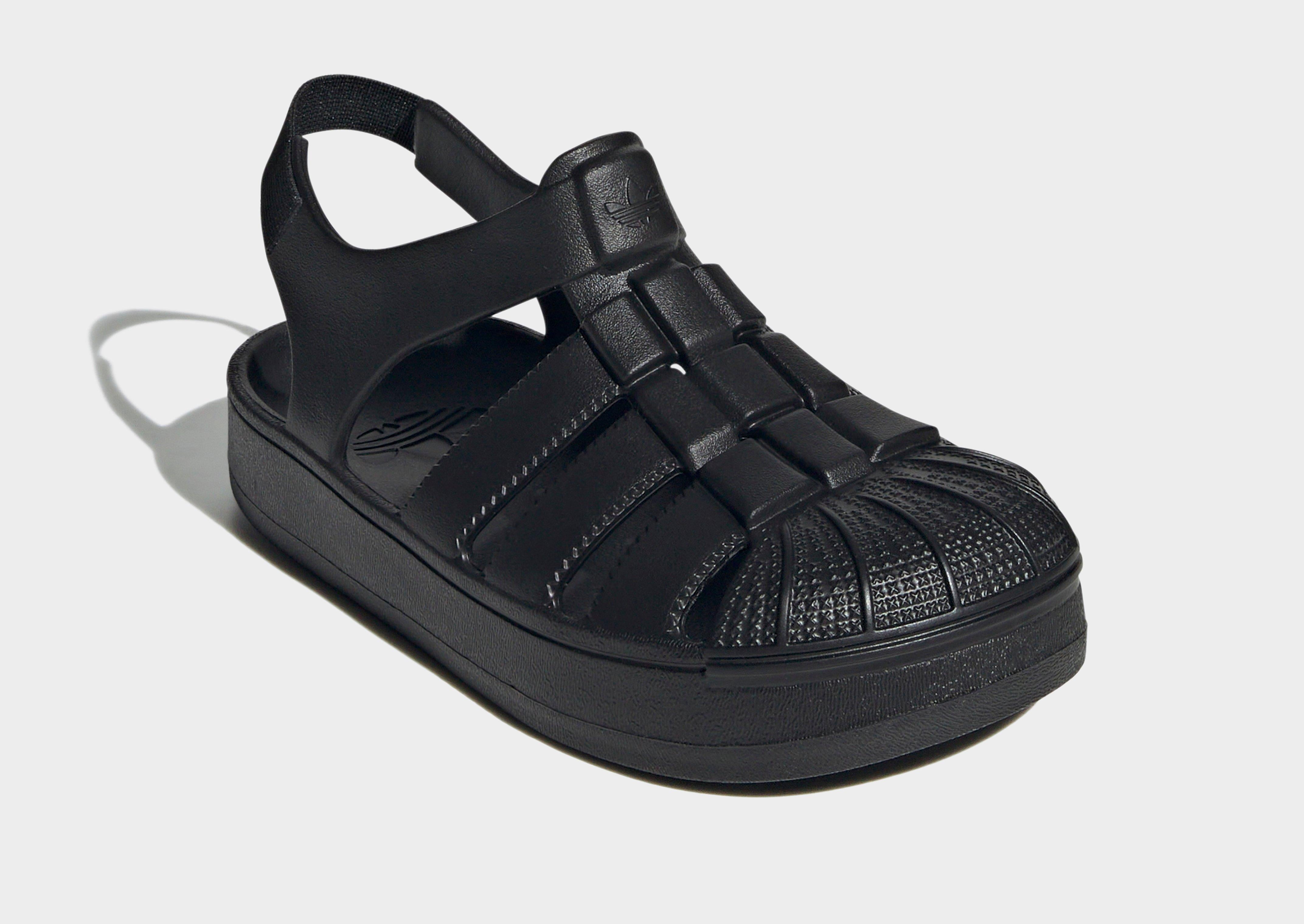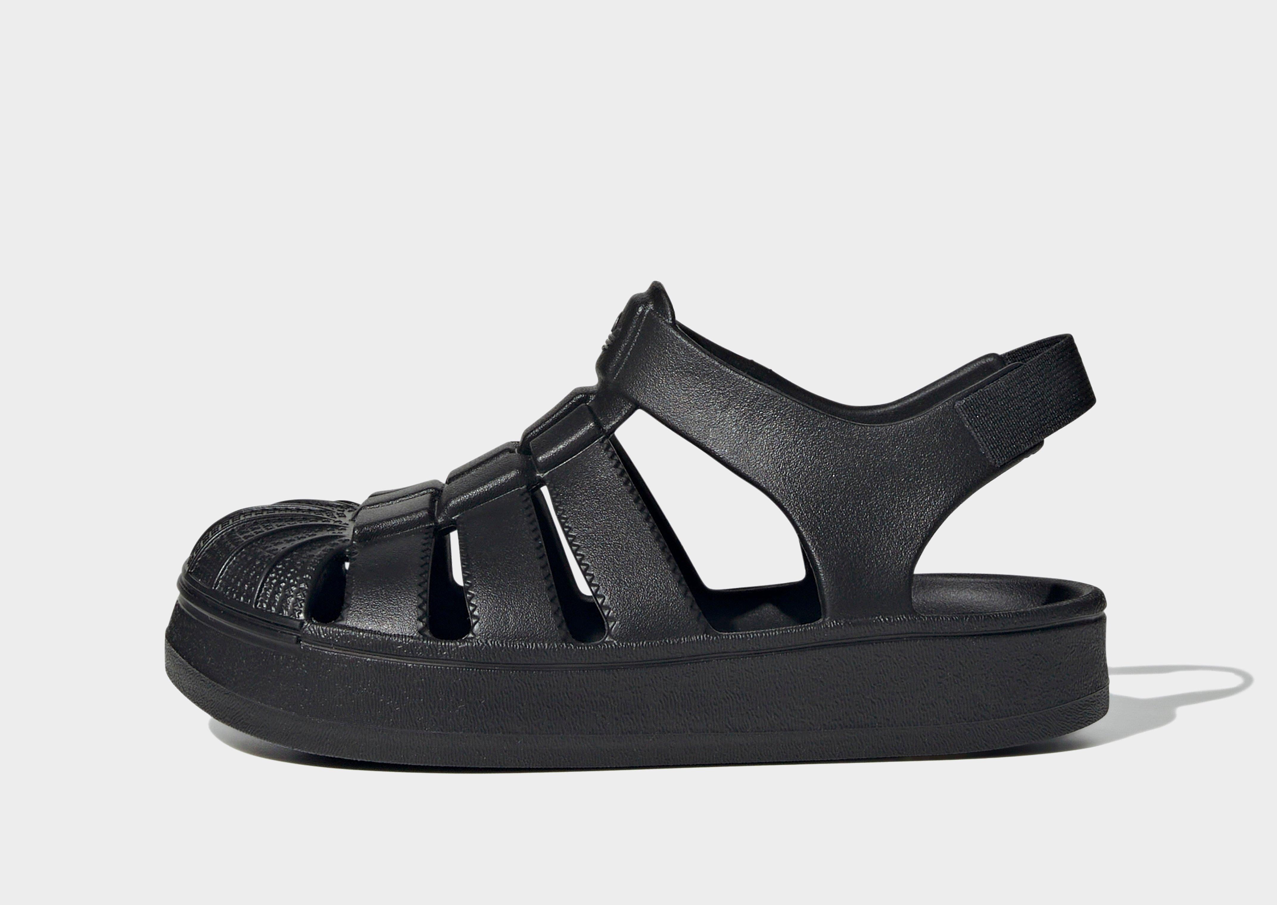Bring the legendary adidas Originals Superstar Sandals look into summer with these fun and functional kids' sandals. Designed with the classic shell toe for extra protection and a nod to the iconic sneaker, they blend heritage style with warm-weather practicality. A snug elastic strap ensures a secure fit for little feet on the move, while the soft, moulded footbed provides all-day comfort—perfect for park playdates, beach adventures, or just running around in the sun. | JS2844