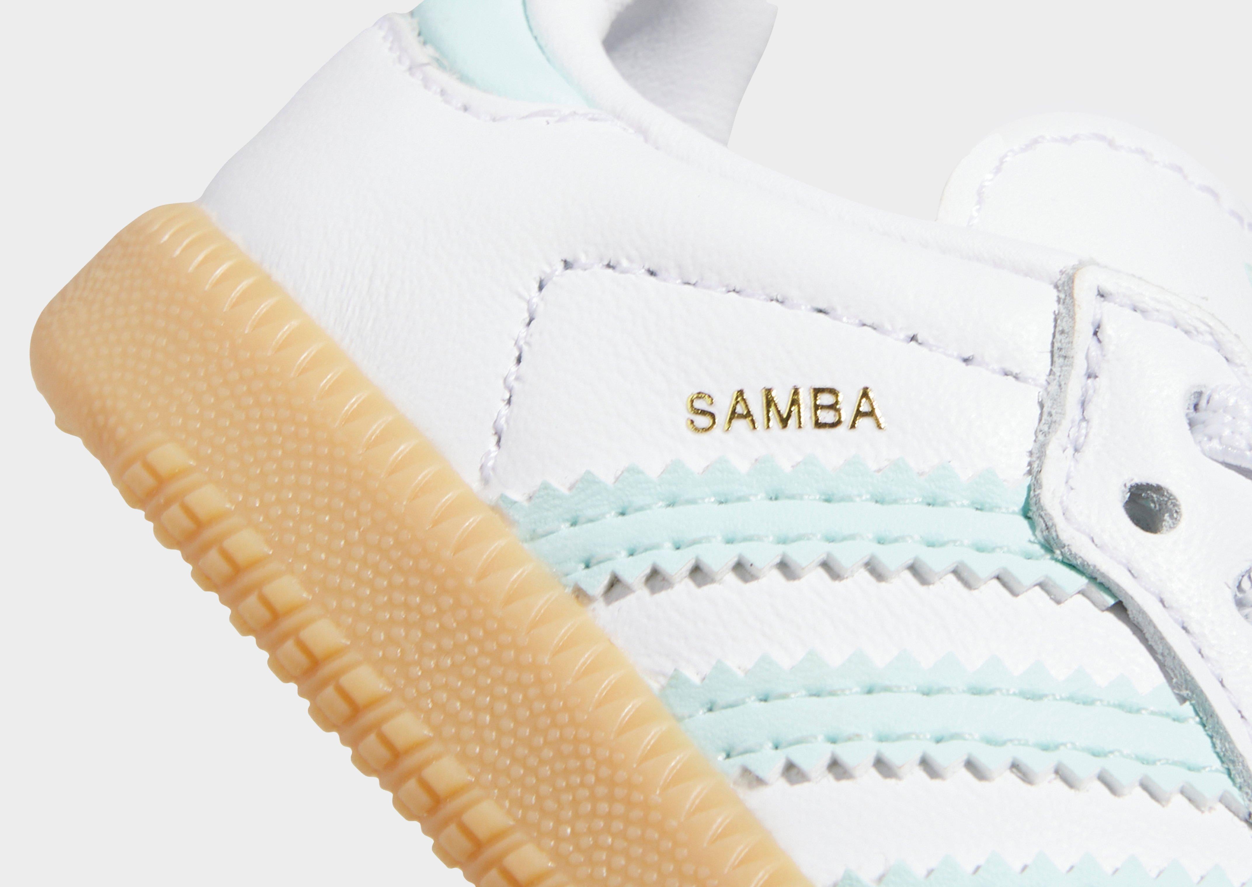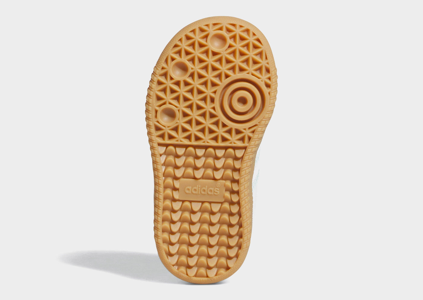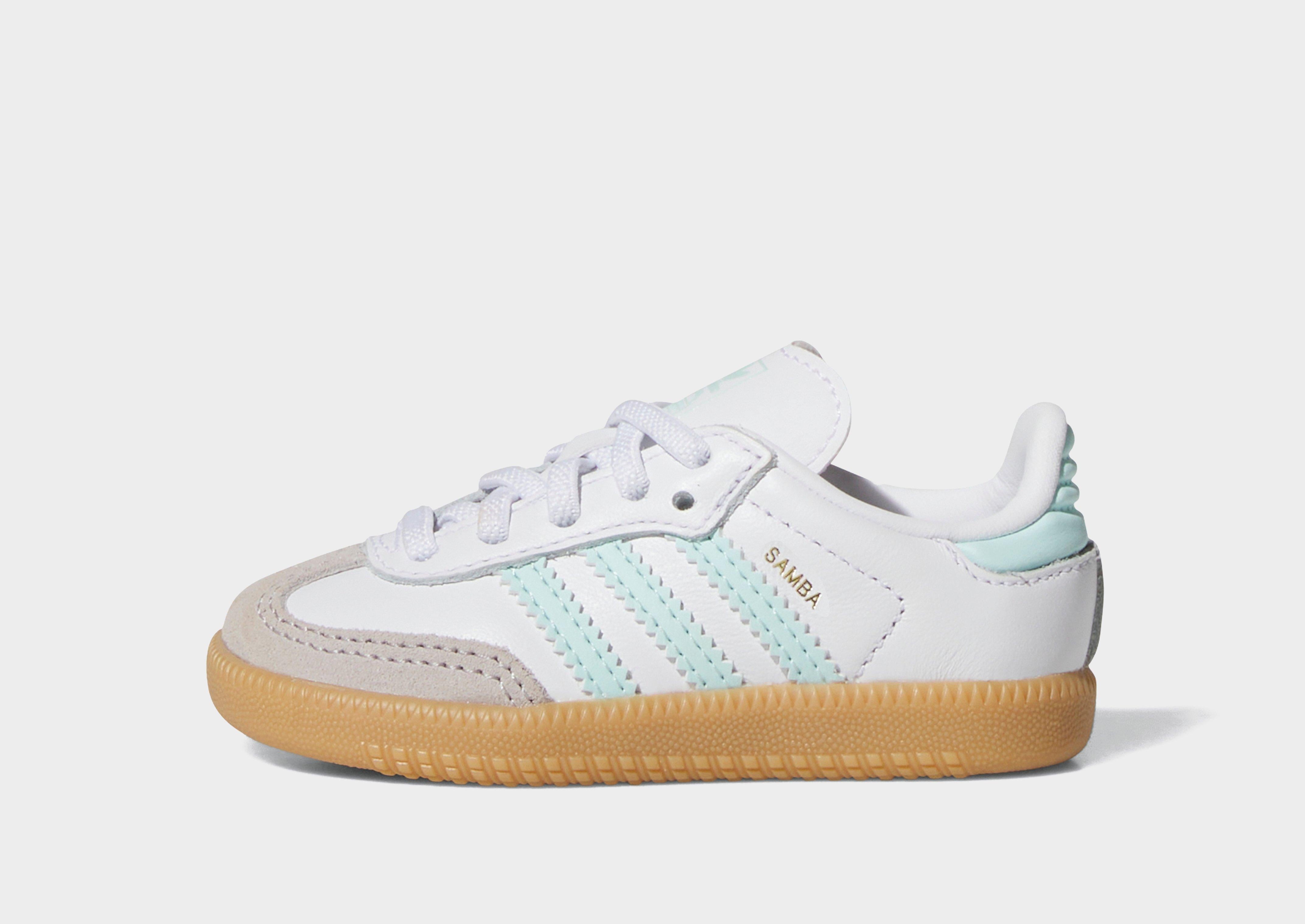 Step into the past with a future style icon. Inspired by the original 1960s design worn by pro soccer players, these infant-sized adidas Sambas bring timeless street style to the next generation. Downsized for comfort and play, they feature a soft sockliner that keeps little feet happy all day long. A smooth leather upper, durable gum rubber sole, and signature 3-Stripes stay true to the heritage—because great style never goes out of fashion. | JP5489