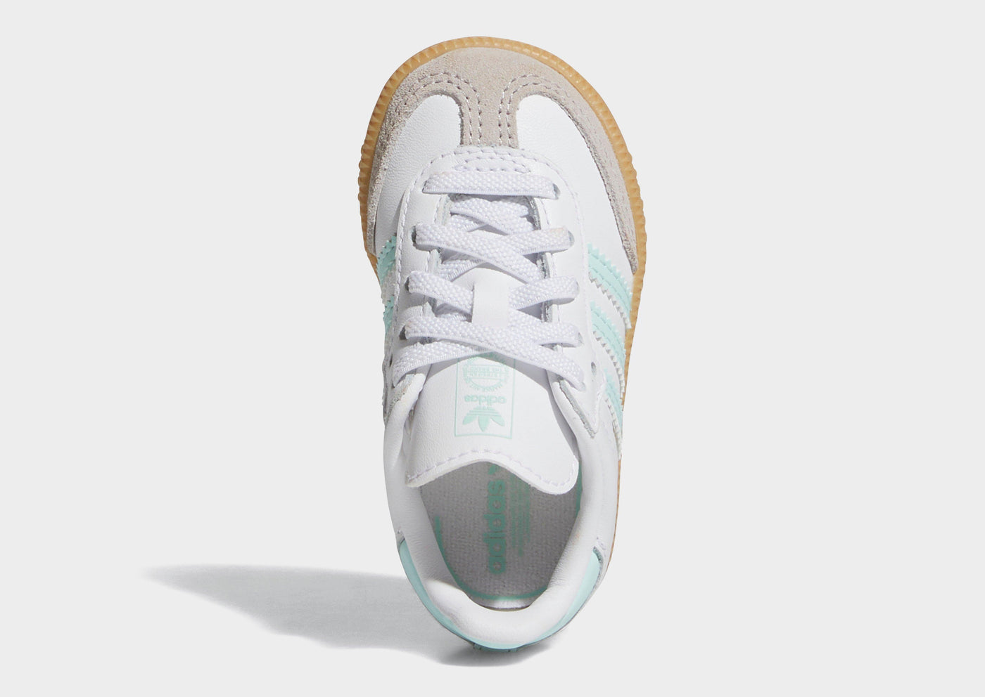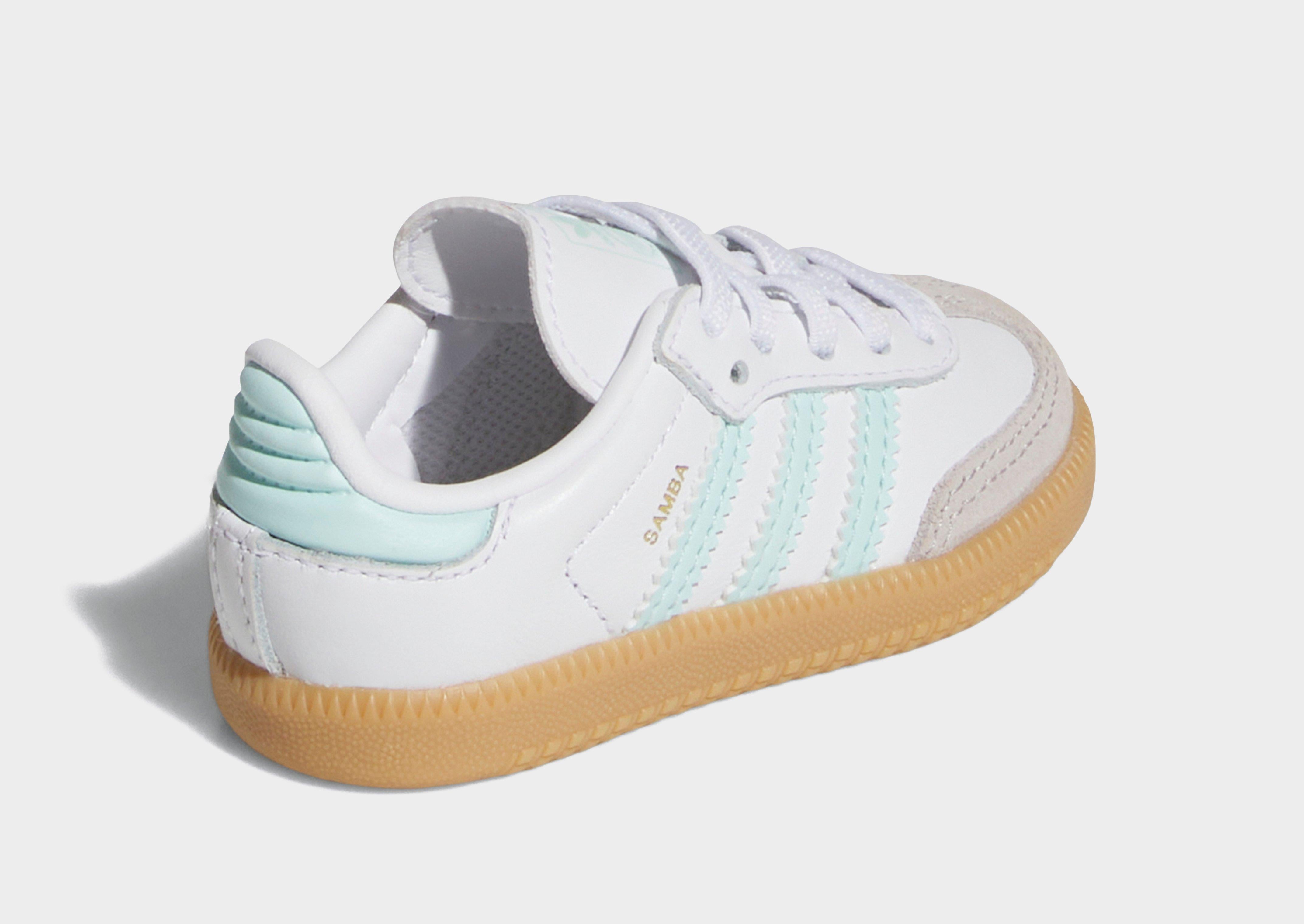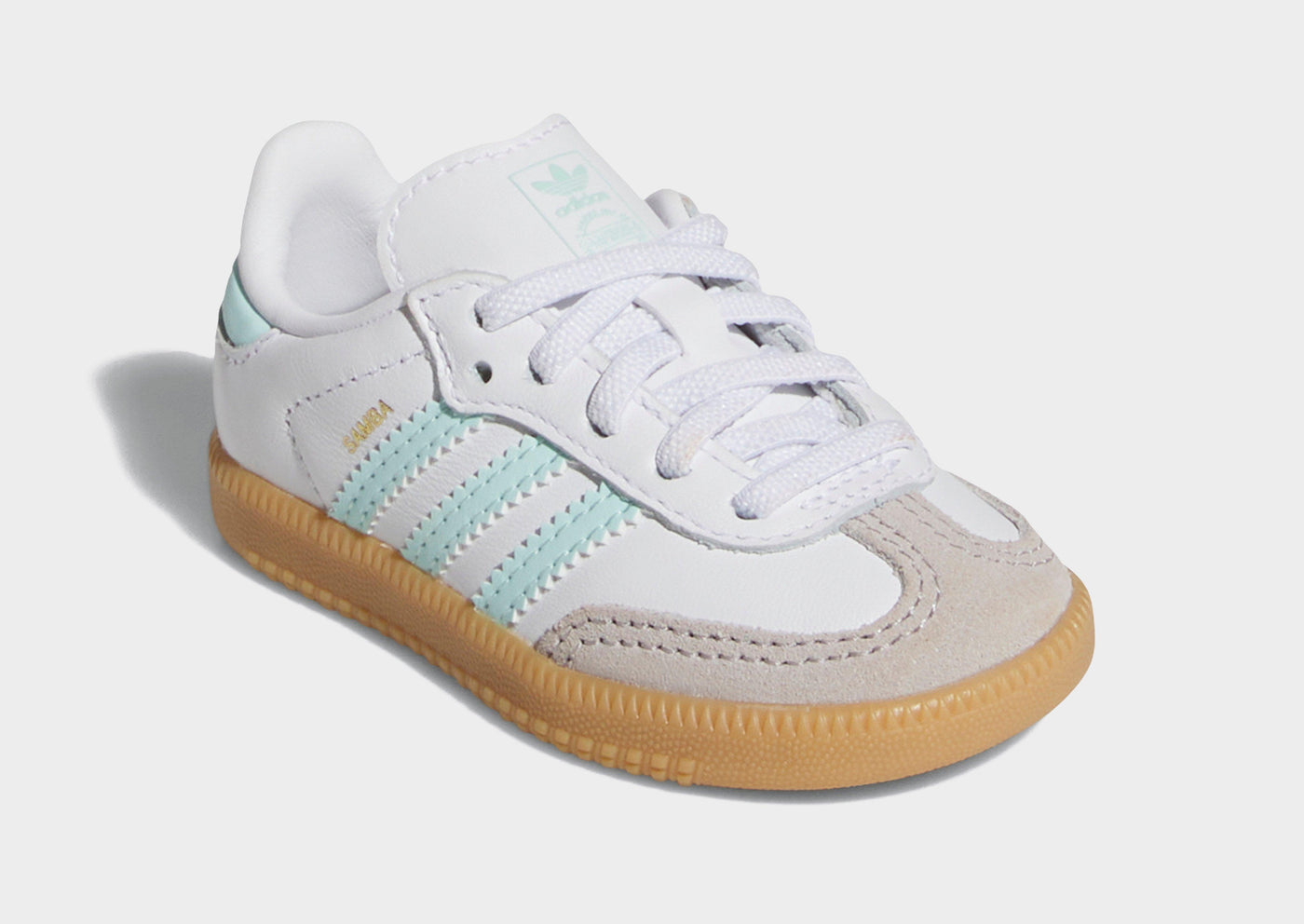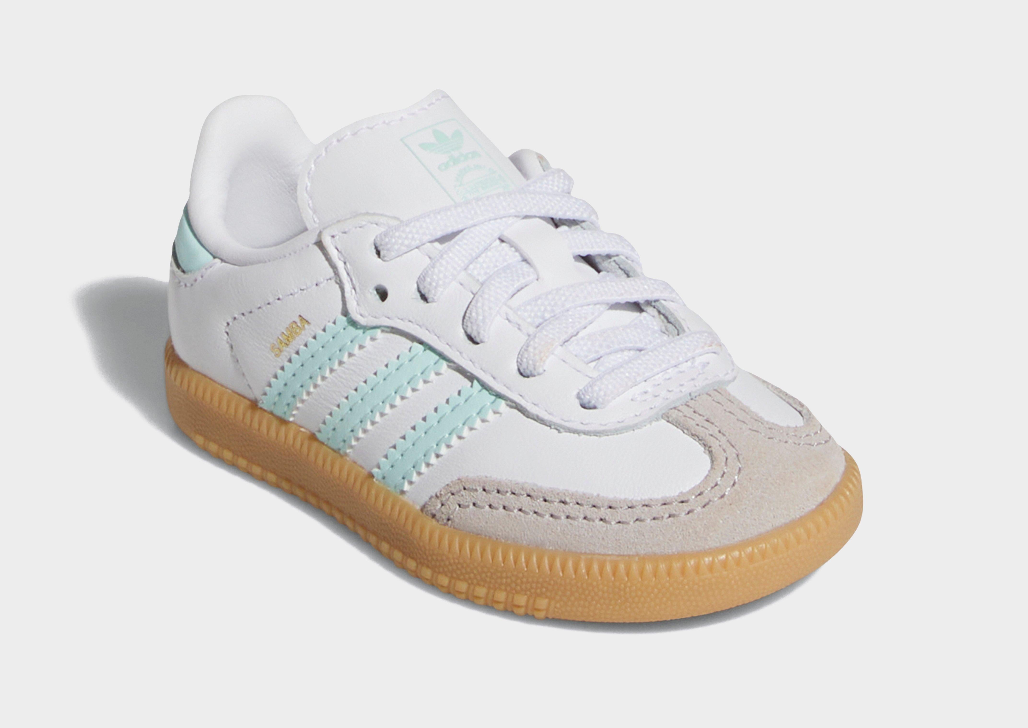 Step into the past with a future style icon. Inspired by the original 1960s design worn by pro soccer players, these infant-sized adidas Sambas bring timeless street style to the next generation. Downsized for comfort and play, they feature a soft sockliner that keeps little feet happy all day long. A smooth leather upper, durable gum rubber sole, and signature 3-Stripes stay true to the heritage—because great style never goes out of fashion. | JP5489