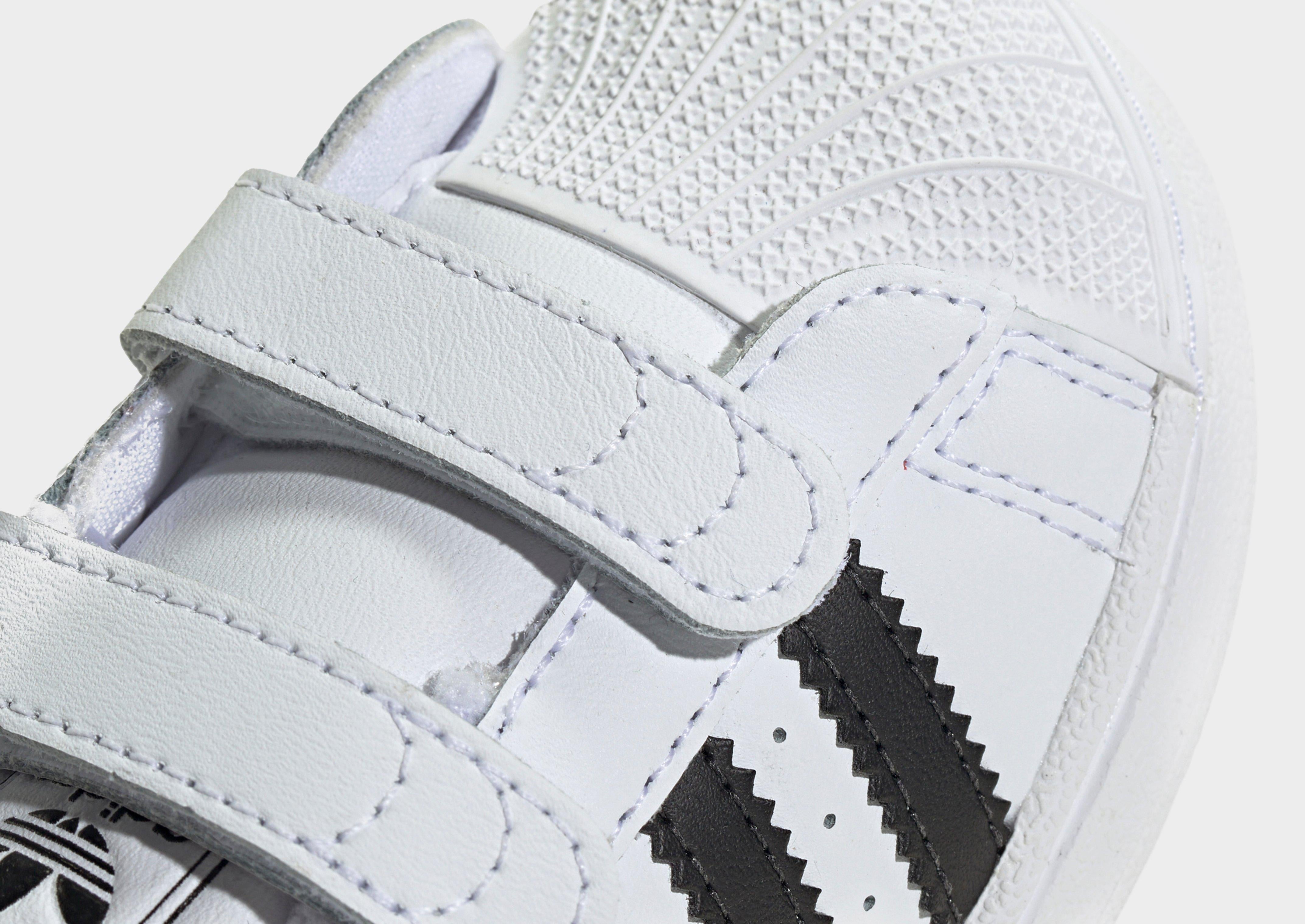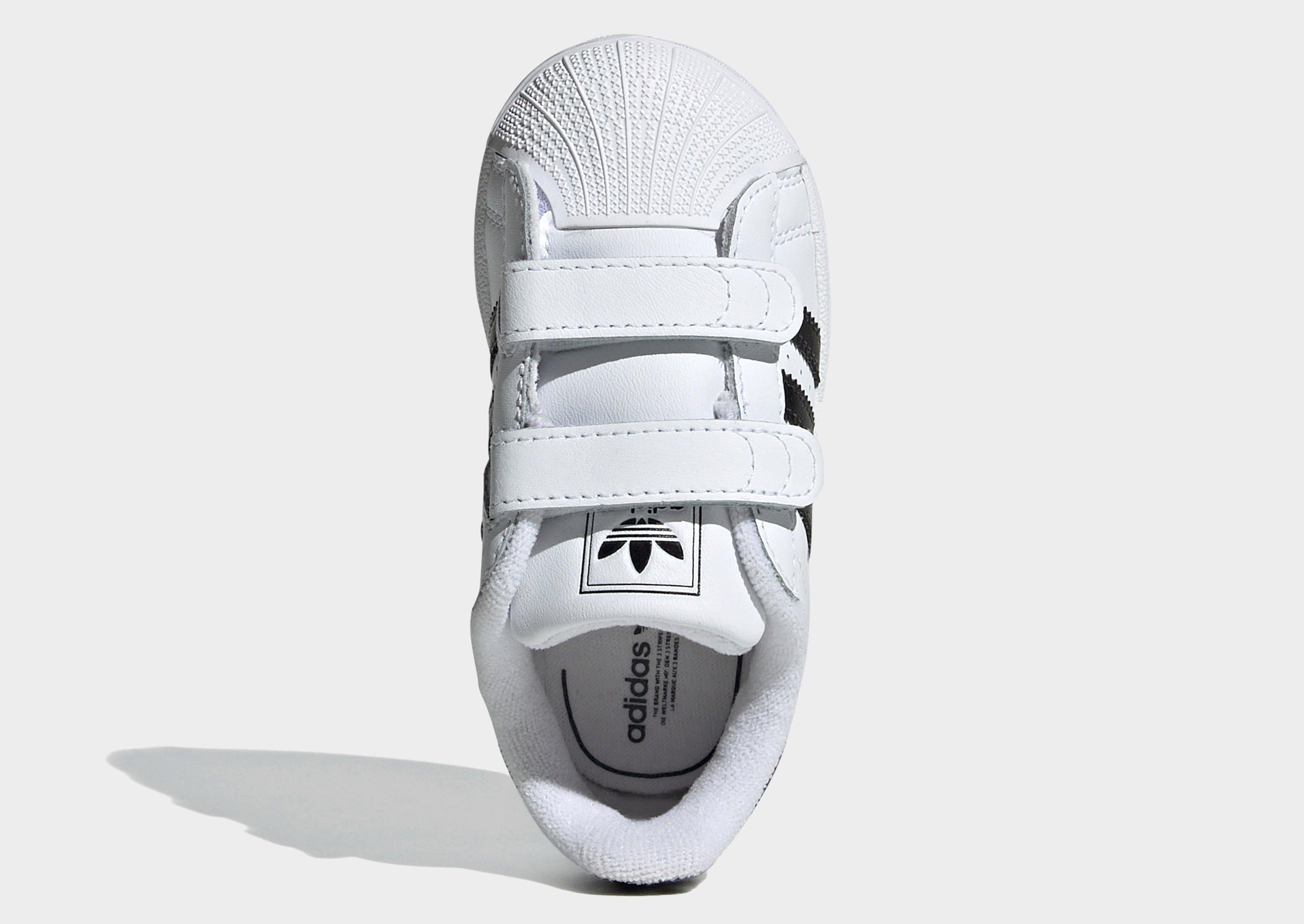 For the littlest trendsetters, nothing beats the timeless adidas Superstar II Comfort Closure Shoes. Designed for tiny feet and big adventures, these infant shoes bring the iconic shell toe look in a comfy, easy-on package. Hook-and-loop straps make dressing quick and fuss-free, while a smooth leather upper, padded tongue, and moulded sockliner keep little ones supported as they take their first steps. Whether they’re crawling, wobbling, or toddling, these Superstars are built to keep up—and stand out. | JI3990