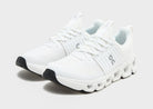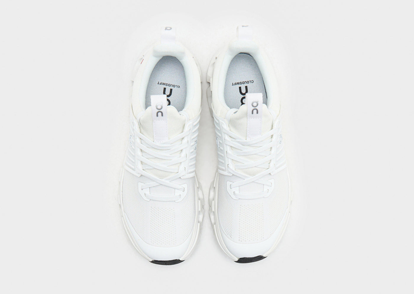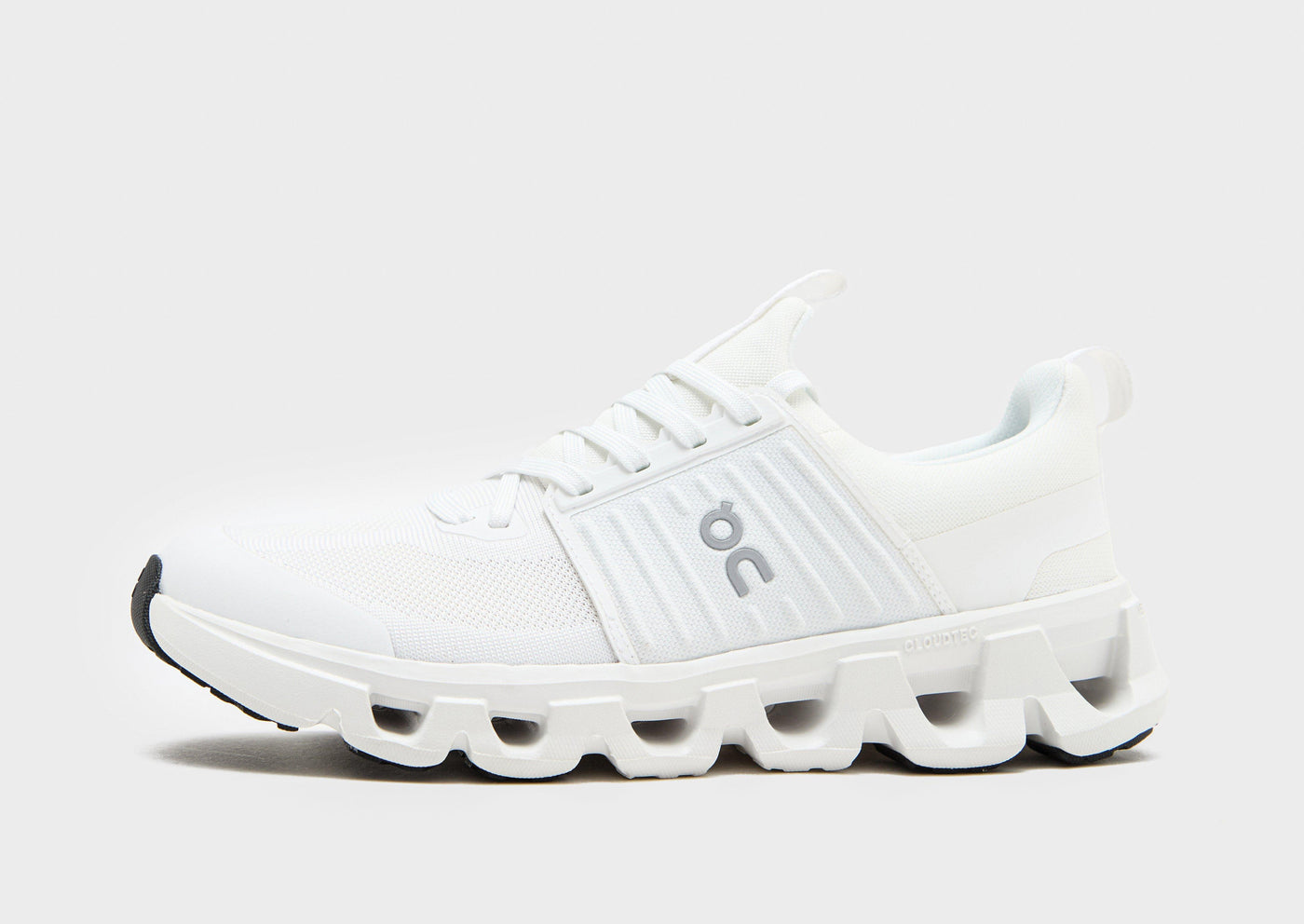 Inspired by the Cloudswift 4, these juniors' Cloudswift trainers from On Running bring premium performance to every stride. In an All White colourway, they have a lightweight, breathable upper with a supportive quarter panel. They slip on-and-off with ease thanks to the bootie lining and pull tabs at the tongue and heel. Underoot, a CloudTec midsole cushions for a super-smooth ride, while no Speedboard makes them flexible. With a 6mm heel-to-toe drop, these runners are finished off with rubber inserts to the heel and forefoot.