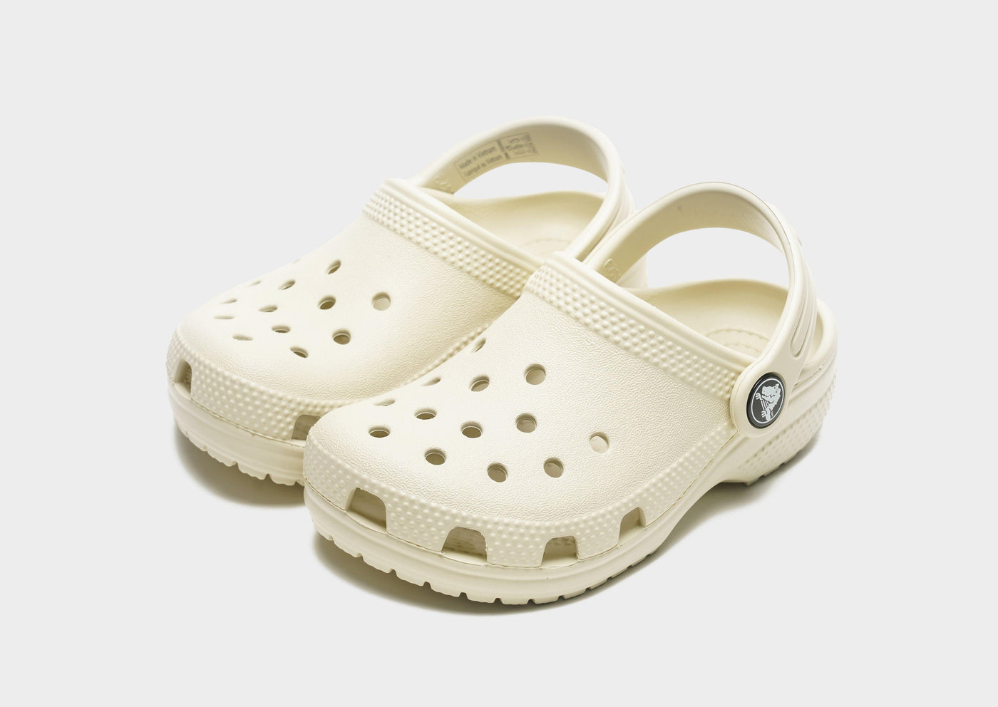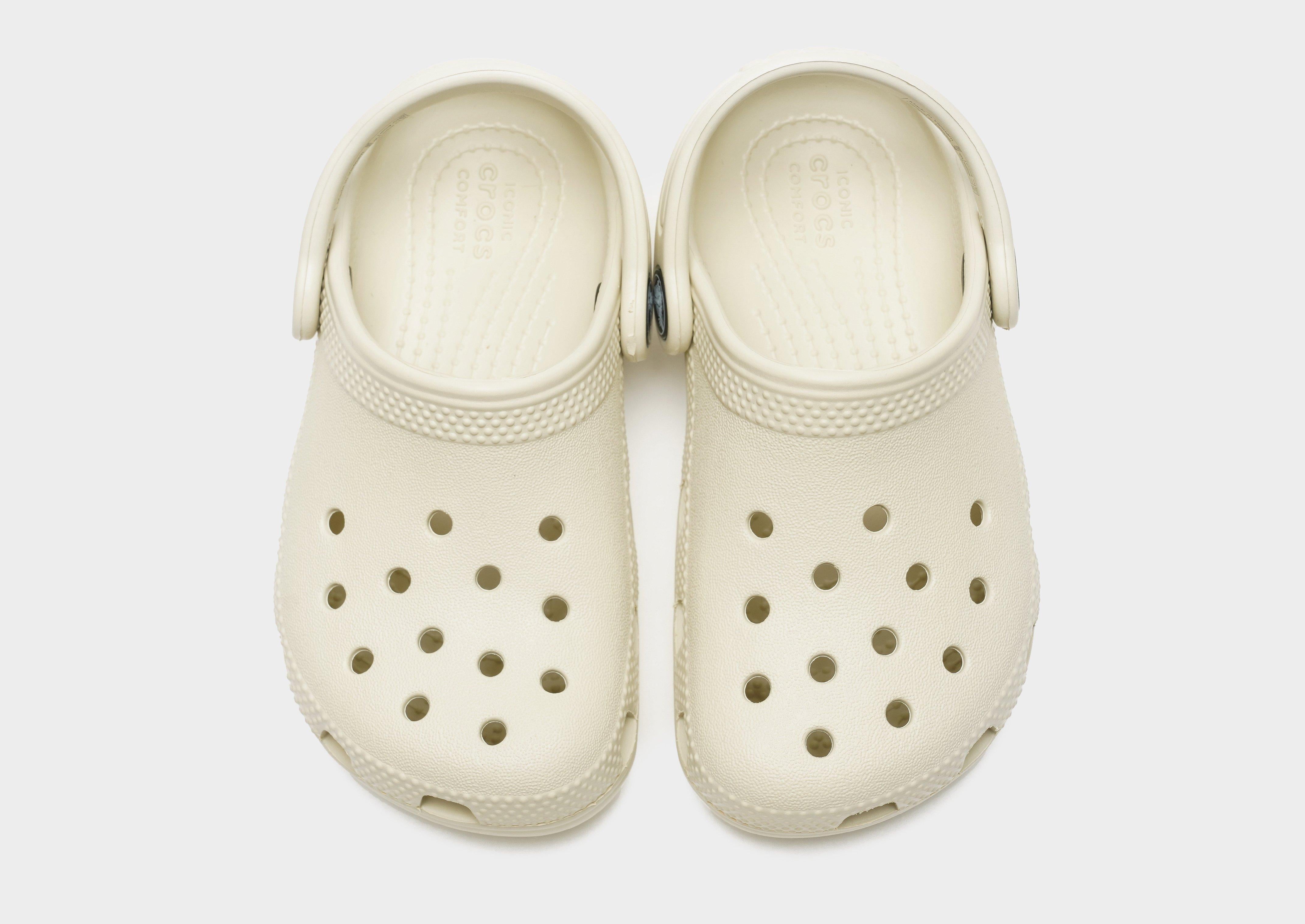 Level up your little one's collection with these infants' Classic Clogs from Crocs. Coming in a Bone colourway, these downsized sandals are made with Crocs' smooth, durable Croslite material for lasting wear. They're super lightweight and waterproof, and sit on a plush cushioned footbed for comfy wear. They have a pivoted heel strap for a secure fit, and a tough rubber outsole for grippy traction. With breathable ventilation ports at the forefoot, they're finished with signature Crocs branding throughout. Please note: Crocs fit wide. If you have narrow feet, we recommend that you size down. Crocs come with the US size embossed to the sole. | Please note: Crocs fit wide. If you have narrow feet, we recommend that you size down. Crocs comes with the US size embossed to the sole.