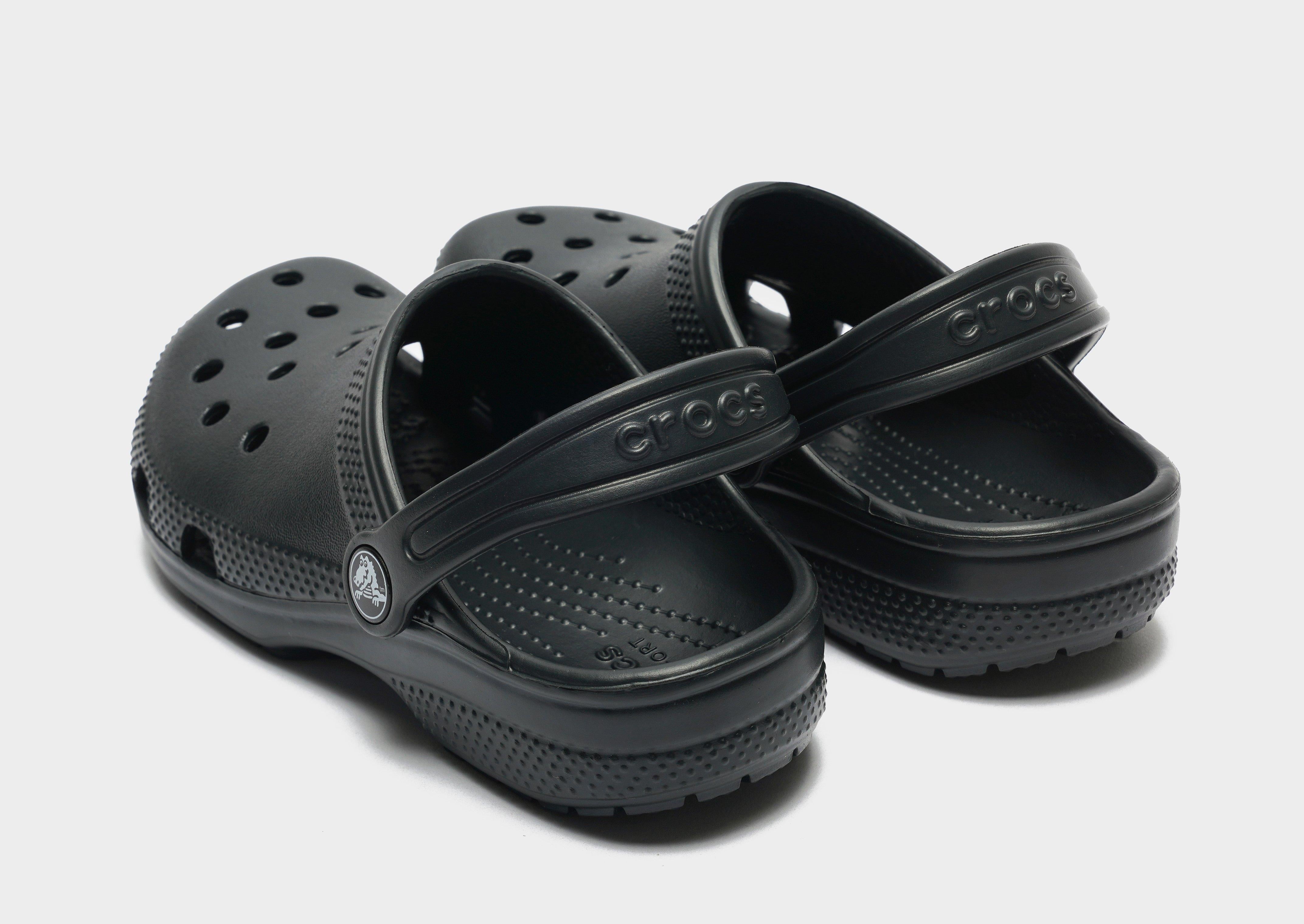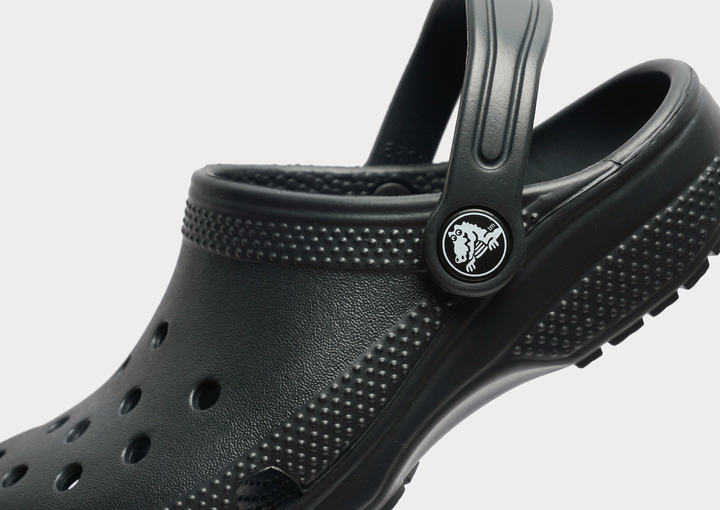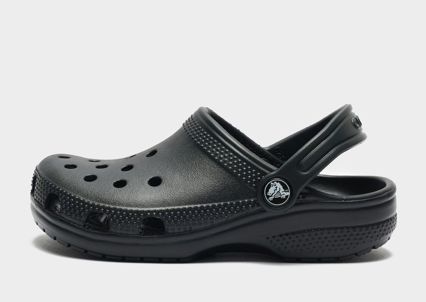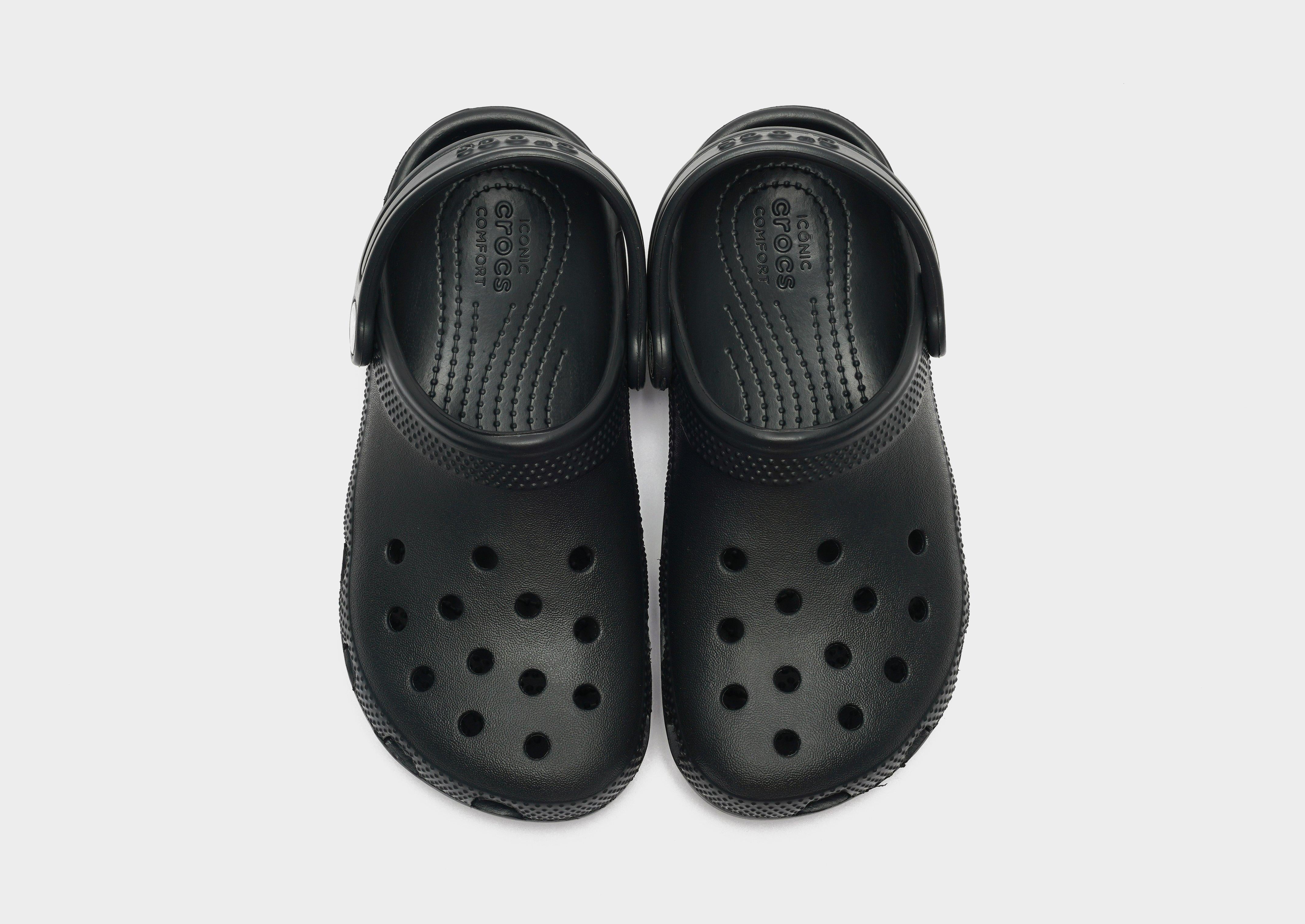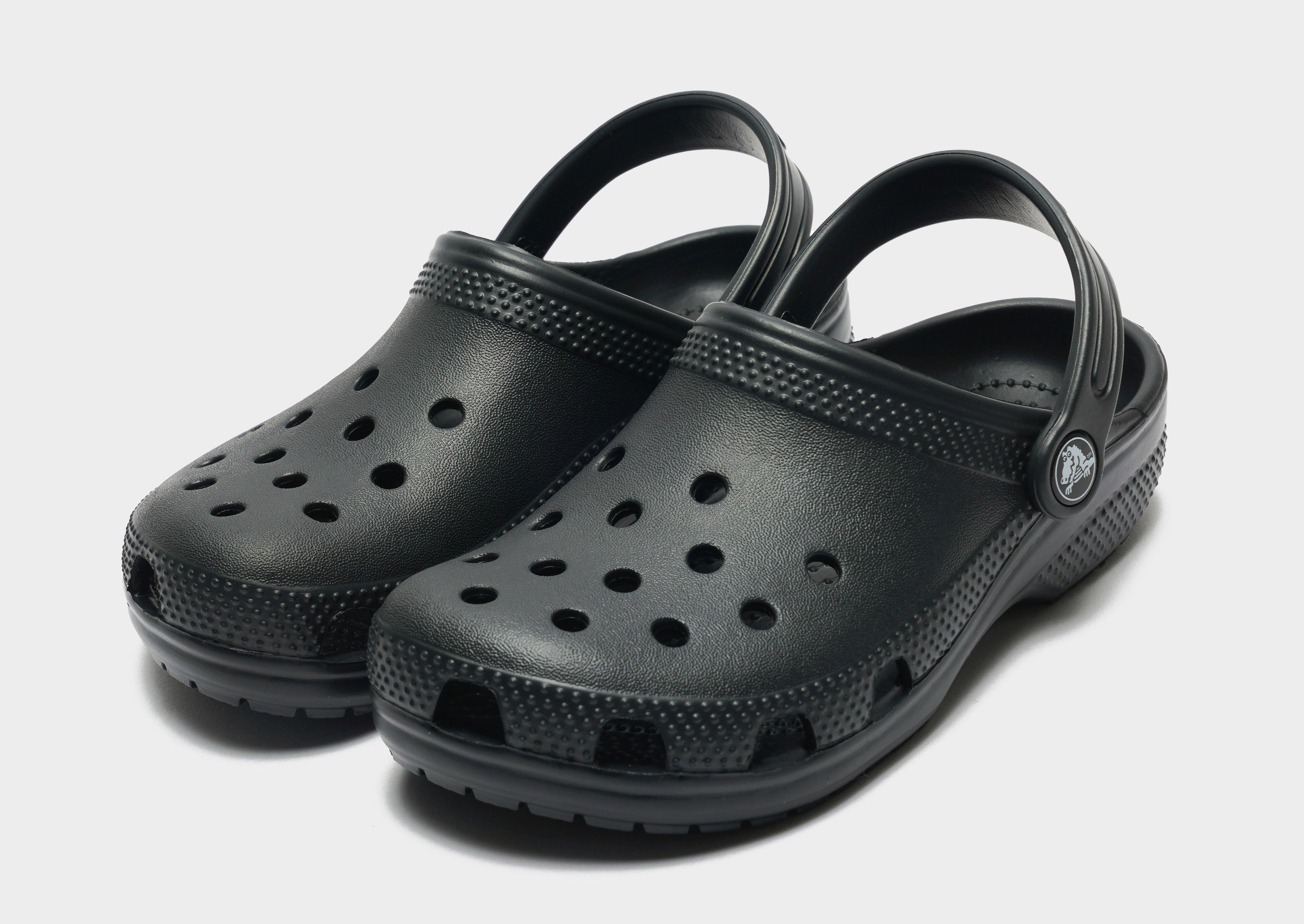 Upgrade your off-duty rotation with these juniors' Classic Clogs from Crocs. Coming in a Black colourway, these sandals are made with Crocs' signature Croslite for durable, waterproof wear. They feature breathable perforations at the forefoot, and sit on a super-soft, plush foam footbed for next-level comfort. With an adjustable heel strap for a secure fit, they have a tough rubber outsole to keep ya gripped. Finished up with classic Crocs branding.Please note: Crocs fit wide. If you have narrow feet, we recommend that you size down. Crocs come with the US size embossed to the sole.