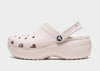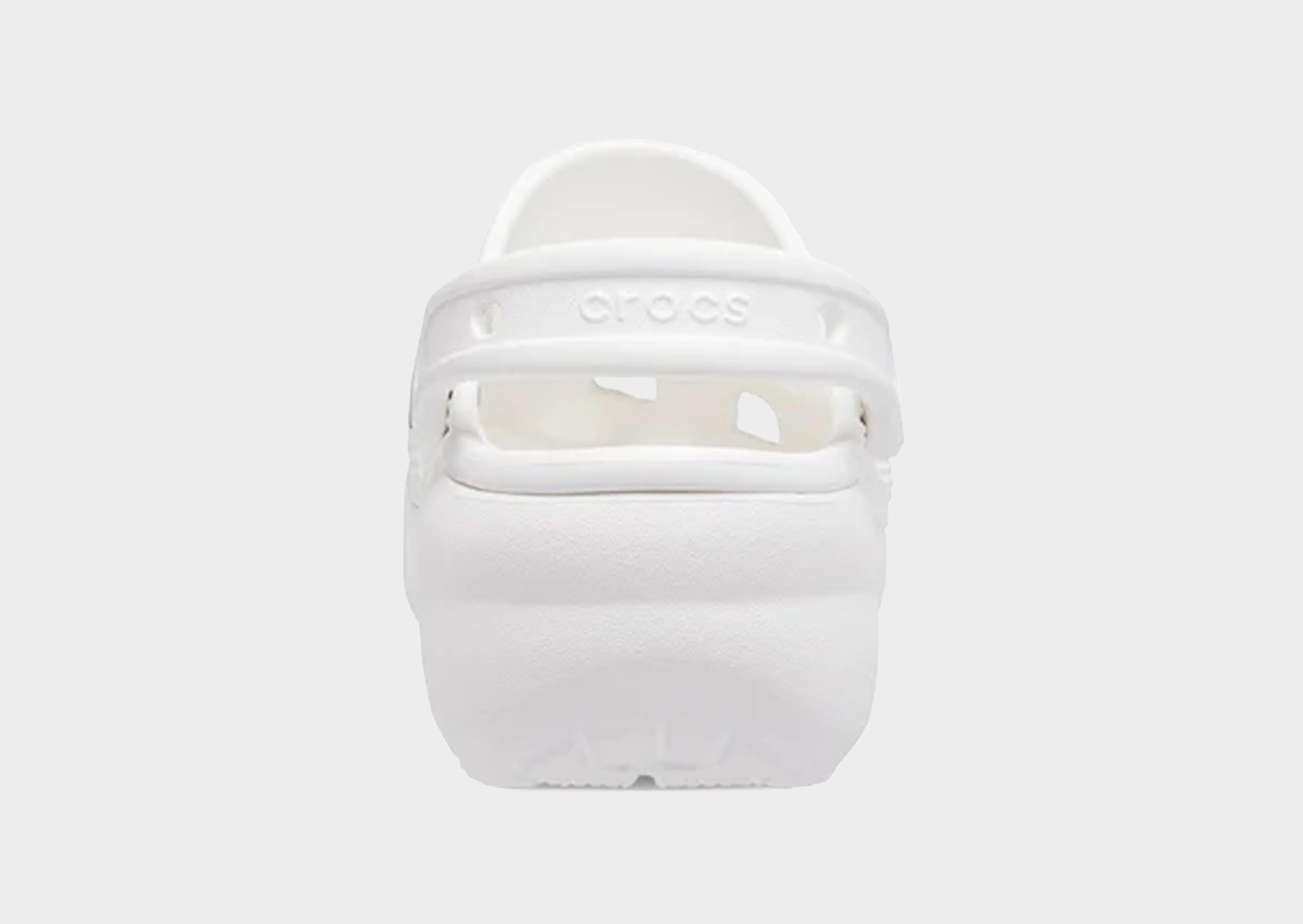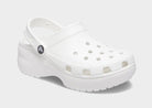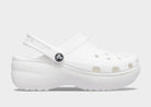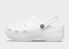 Step up your summer style with the Crocs Classic Clog Platform Sandals , designed for all-day comfort and warm-weather vibes. In a crisp white colourway, these elevated clogs combine iconic Crocs comfort with a bold, platform twist. Made from durable, water-friendly materials, the synthetic upper features breathable ventilation ports to keep feet cool. A pivoting heel strap offers a secure, adjustable fit, while the signature Croslite™ foam midsole delivers lightweight cushioning that feels plush with every step. Finished with a grippy outsole and classic Crocs branding, they're your go-to for effortless summer styling—from beach days to weekend errands. | Please note: Crocs fit wide. If you have narrow feet, we recommend that you size down. Crocs comes with the US size embossed to the sole.