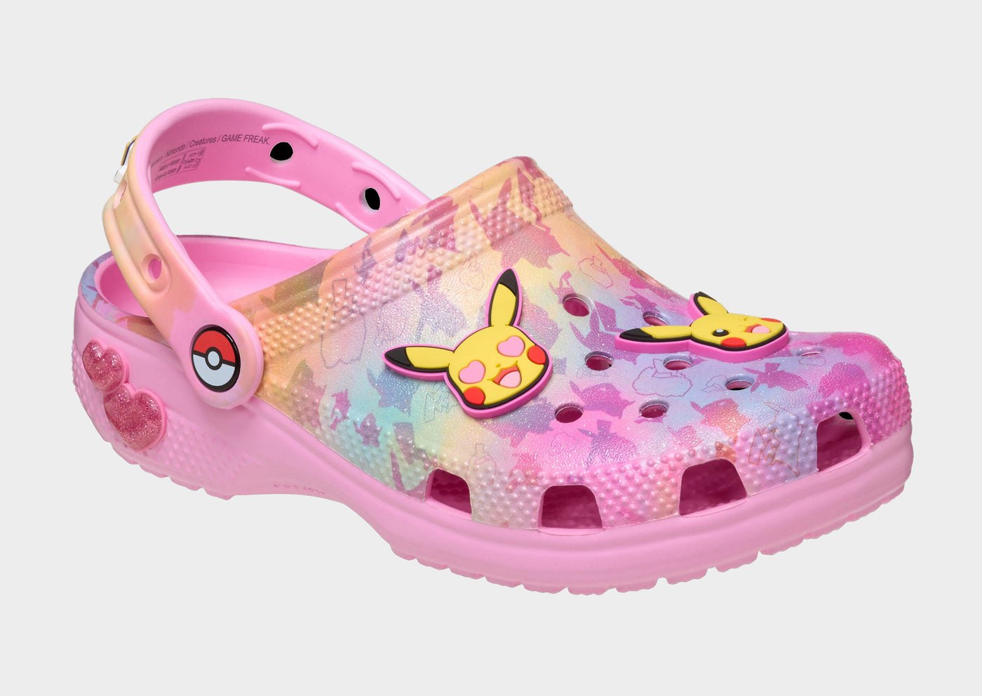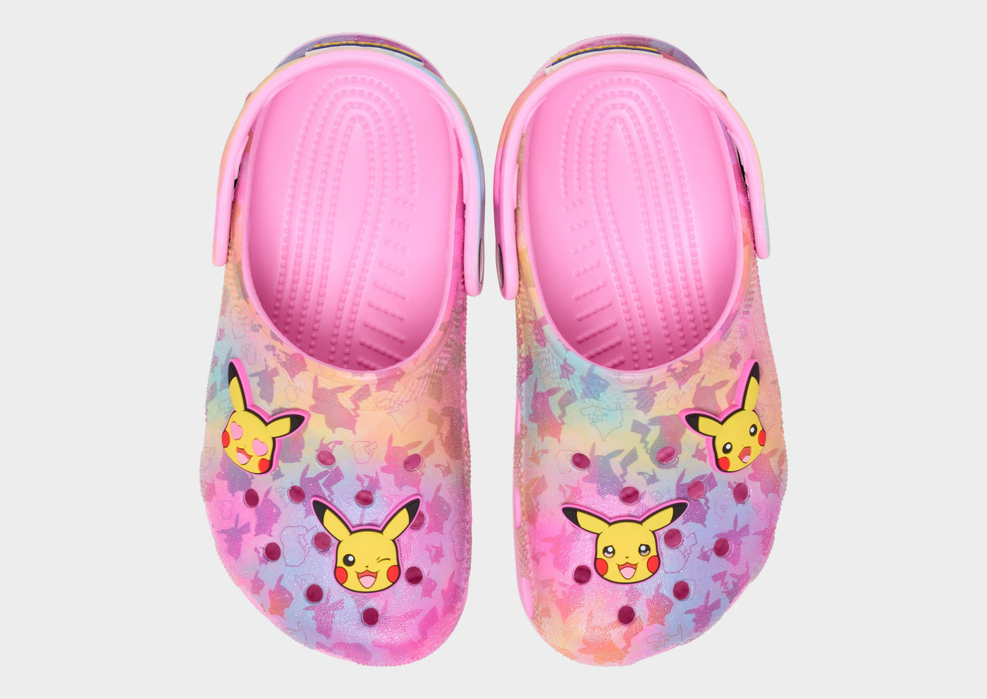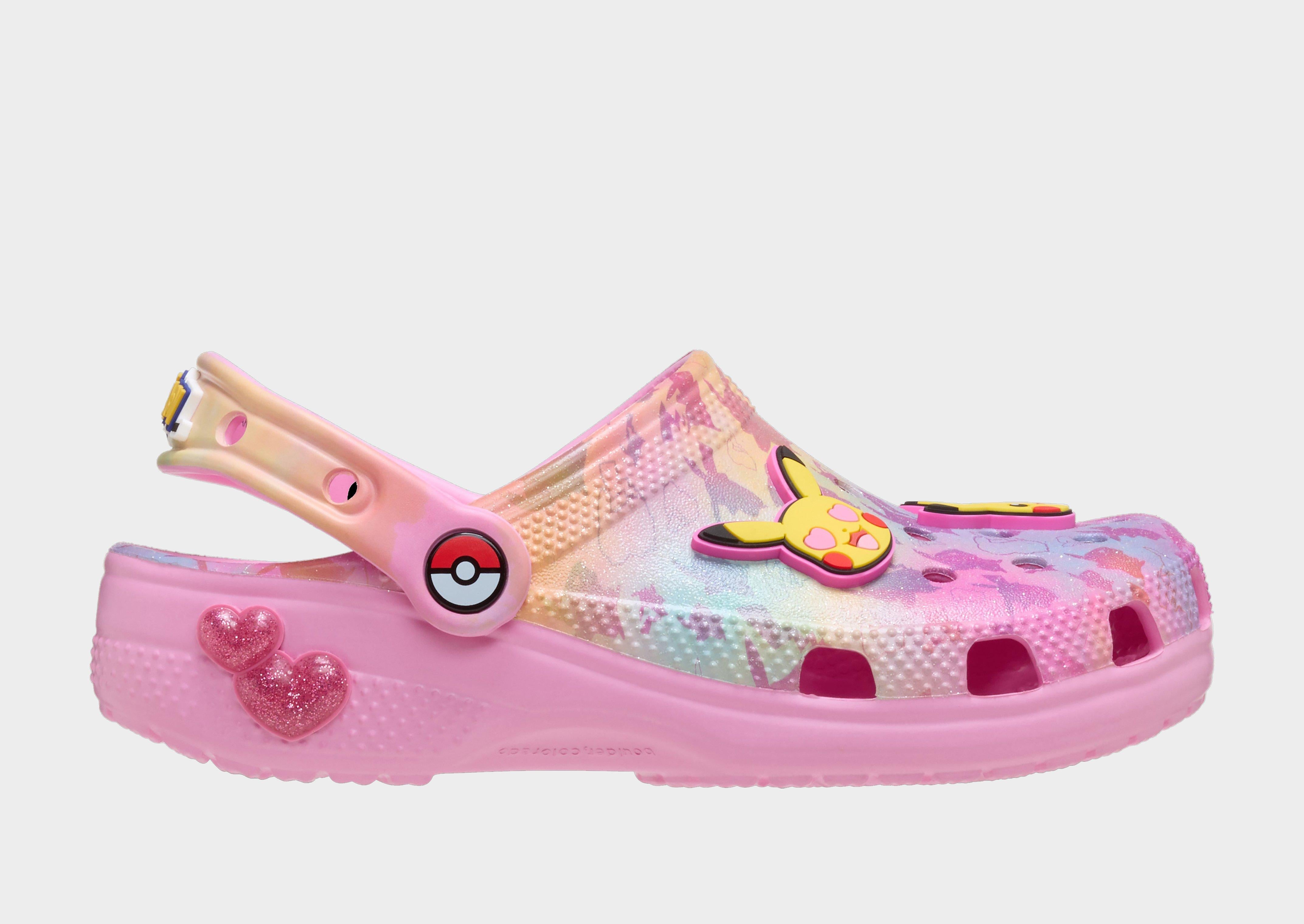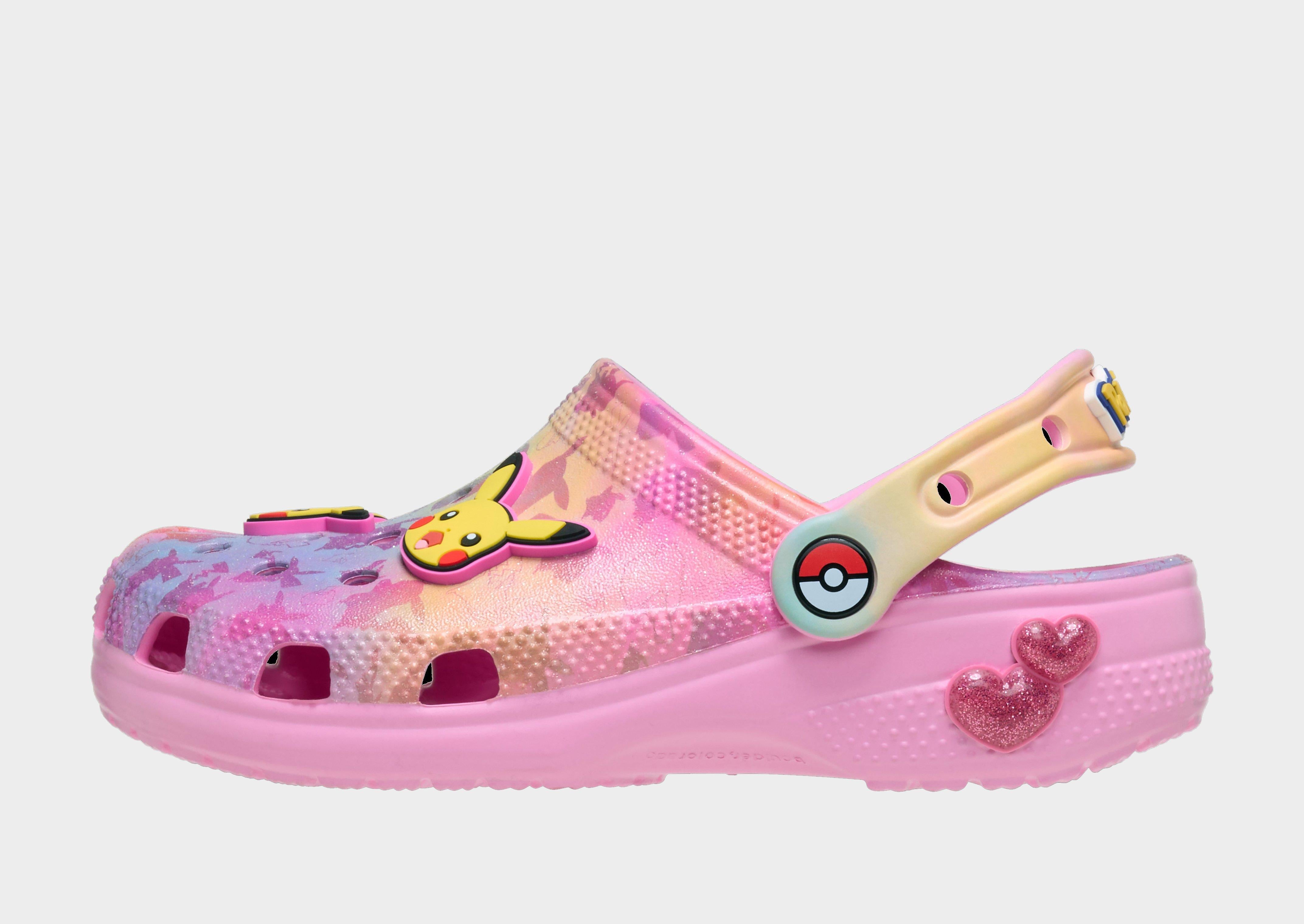 The perfect sandals for little adventurers, these Junior Classic Clogs come in a bright pink multi-colorway featuring adorable Pokémon designs on the sole. They offer Crocs' signature comfort, are lightweight, and easy to clean, making them an ideal and fun choice for outdoor play or casual wear for little Pokémon fans.