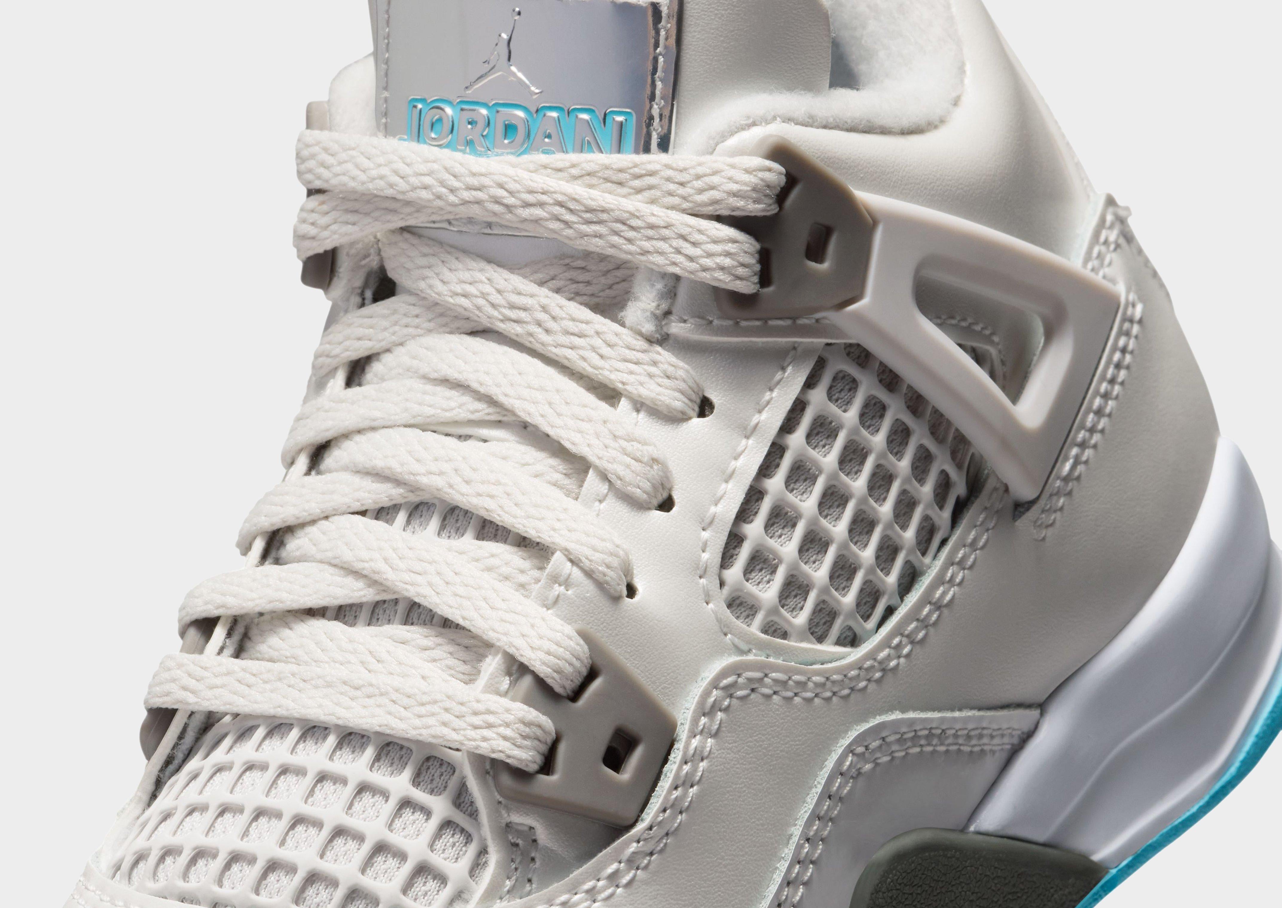 Give little sneaker fans a fresh take on a classic with the Jordan 4 Retro UNI BP. Landing in the Photon Dust/Blue-Powder White-Black colourway, this kids' pair mixes soft neutrals with hits of blue for a standout look. Built with durable materials and mesh paneling for breathability, it keeps the iconic AJ4 details alive with molded lace wings and a cushioned midsole for everyday comfort. Finished with signature Jumpman branding, this heritage-inspired style delivers all-day support and street-ready energy for growing feet.