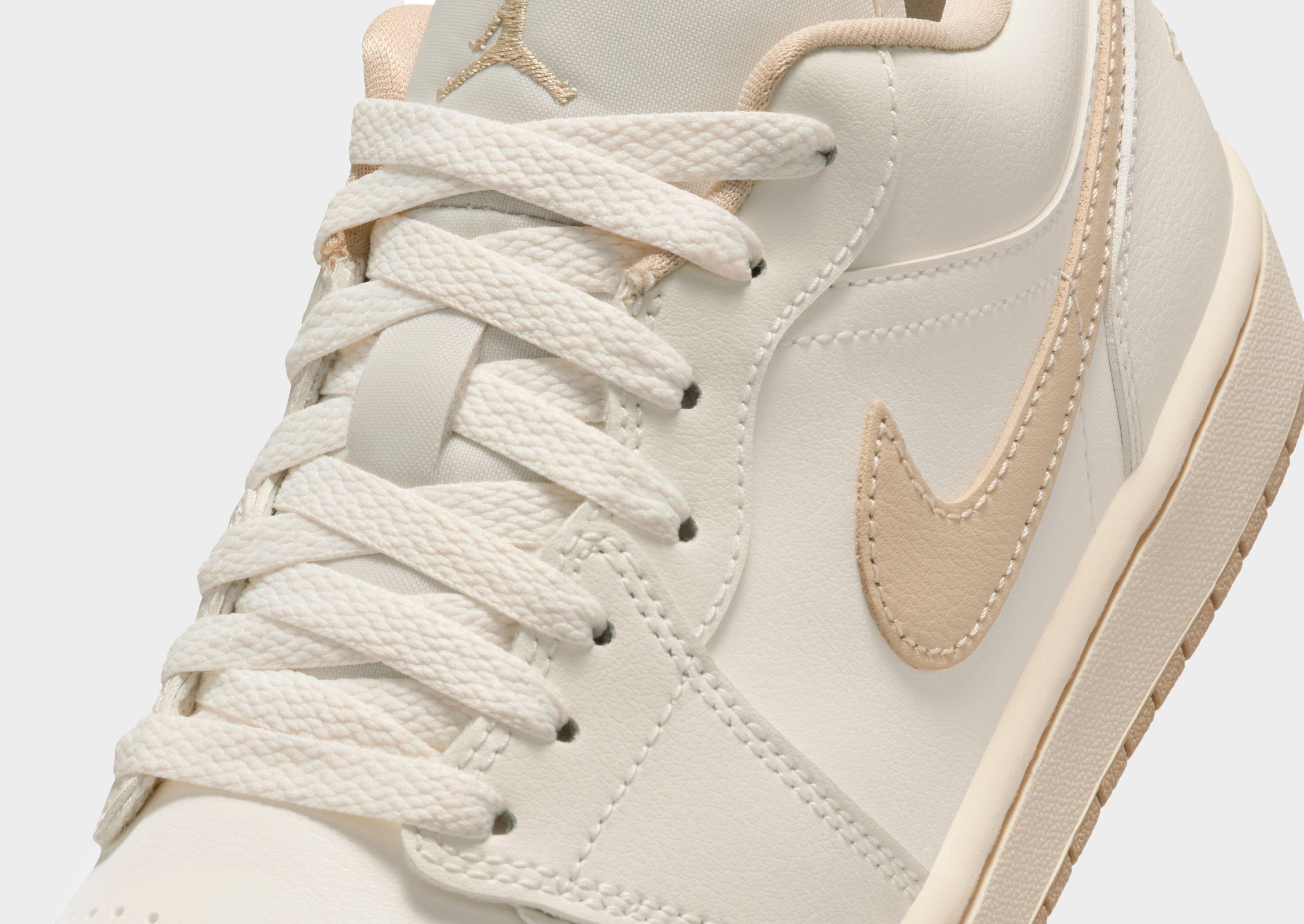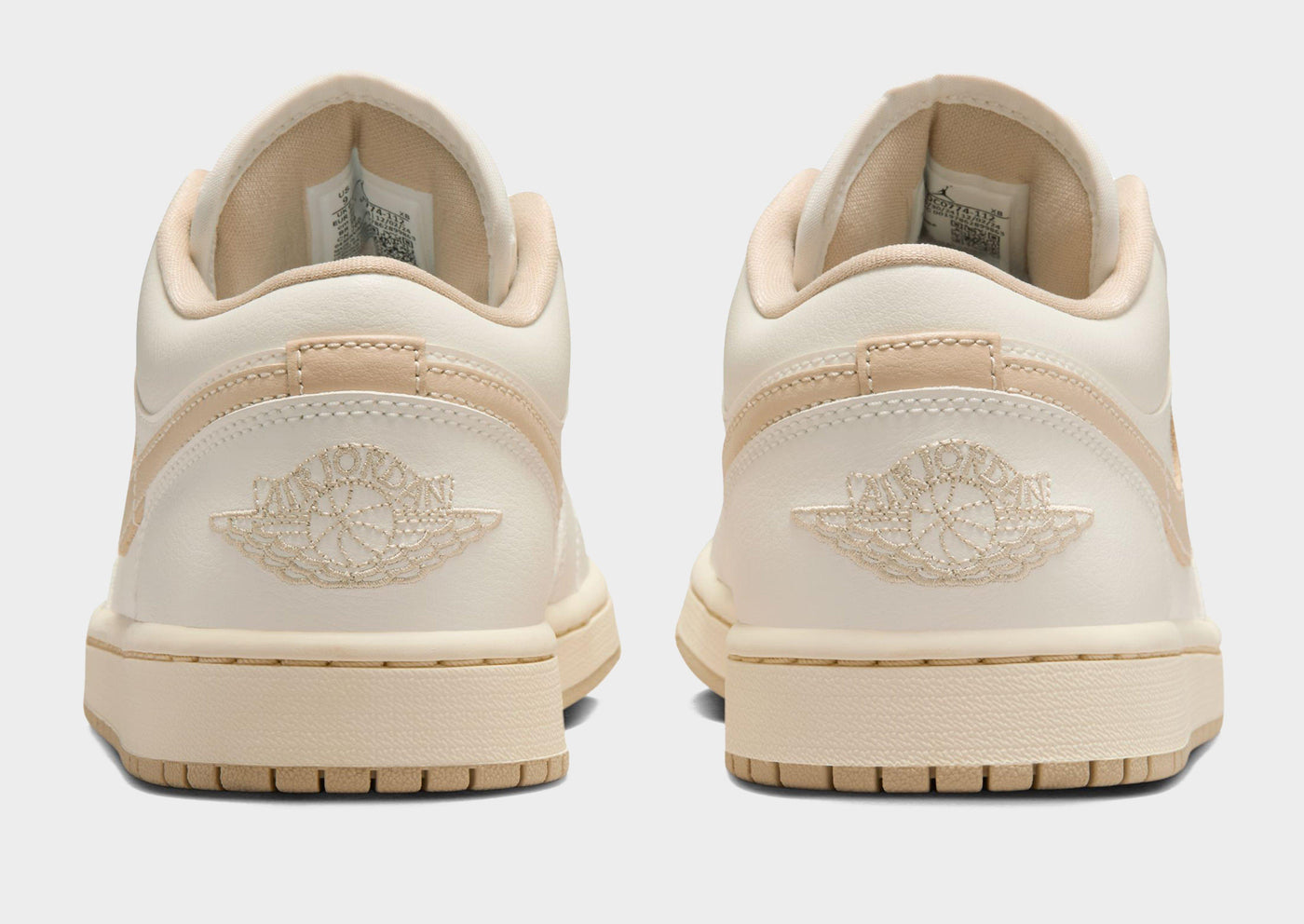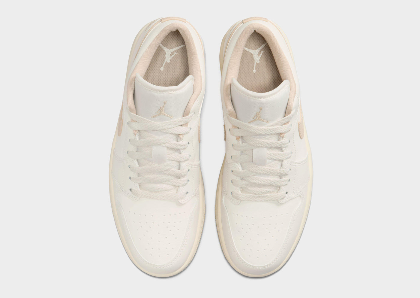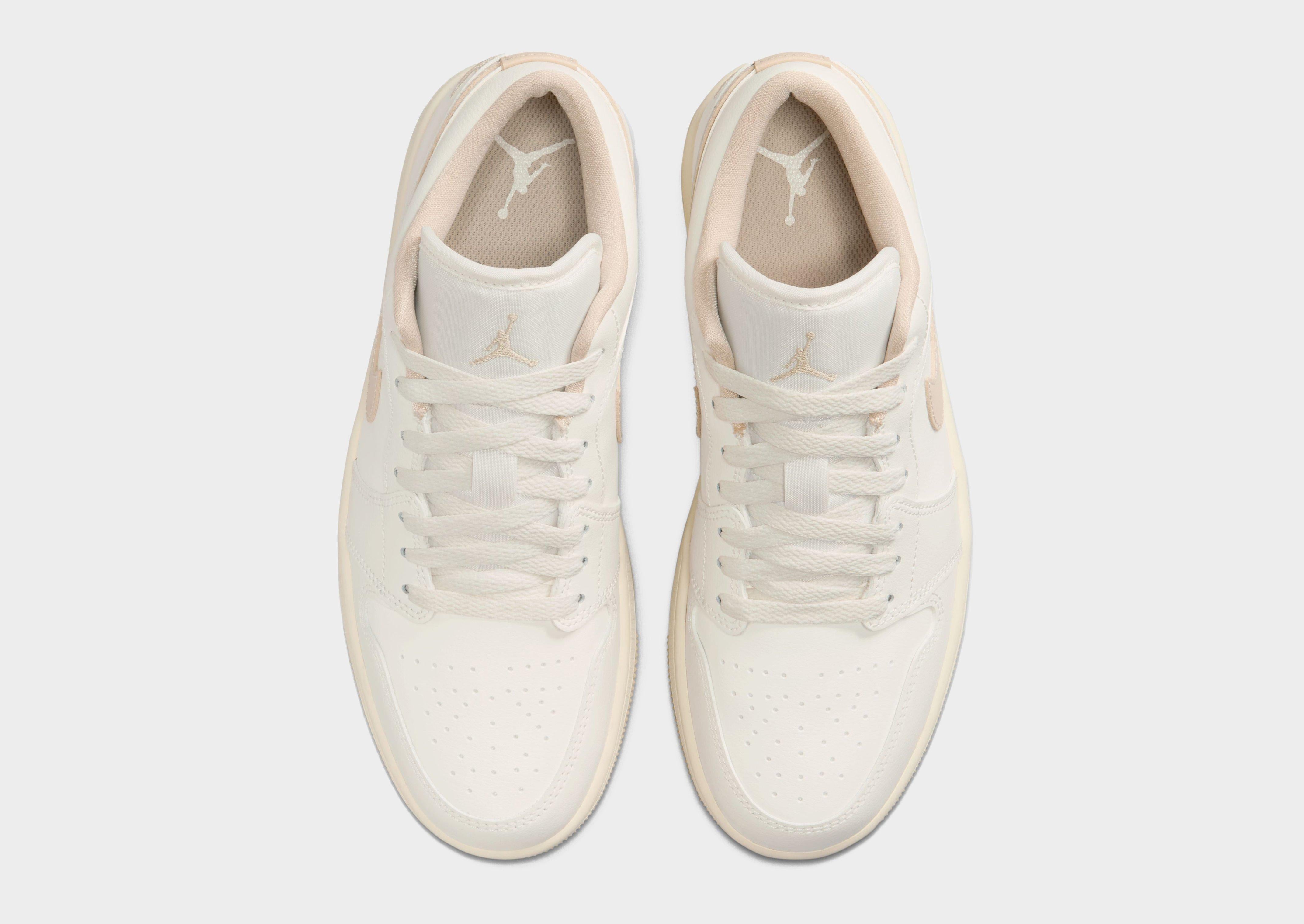 Add timeless appeal to your collection with the women’s Jordan Air 1 Low sneakers. Crafted with a sleek leather upper and accented in white with subtle beige tones, these shoes feature stitched panels that offer both style and structure. The lace closure is complemented by soft padding around the collar for a snug, comfortable fit.