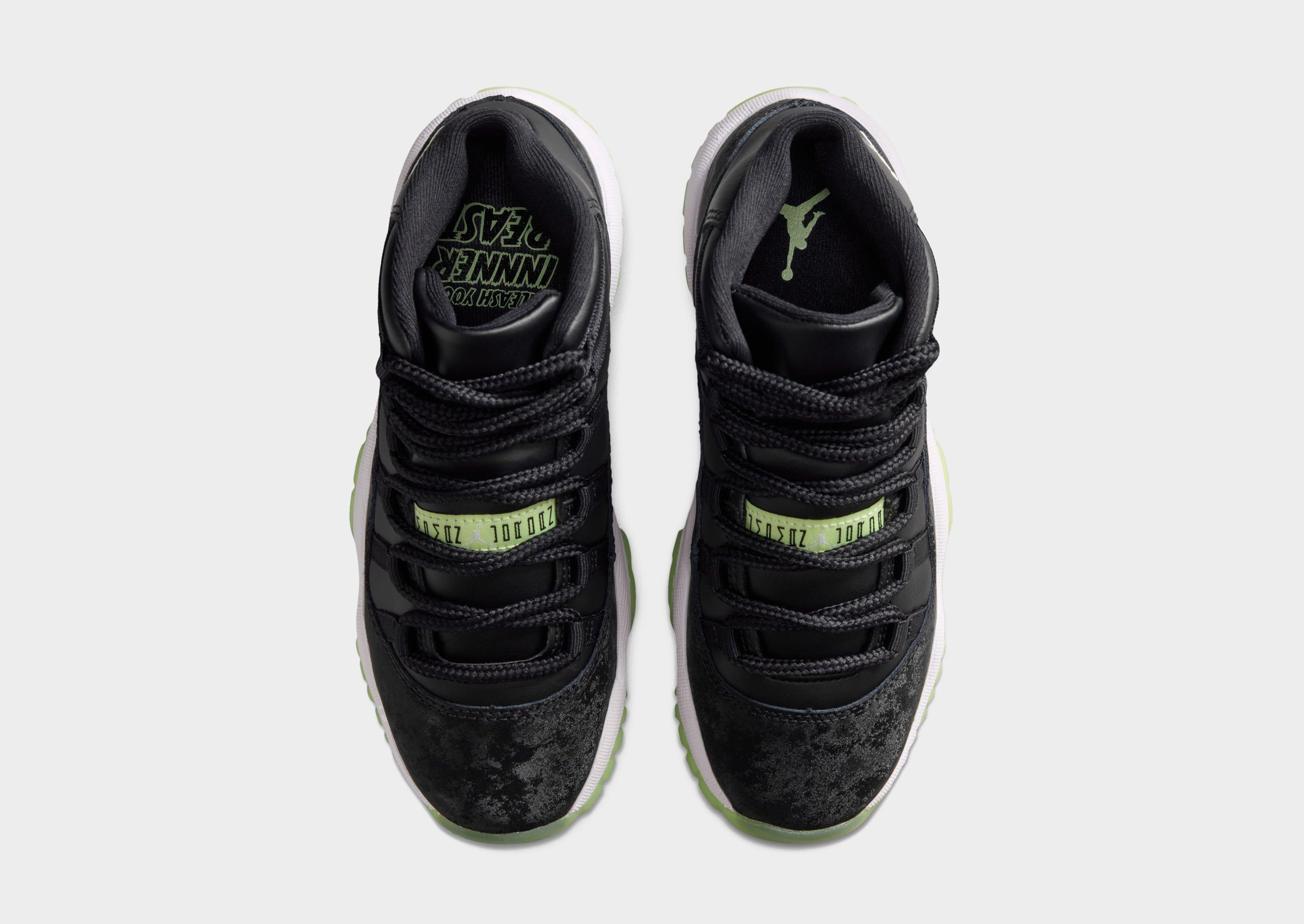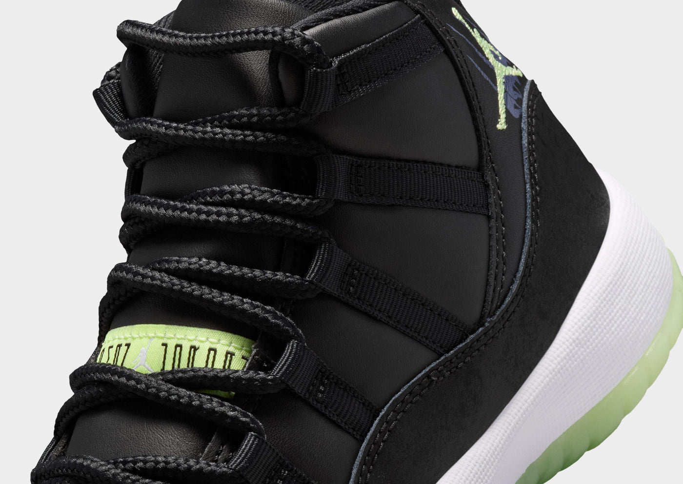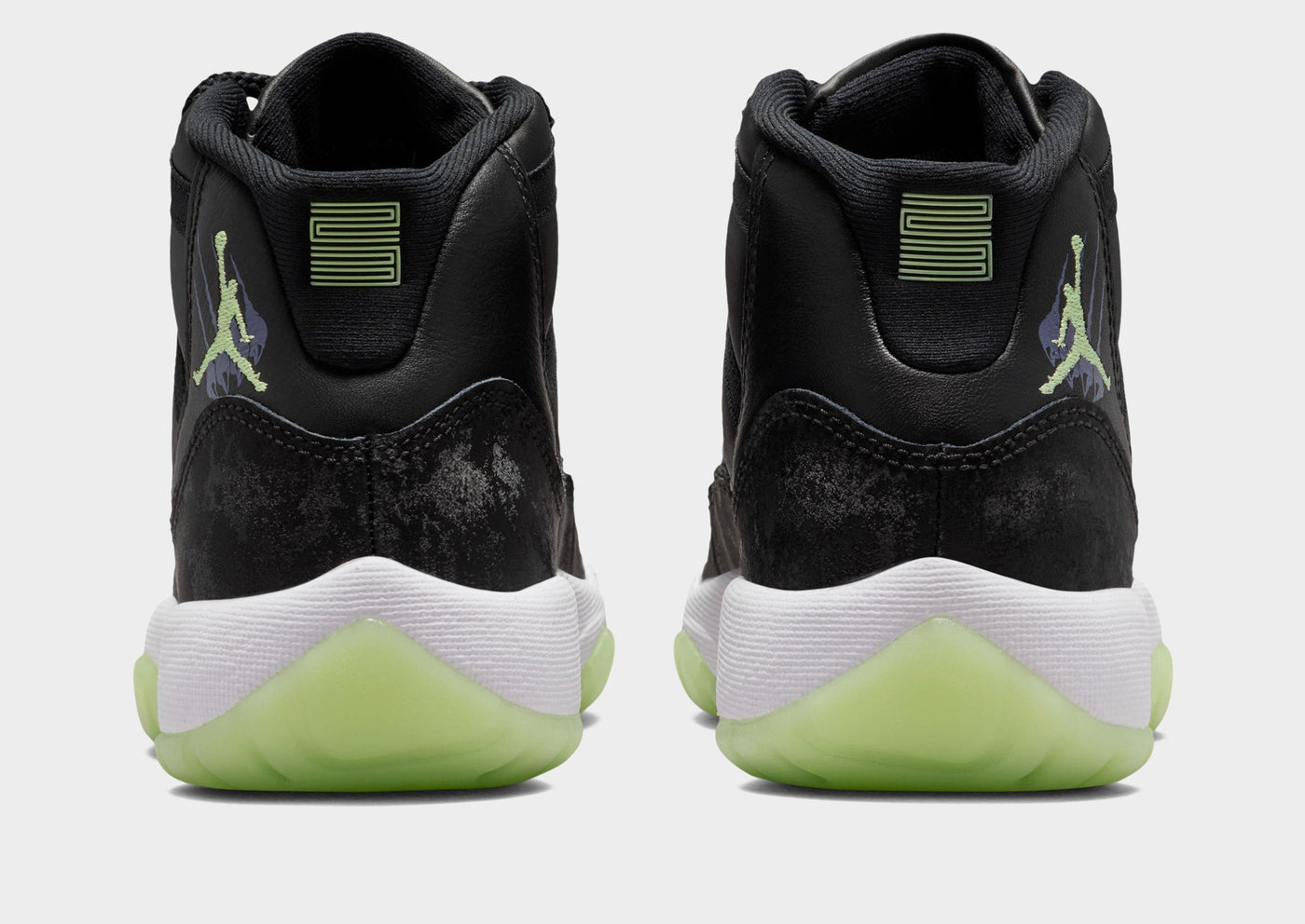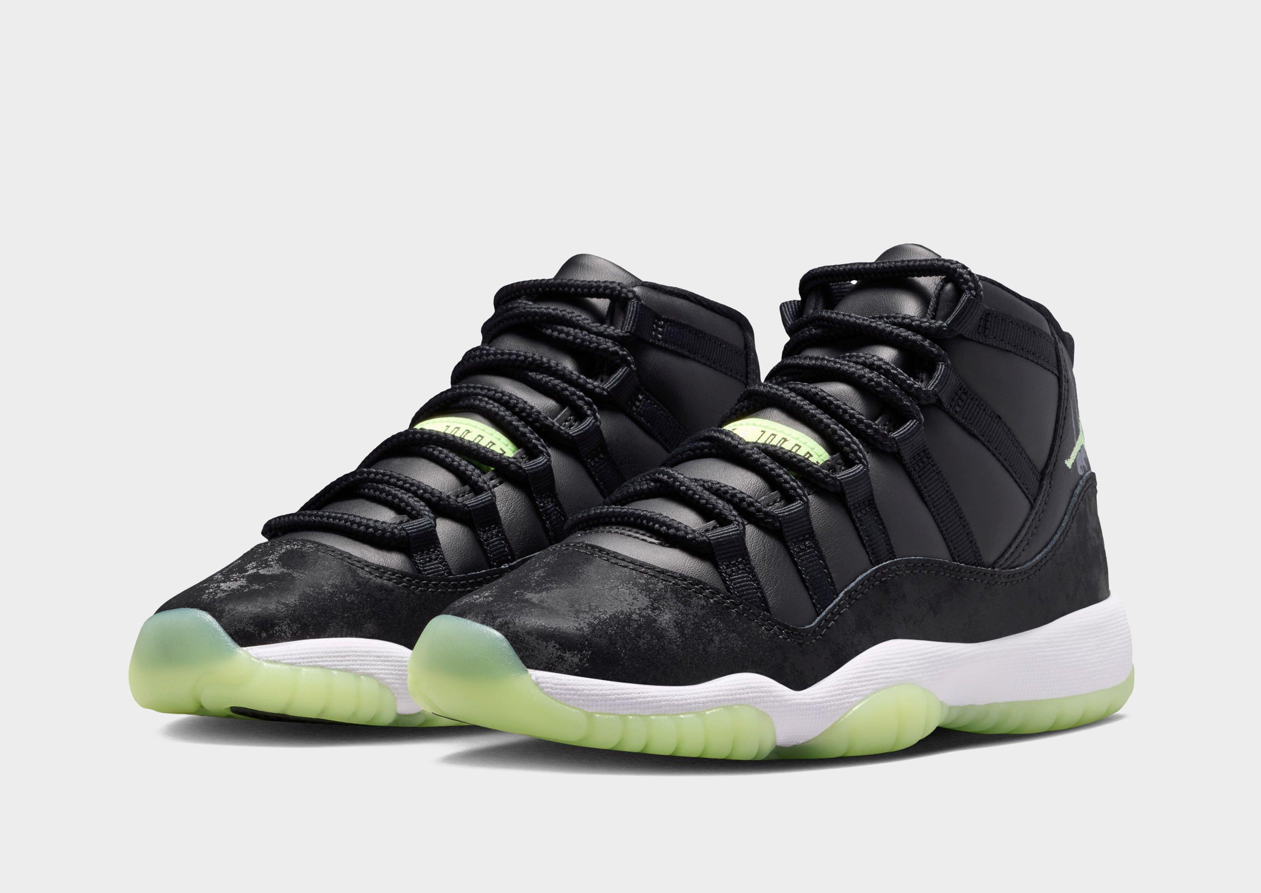 Iconic style is headed your way with the Jordan Air 11 Retro Junior Sneakers. In a striking Black colorway with Glow-in-the-Dark Green accents, these low-profile sneakers blend premium materials and performance-ready features.