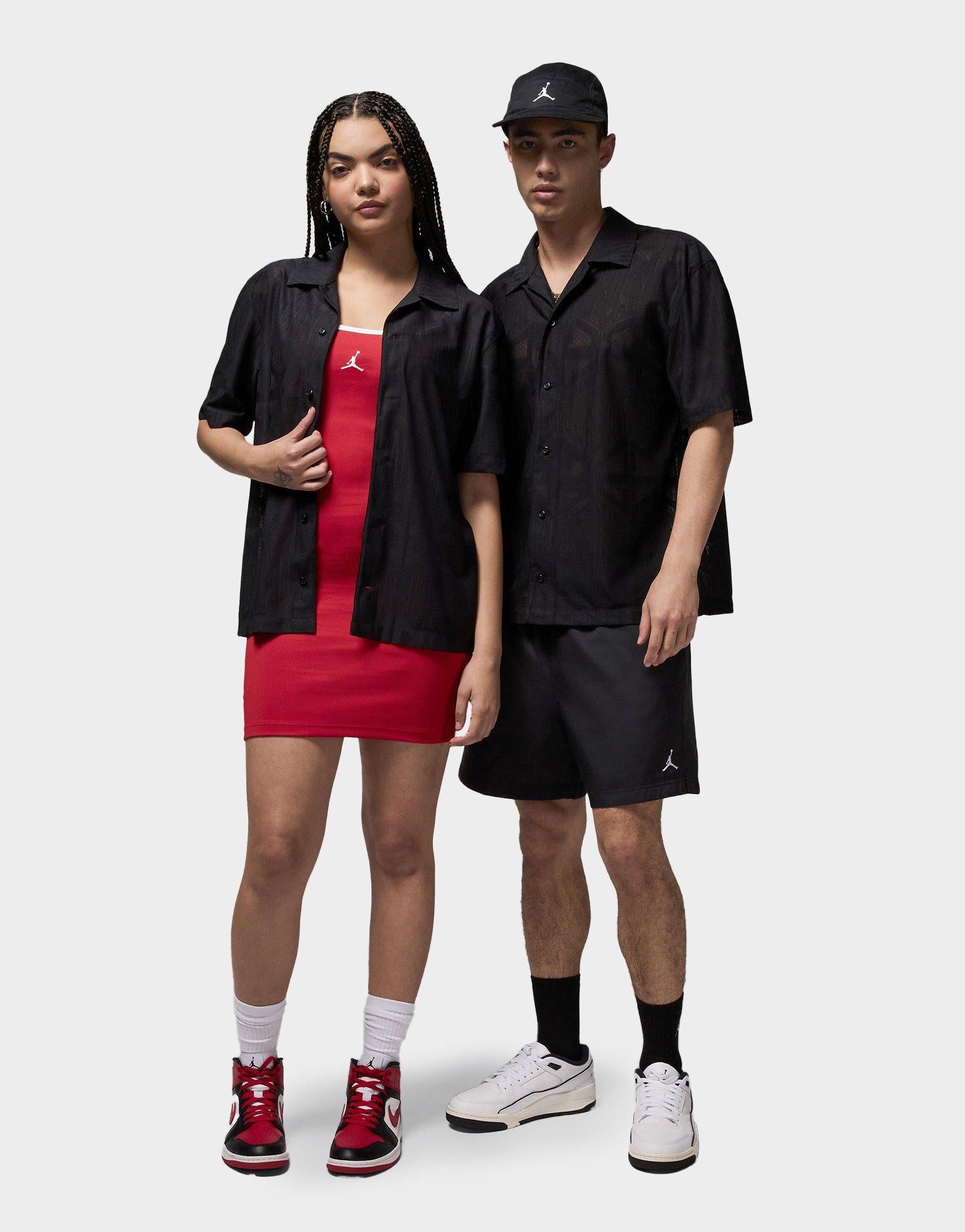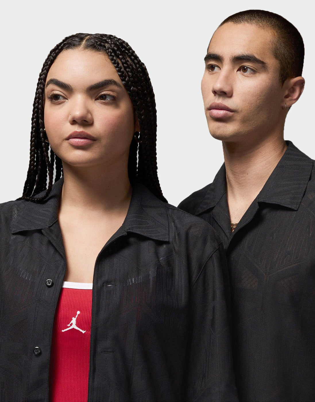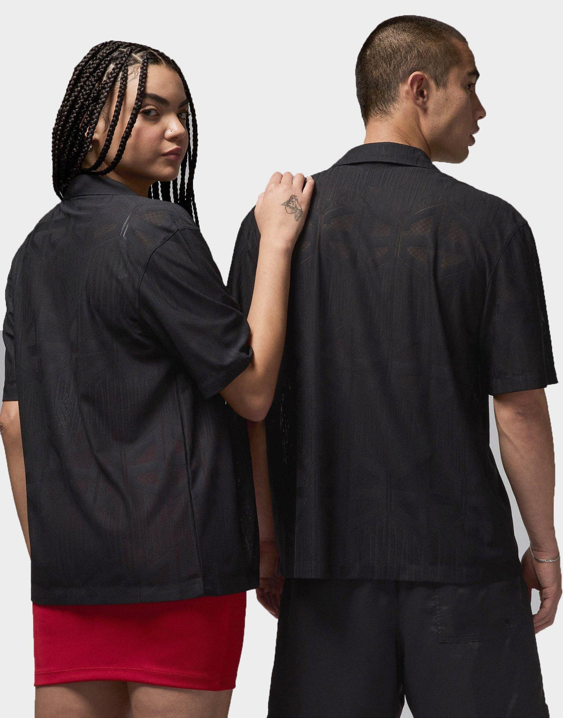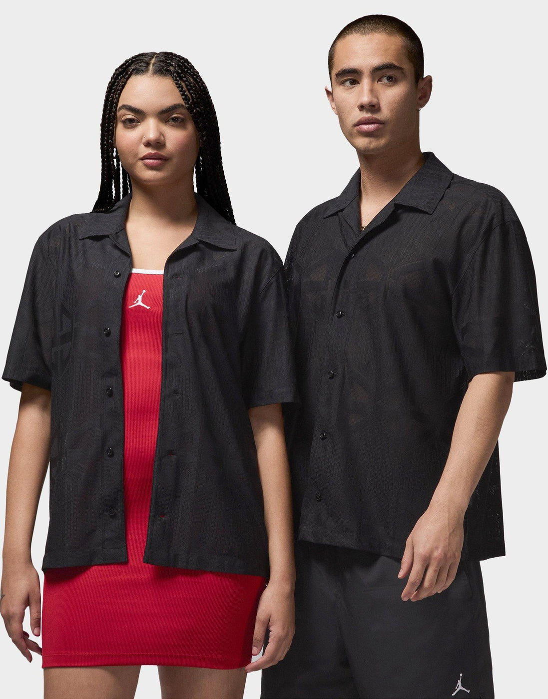 Update your off-duty look with the men's Statement Shirt from Jordan. In a sleek Black colorway, this shirt is made from lightweight jacquard fabric for all-day comfort. It features a spread collar, short sleeves, and a full-length button fastening for a customizable fit. Finished with heritage-inspired Jordan graphics, it adds a timeless touch to your casual wardrobe.