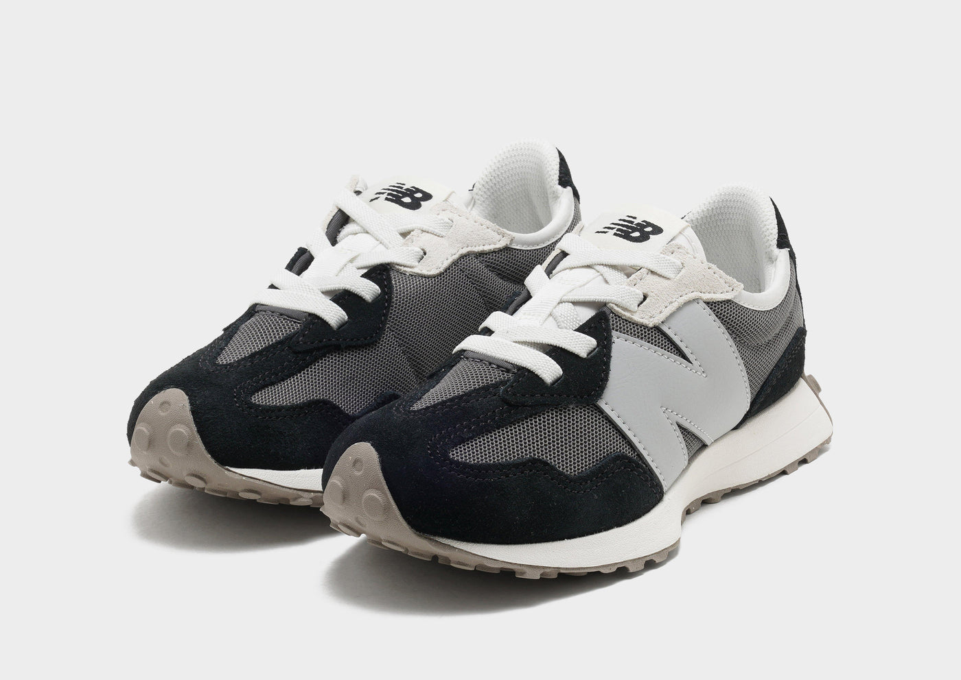 Blends vintage running style with modern design elements. The New Balance 327 Black (001) sports a bold black upper crafted from a combination of suede and mesh, this sneaker offers excellent breathability and durability. Its standout features include an oversized "N" logo and a retro-inspired midsole that adds a distinctive touch. The lightweight EVA sole ensures all-day comfort and support, making it the perfect choice for those seeking a look that?s both classic and fresh with reliable wearability