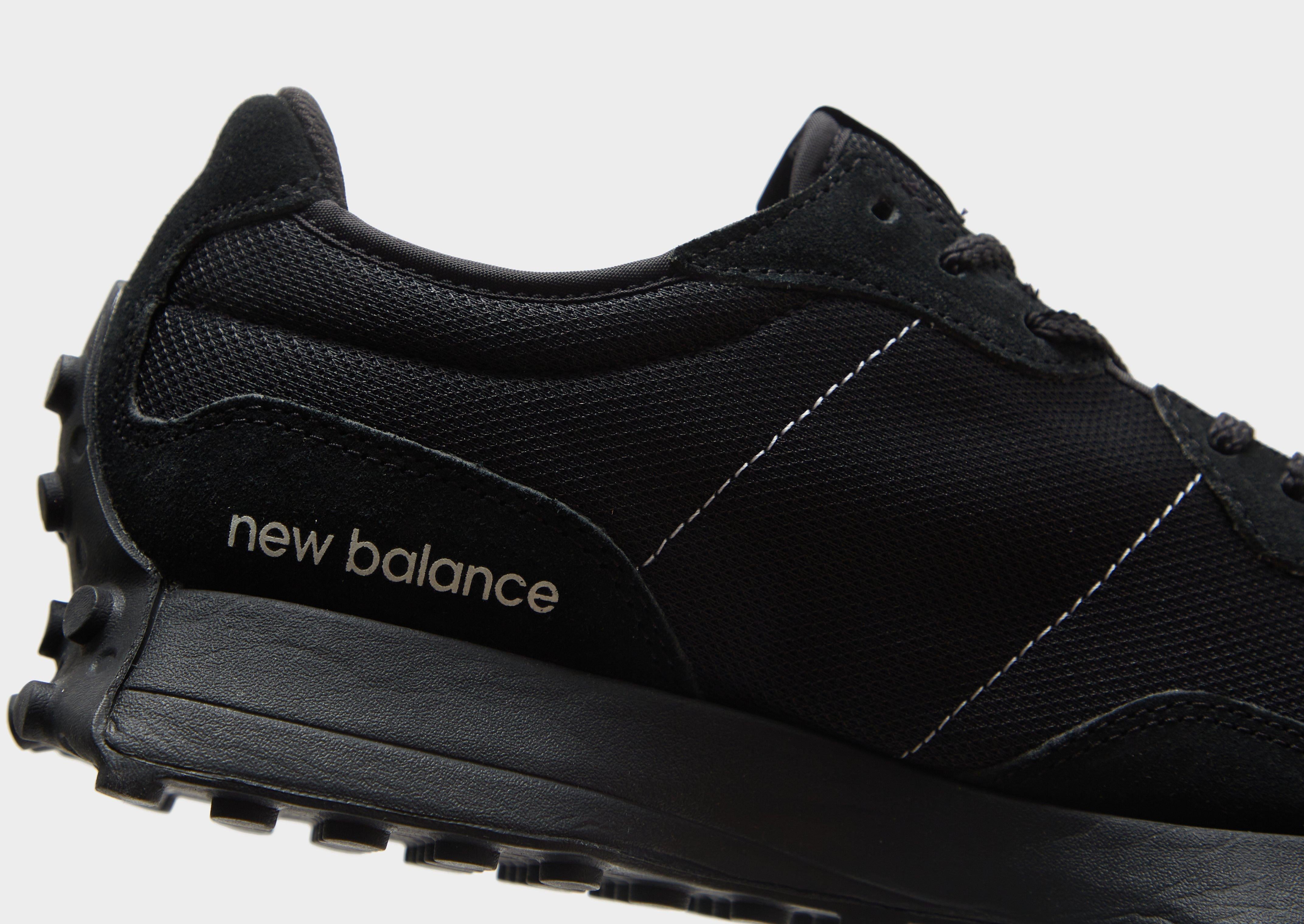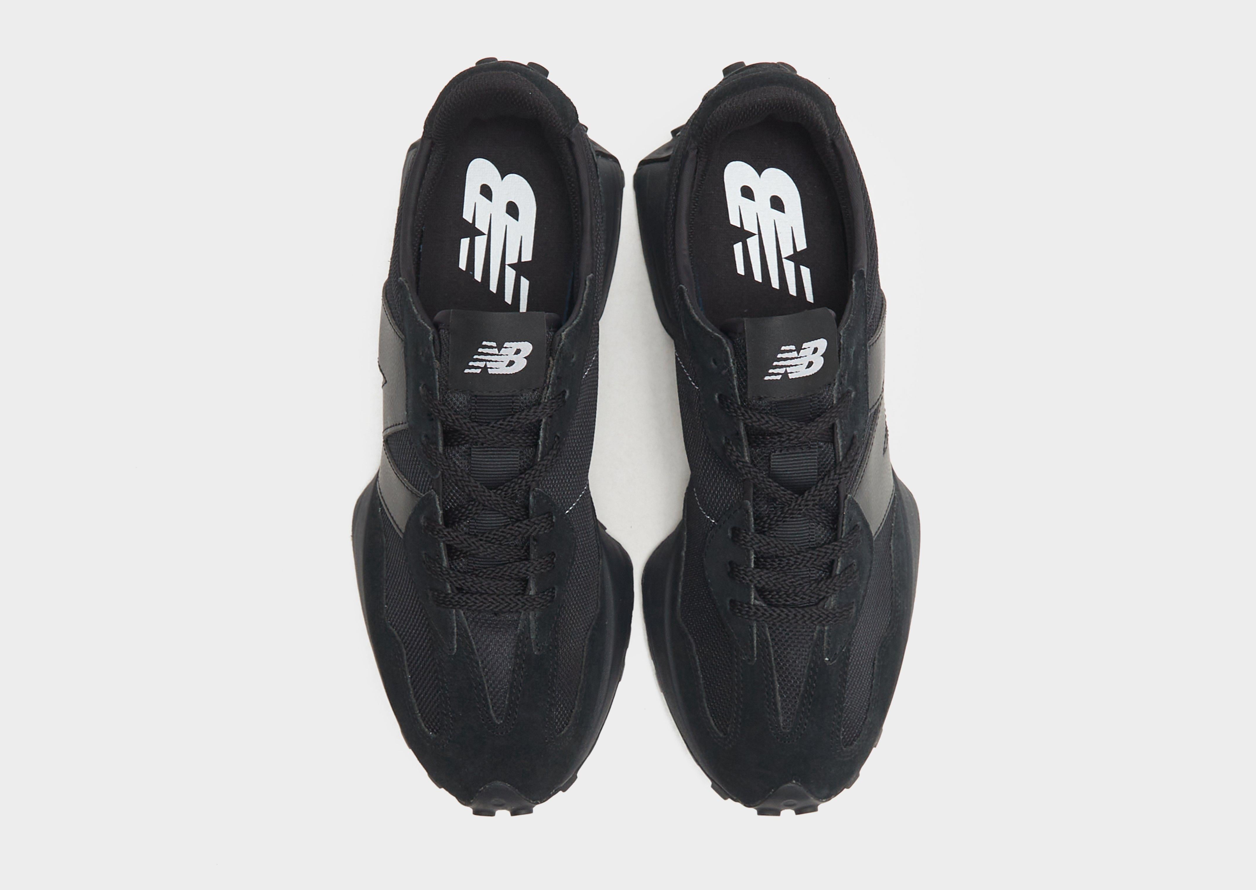 Lace up in these men's 327 sneakers from New Balance. In a Triple Black colourway, these creps have a lightweight woven textile upper with sleek suede overlays for added support. They feature a tonal lace fastening with padding around the low-cut collar for a secure fit, and sit on the signature flared midsole with spongy cushioning for a comfy ride. With a studded rubber outsole for grippy traction, they're finished up with an oversized 'N' logo at the sidewalls, and classic NB branding.