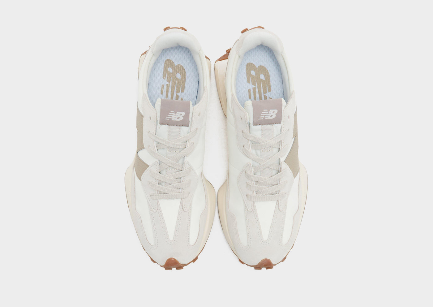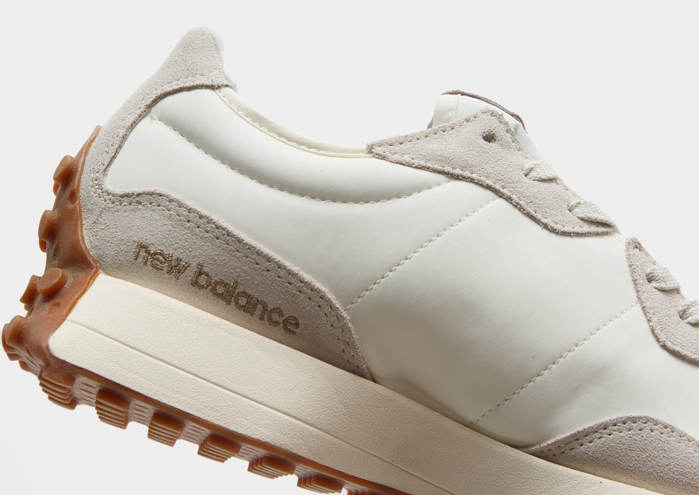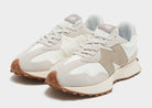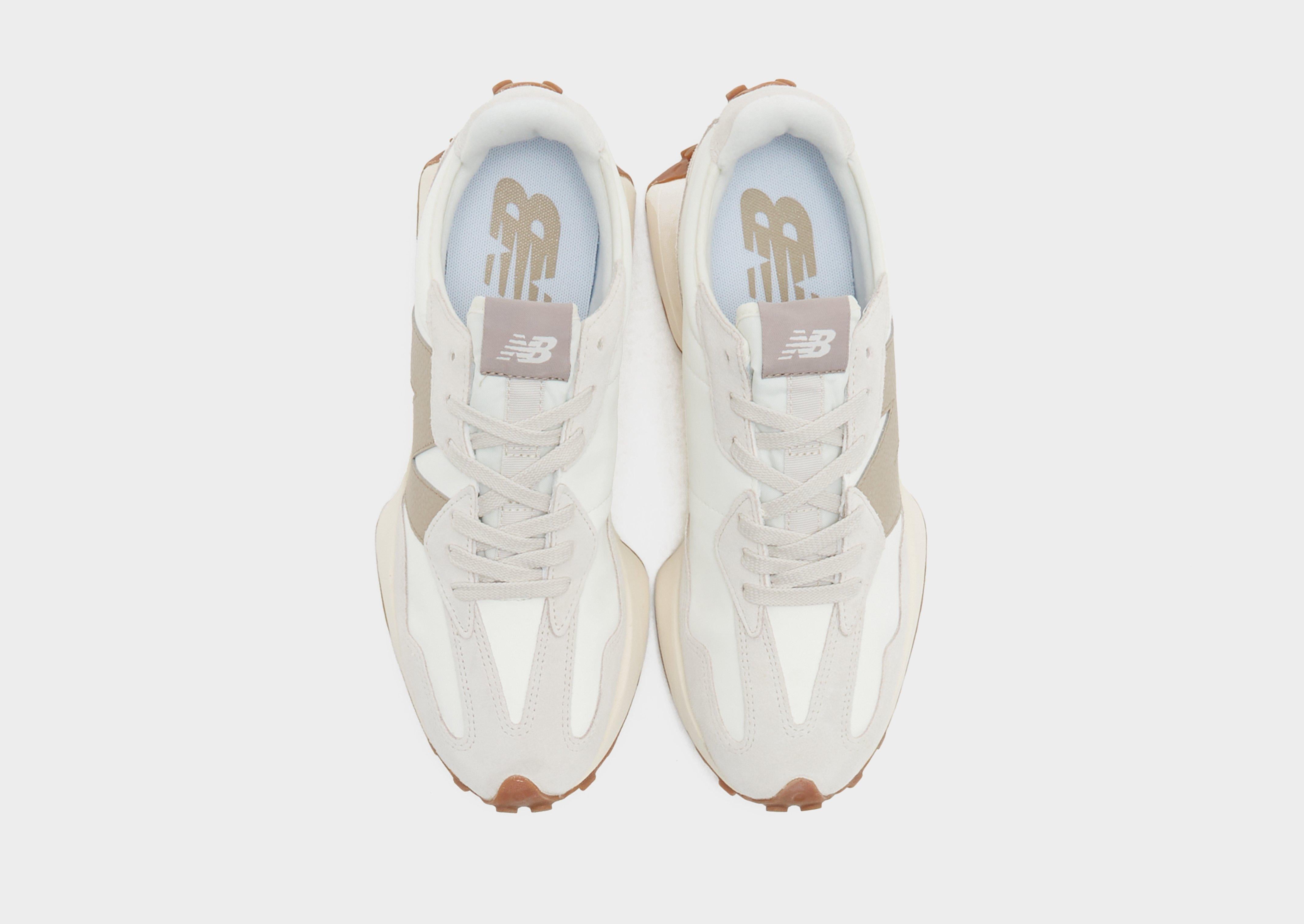 Lace up in these women's 327 trainers from New Balance. Taking cues from '70s track style, these kicks have a lightweight woven nylon upper with soft suede overlays for added support. In a Grey, Cream and Brown colourway, they have a tonal lace fastening with padding around the low-cut collar for a secure fit. They sit atop a classic flared midsole for essential comfort, while a studded gum rubber outsole keeps you gripped. Finished up with an oversized 'N' logo to the sidewalls and signature branding throughout.