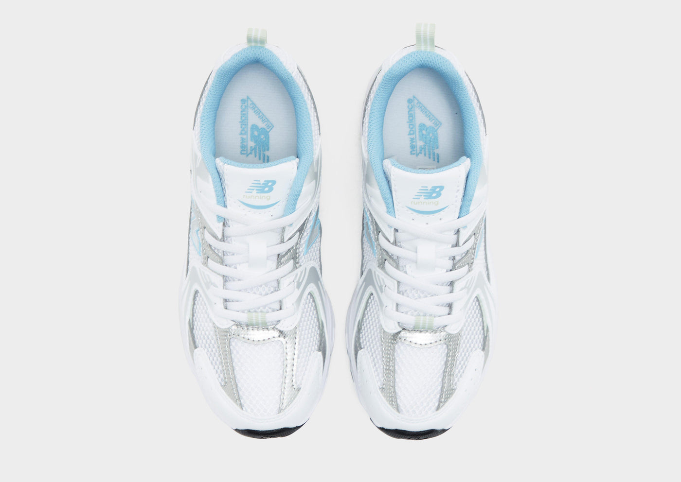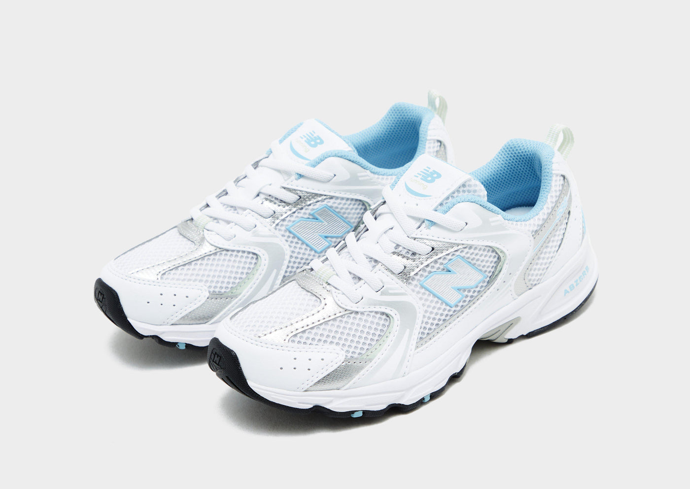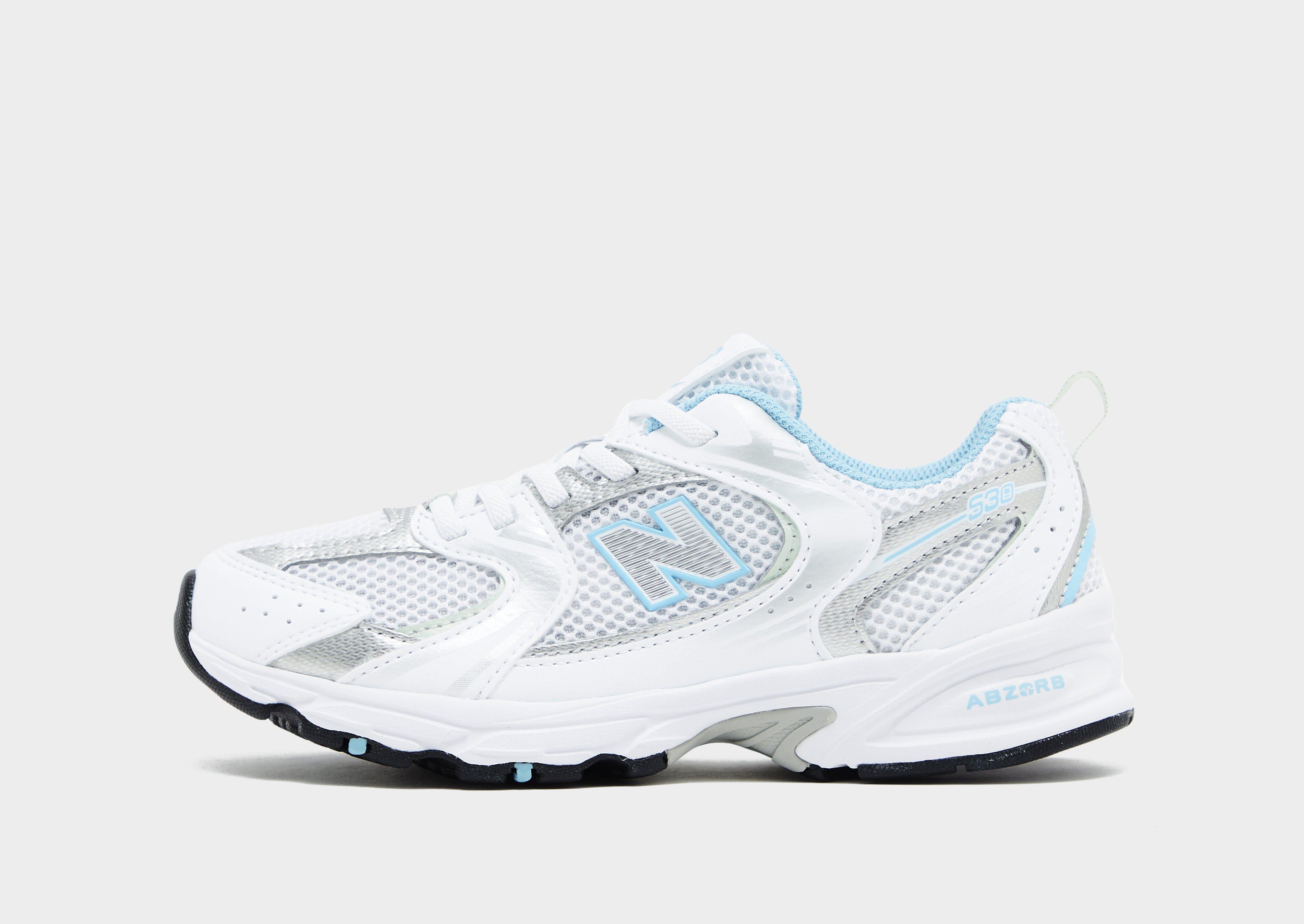 Add an '00s-inspired runner to their style with these children's 530 sneakers from New Balance. In a White colourway with Chrome Blue accents, these trainers have a breathable mesh base and synthetic overlays for support. They're sat above a cushioned ABZORB midsole for a lightweight ride, while the rubber outsole adds grip. Finished off with the classic 'N' to the sidewalls.