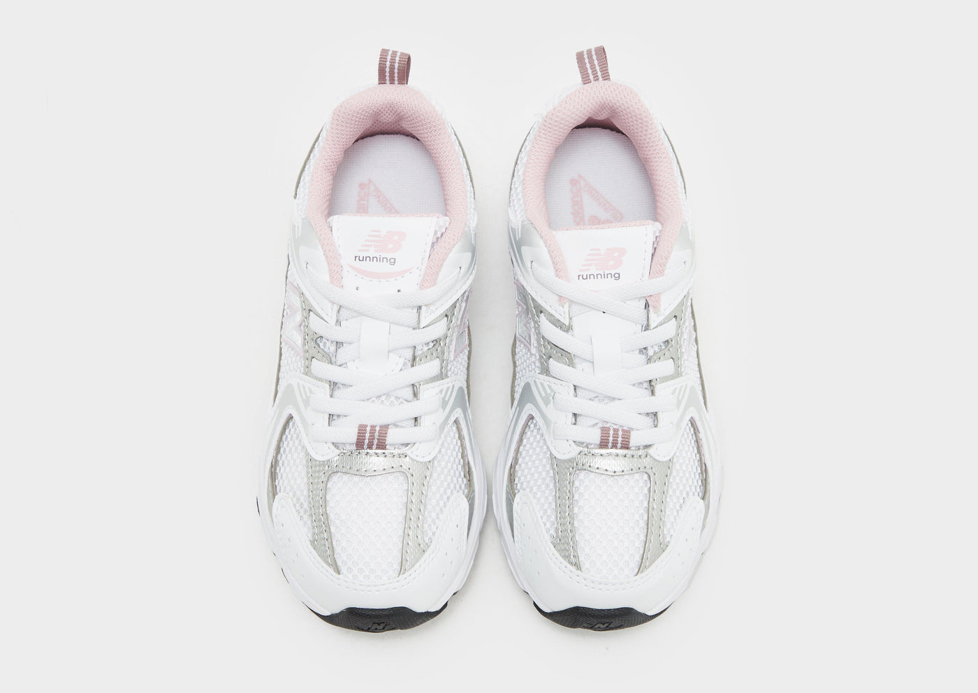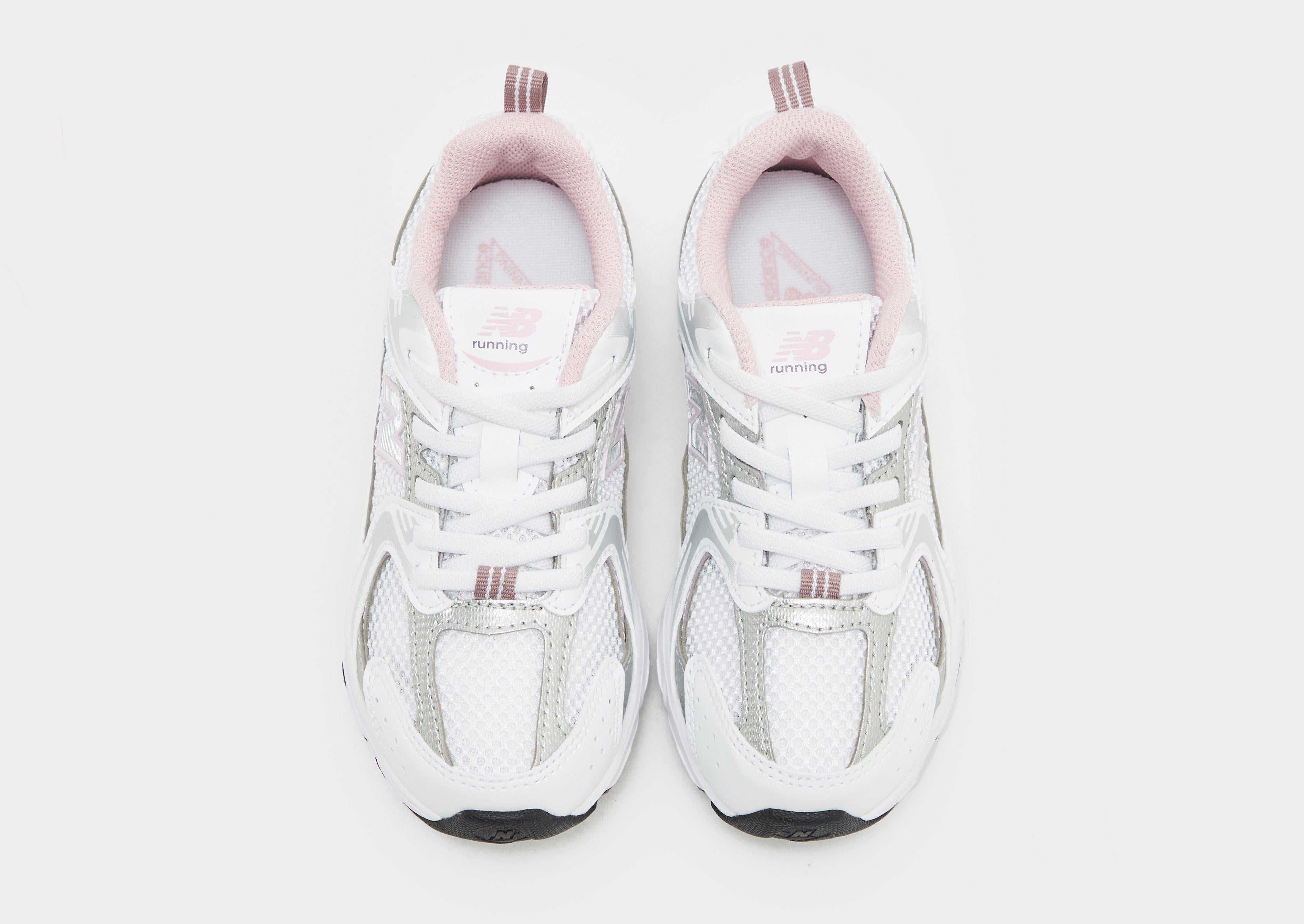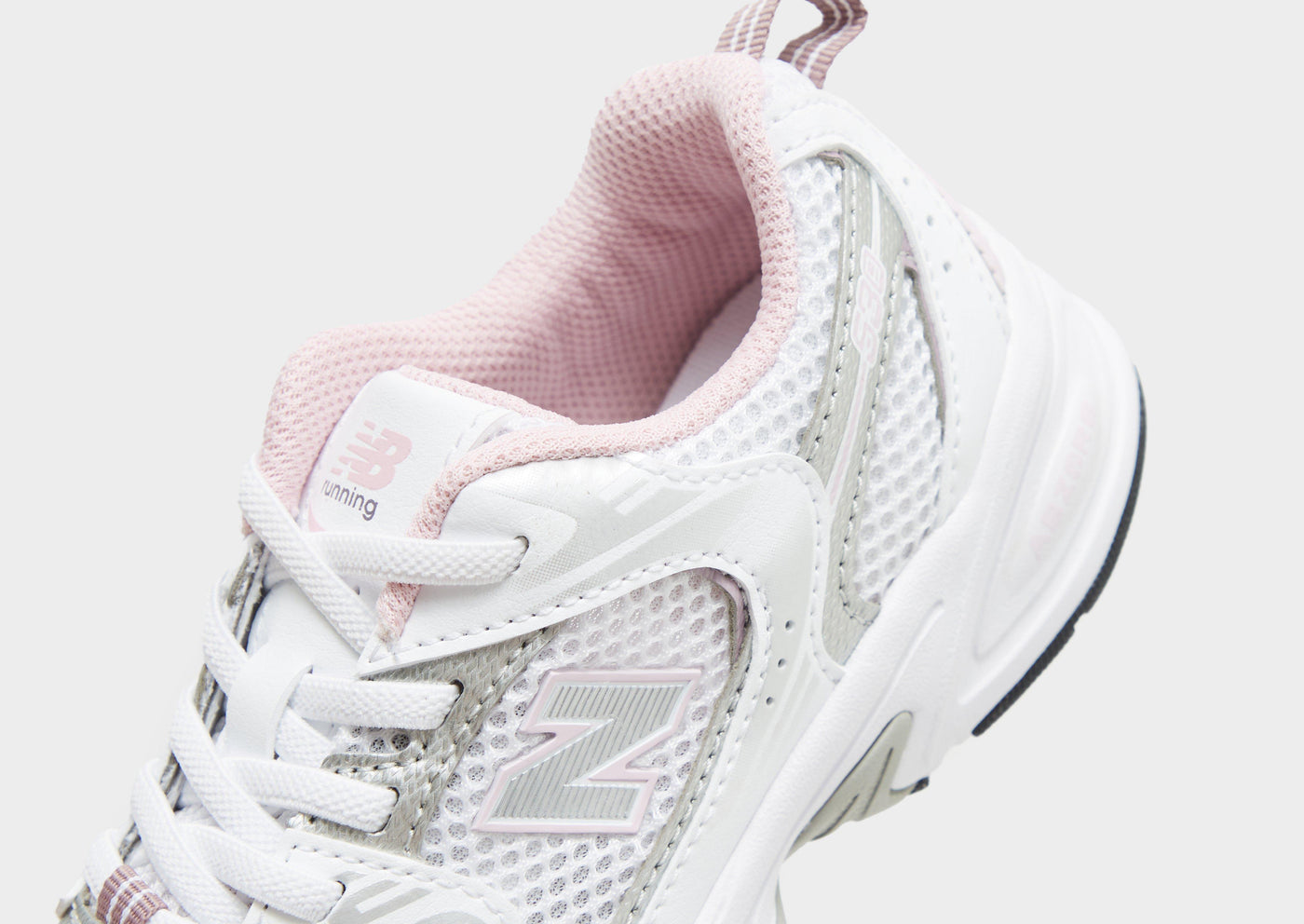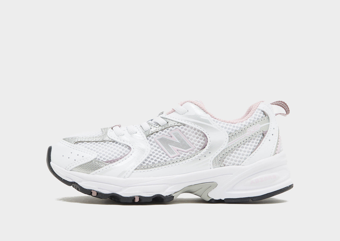 Bag 'em a fresh pair with these children's 530 sneakers from New Balance. In a White and Pink colourway, these downsized sneaks are cut from breathable mesh with synthetic overlays for a lasting wear. They feature a lace fastening to lock 'em in and a padded collar for added support, while underfoot, they sit on a chunky midsole with ABZORB cushioning for an ultra-smooth ride. They have a grippy rubber outsole for total traction and are finished up with signature N branding to the sidewalls.