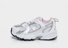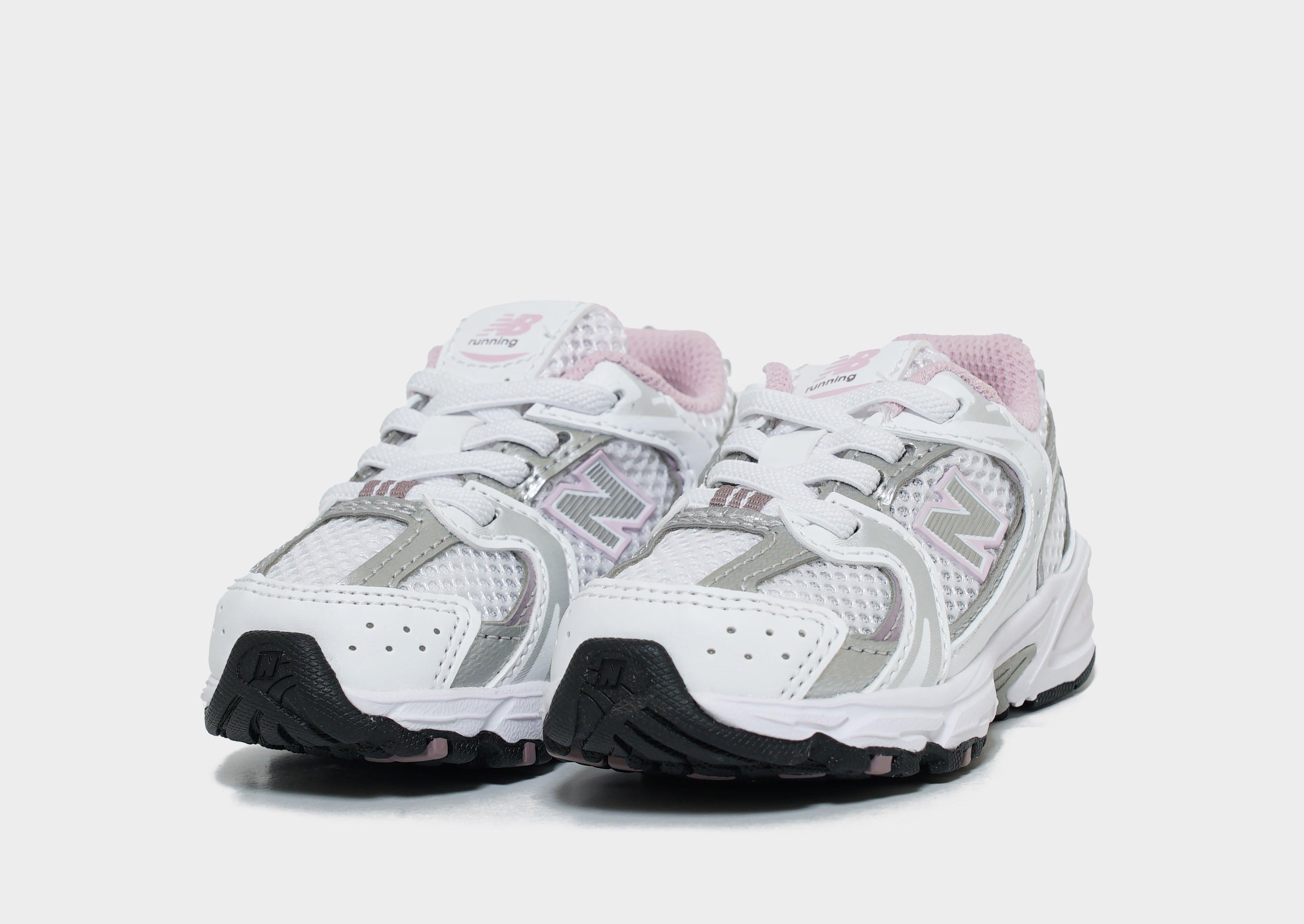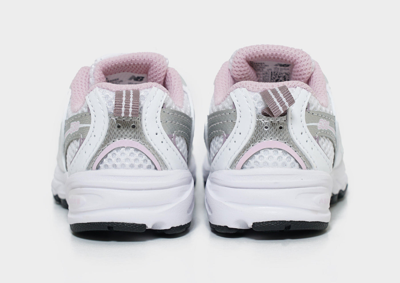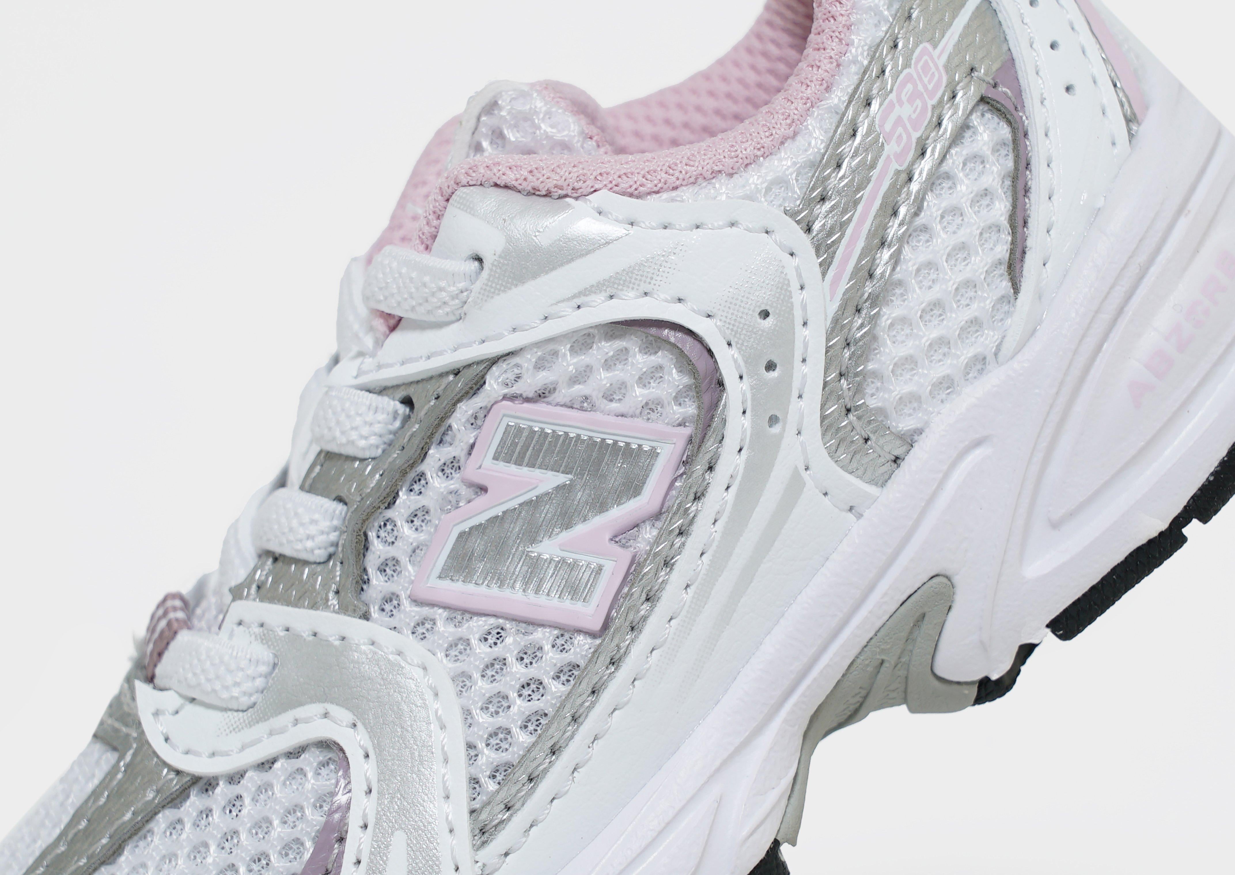 Keep your little one looking fresh with these infants' 530 trainers from New Balance. In a White and Pink colourway with Metallic Silver accents, these kicks have an airy mesh upper with synthetic overlays for durable wear. They have elastic laces for easy on-off, and plush padding around the collar for a snug, secure fit. With spongy ABZORB cushioning and a soft foam midsole underfoot, they have a grippy rubber outsole for traction. Finished with signature New Balance branding throughout.