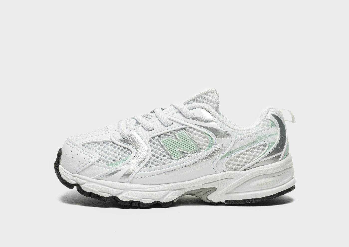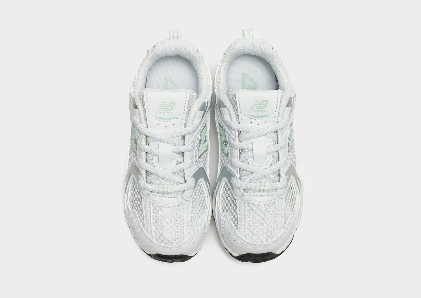 Designed with early walkers in mind, the New Balance 530 combines timeless style with supportive comfort. Featuring a soft, breathable mesh upper accented by synthetic overlays, this sneaker offers a snug yet flexible fit that moves naturally with tiny feet. The lightweight EVA midsole cushions every step, while the durable rubber outsole provides dependable traction to help babies explore with confidence. Playful design meets everyday practicality in the New Balance 530 Infant — the perfect first sneaker for growing feet.