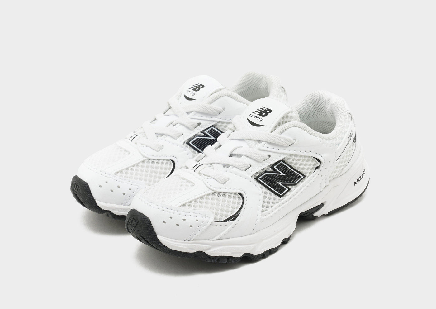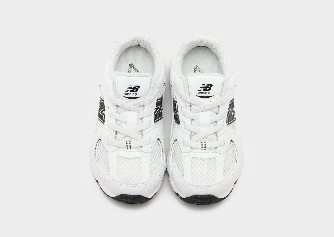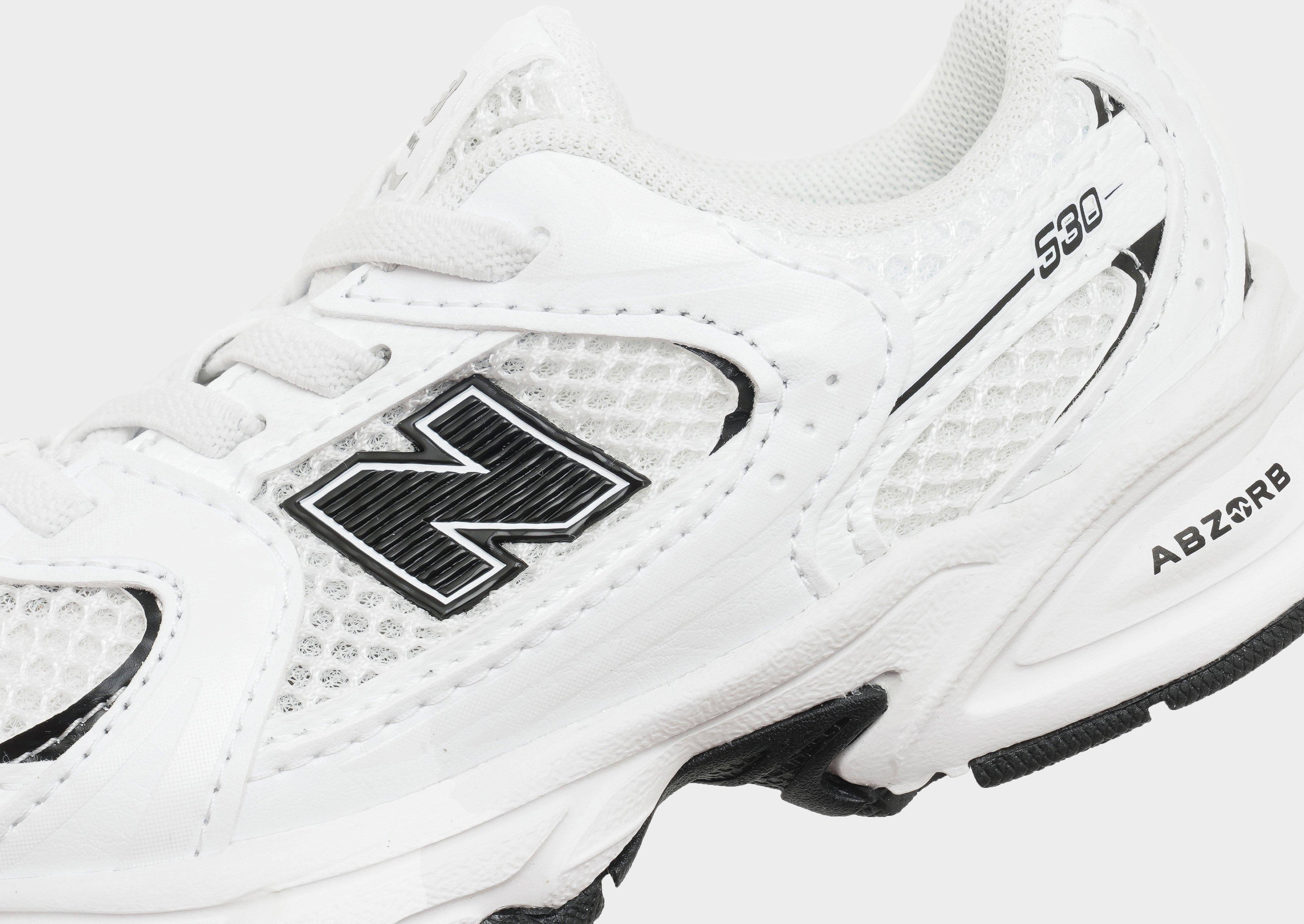 Let your little one step out in style with the New Balance 530, featuring a chic white design with black accents. Crafted for maximum comfort, this sneaker offers perfect support for your child's first steps. Its simple yet stylish design is ideal for supporting their everyday adventures.