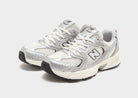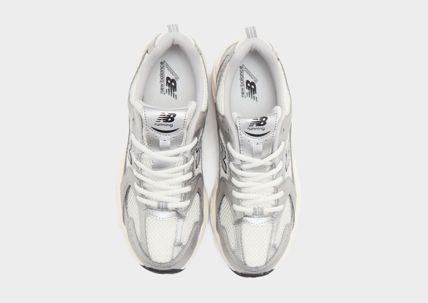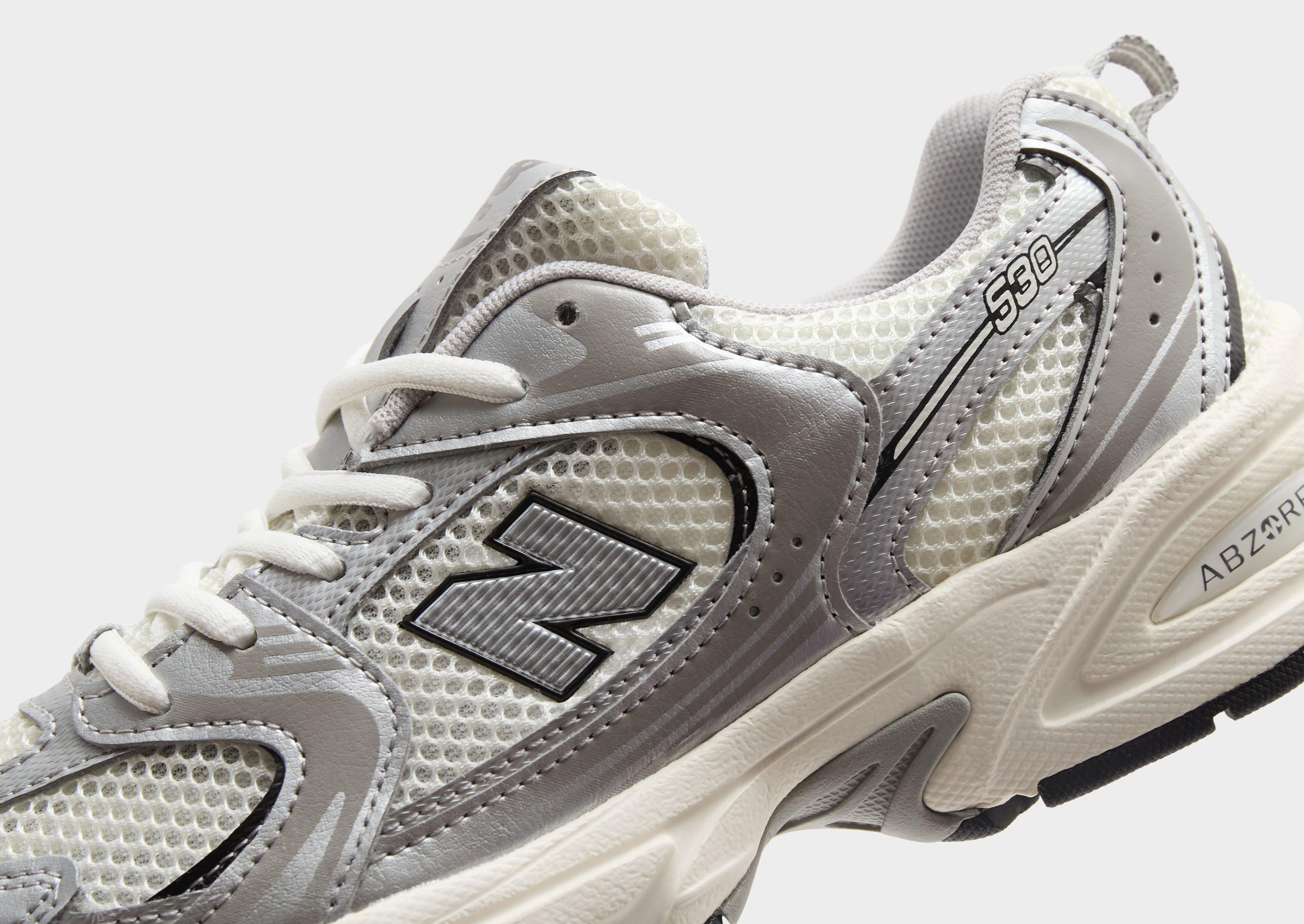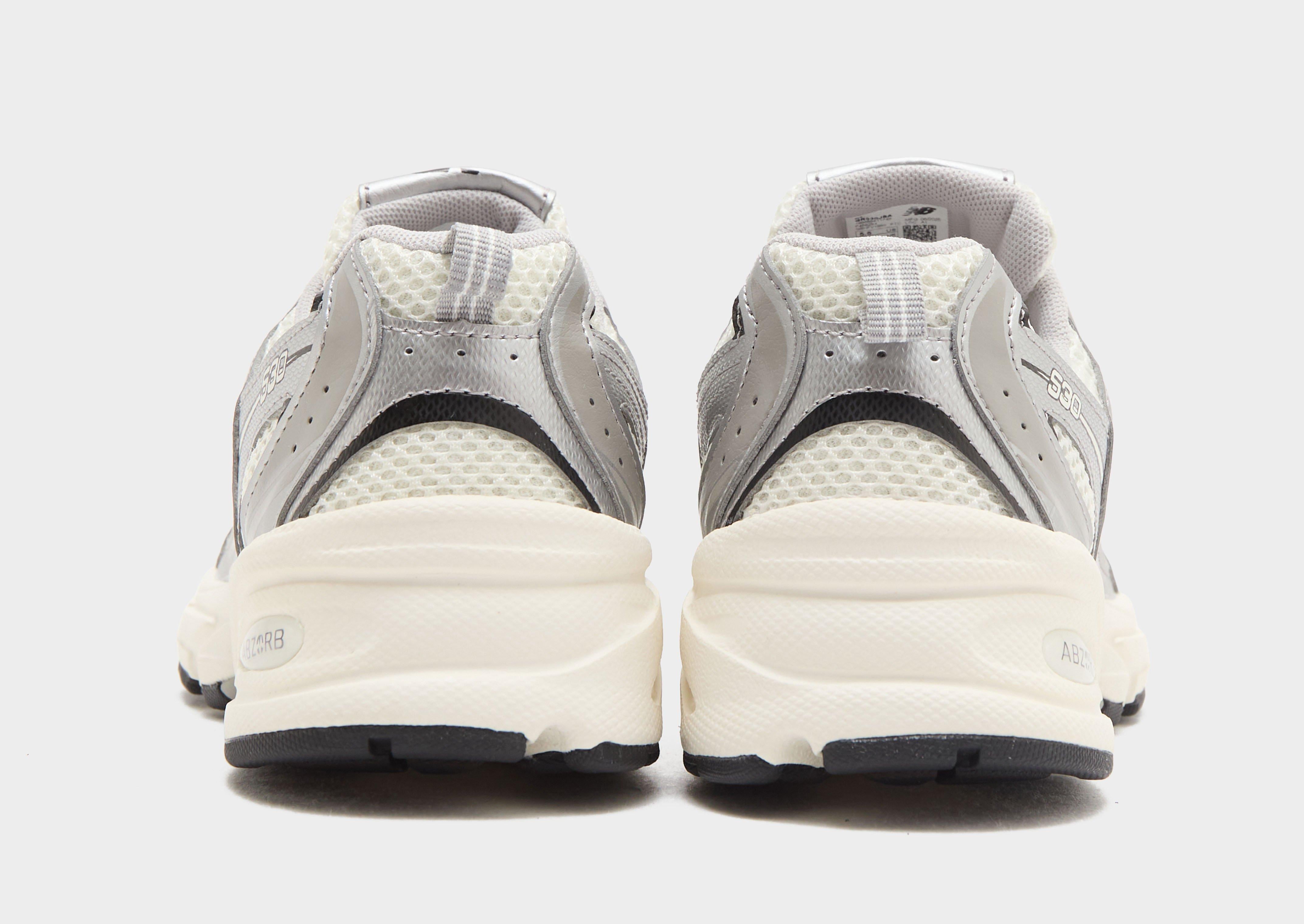 Bring retro style to your step. These juniors' 530 sneakers from New Balance are cut from breathable mesh and durable leather. They feature a padded collar for support. With a pull-tab for easy on-off. Underfoot, an ABZORB midsole delivers a smooth step. Grippy rubber offers firm traction. Landing in Sea Salt and Metallic Silver, they're signed off with signature N branding.