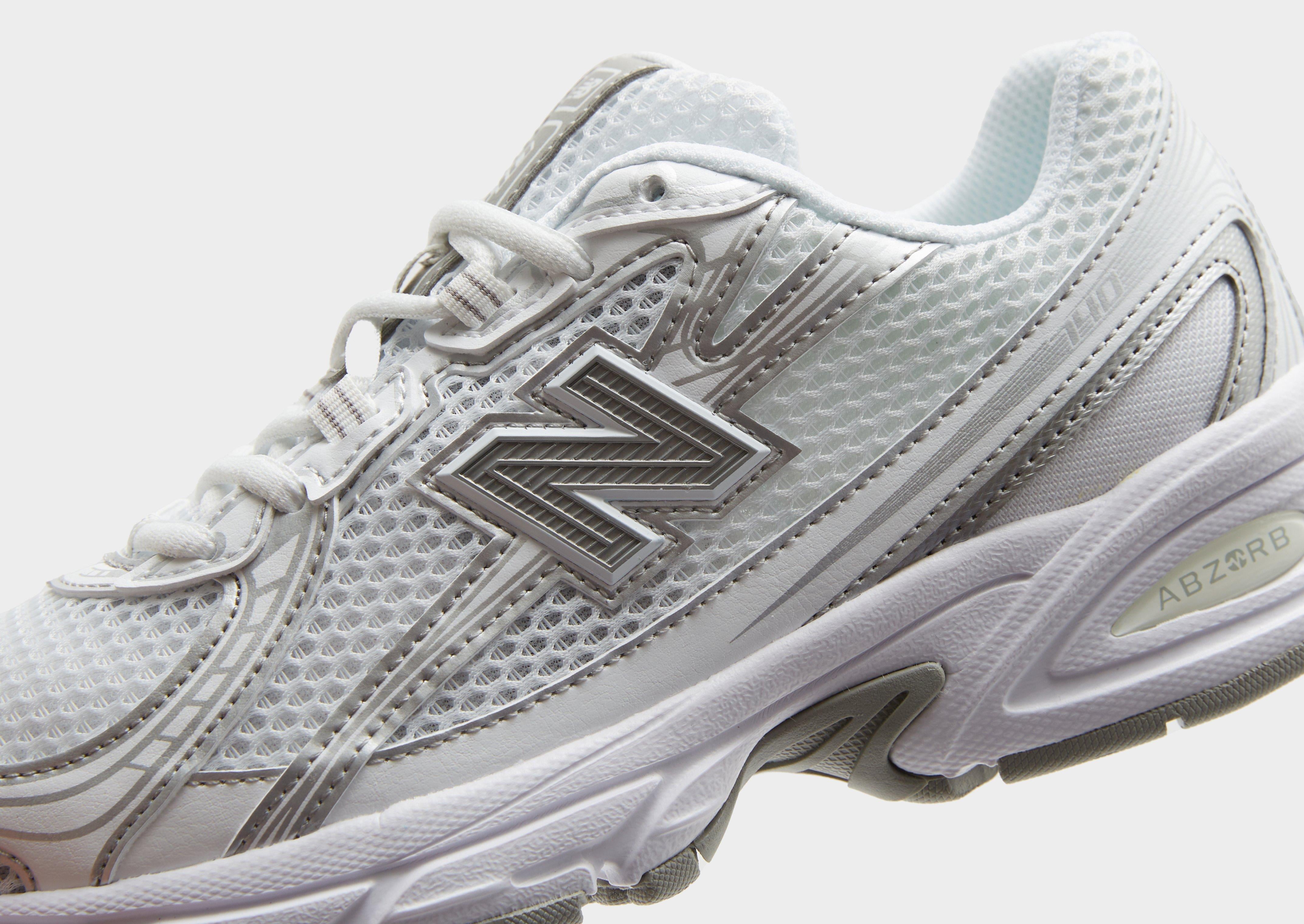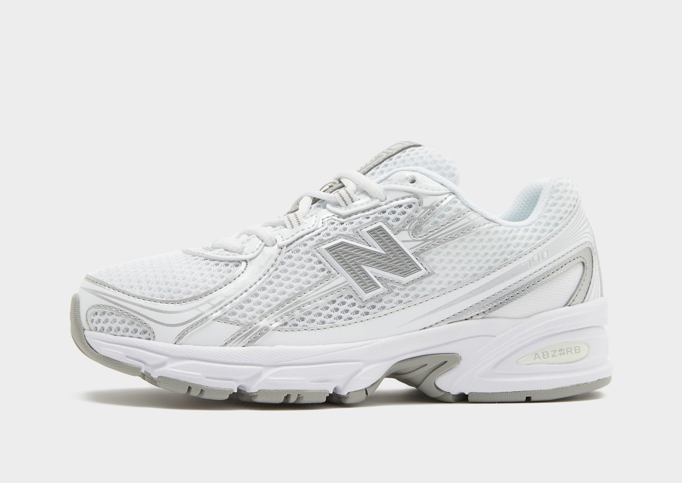 Step out in retro style with these juniors' 740 sneakers from New Balance. In a White and Silver colourway, these sneaks are cut from light and breathable mesh with durable synthetic overlays. They feature a lace fastening to lock you in, with a padded collar for support. Underfoot, they sit on a chunky ABZORB midsole for a smooth ride, with a grippy rubber outsole for firm traction. Finished up with classic N branding.