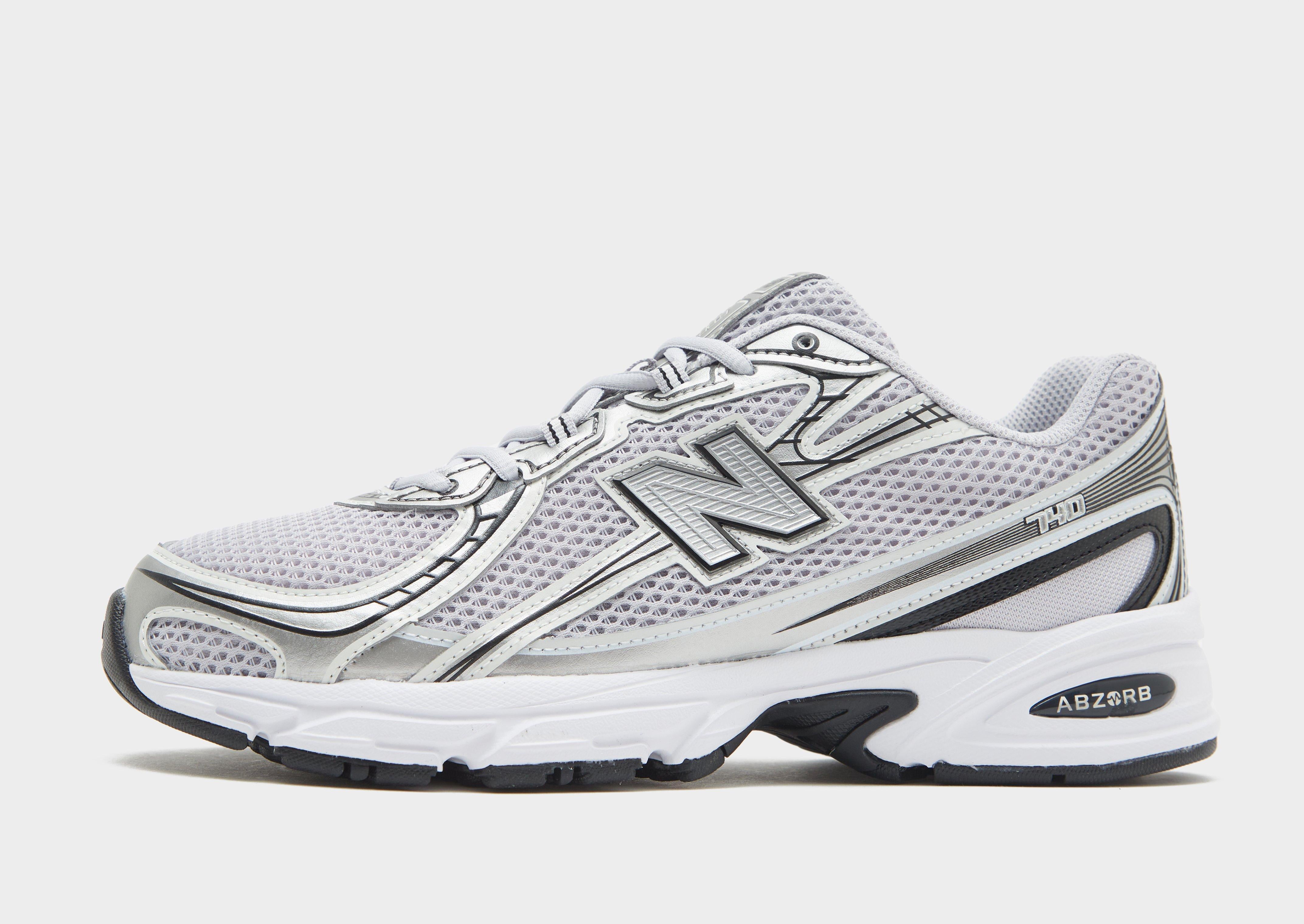 Step out in JD-exclusive style with these men's 740 trainers from New Balance. In a Light Grey, Silver and White colourway, these sneaks have a two-tone upper with breathable mesh underlays and angular overlays for cool comfort. They feature a lace fastening to lock you in, with a padded tongue and ankle collar for extra support. Underfoot, the ABZORB midsole offers lightweight cushioning, while the rubber outsole provides total traction. Finished up with the signature 740 branding and the 'N' logo to the sidewalls.