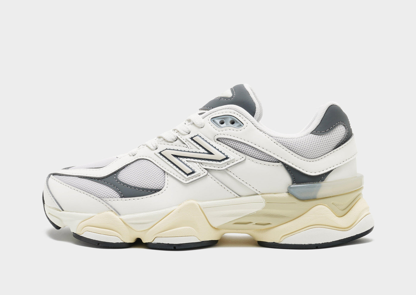 Step up their style with the New Balance 9060 Juniors? Shoes. In a Grey and Tan colorway, these sneakers feature suede overlays, ABZORB and SBS cushioning, and a diamond rubber outsole for comfort, support, and traction in every step.