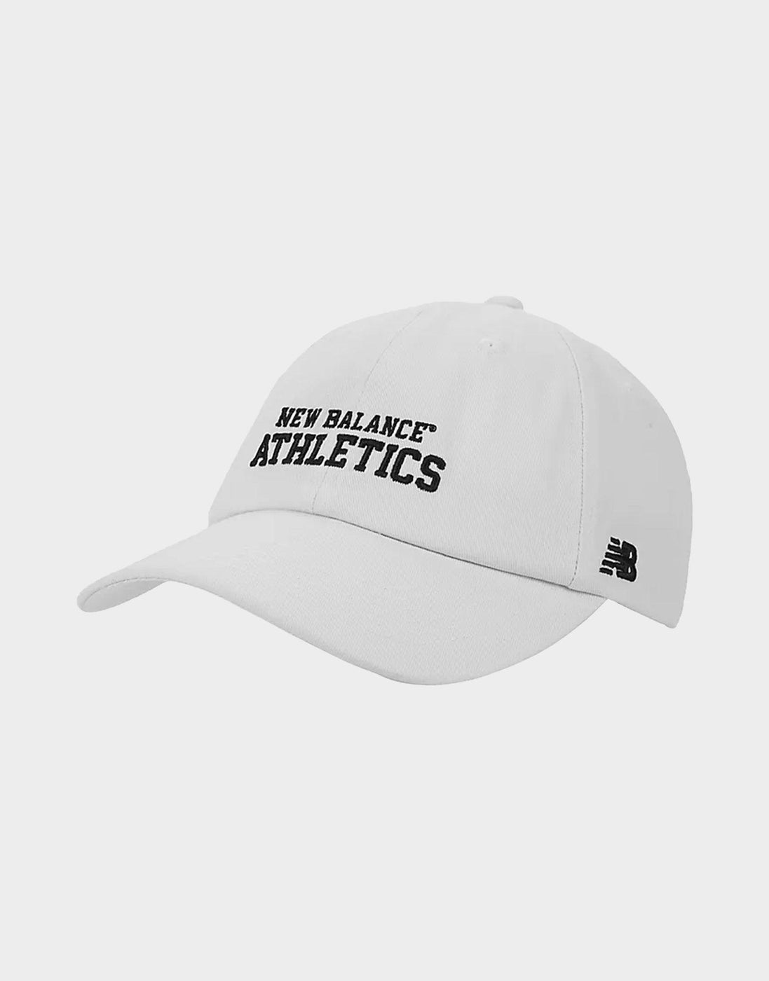 This 6-panel cap combines style and functionality with soft cotton construction for all-day comfort. It features a curved brim to protect your eyes from the sun and an adjustable strap at the back for a customized fit. The cap is emblazoned with the "New Balance Athletics" logo, adding a sporty vibe to any casual look. Available in versatile neutral colors like beige, it pairs effortlessly with a wide range of outfits.