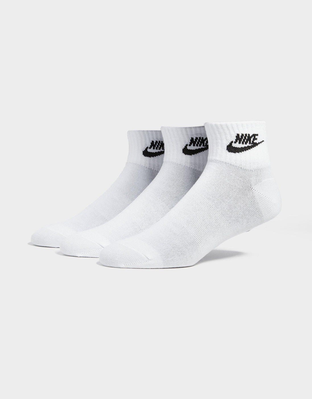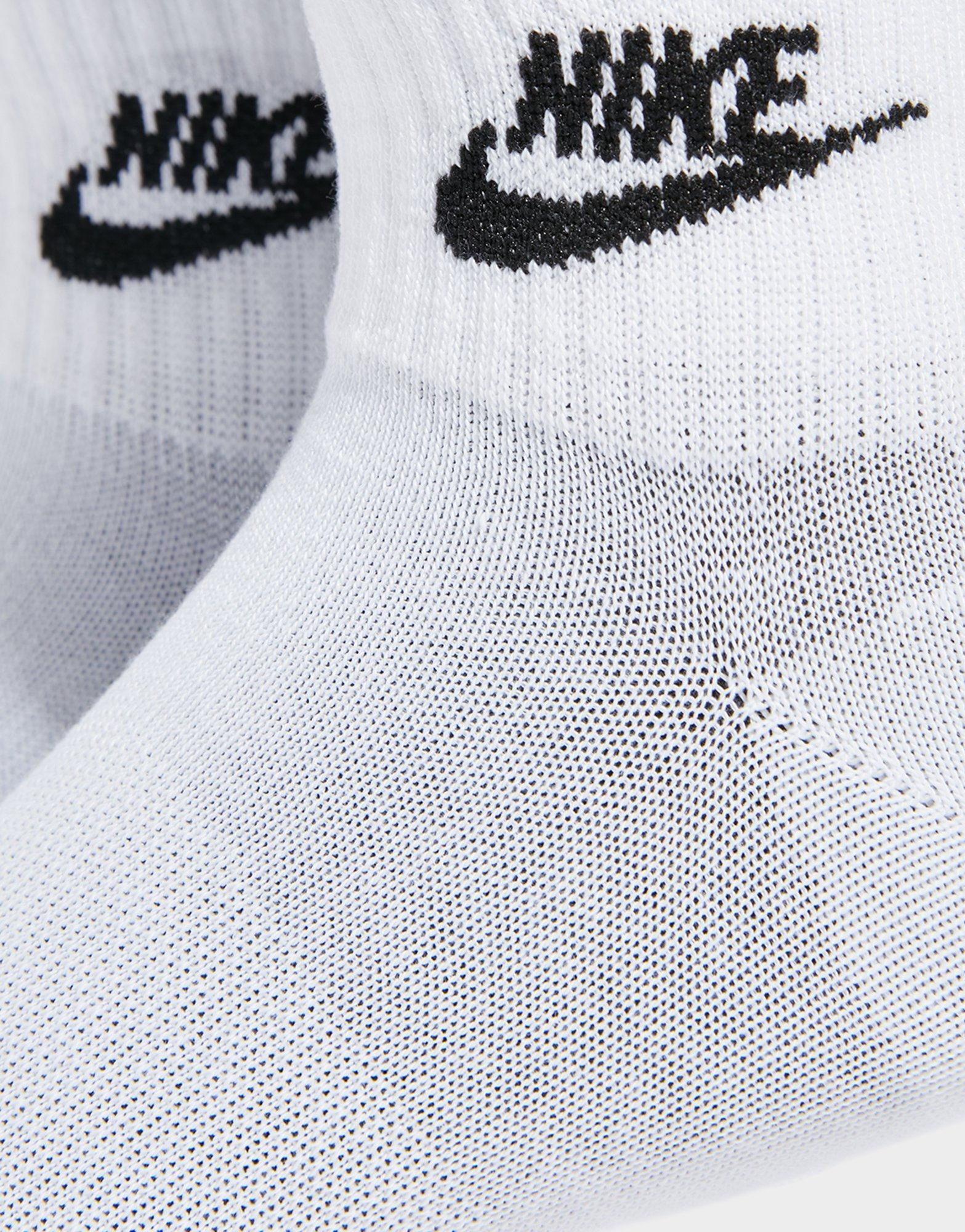 Rep all things Swoosh with this 3-Pack Everyday Essential Socks from Nike. In a fresh White colourway, these 1/4-length socks are made from a soft and stretchy cotton blend. They cover the ankle and feature a thick terry sole for maximum comfort. Finished with Nike Futura branding in black. Machine washable.