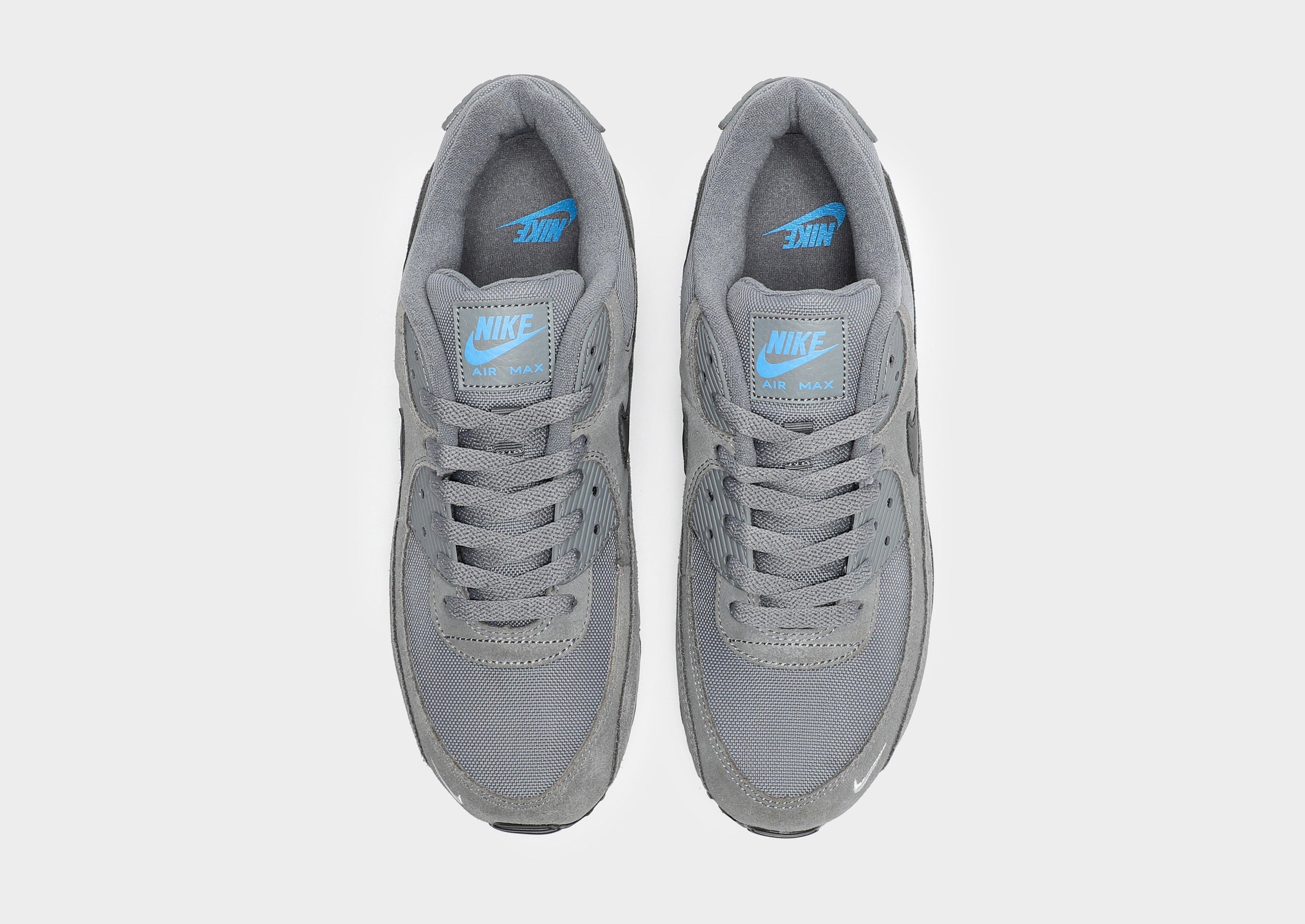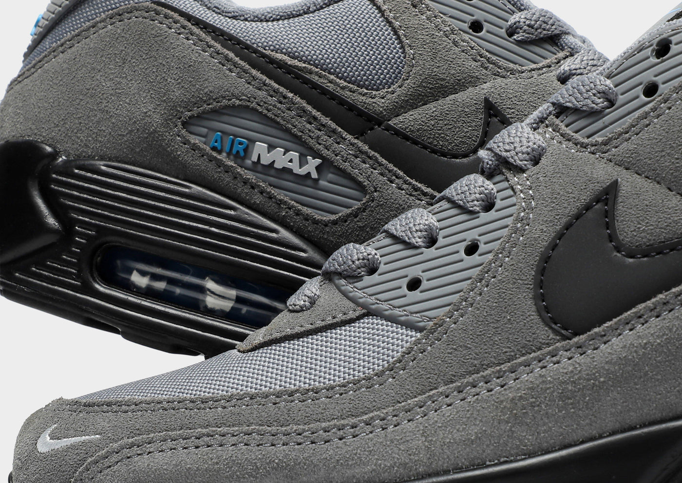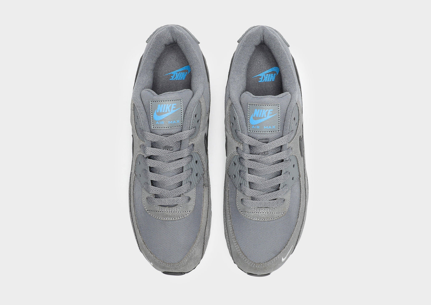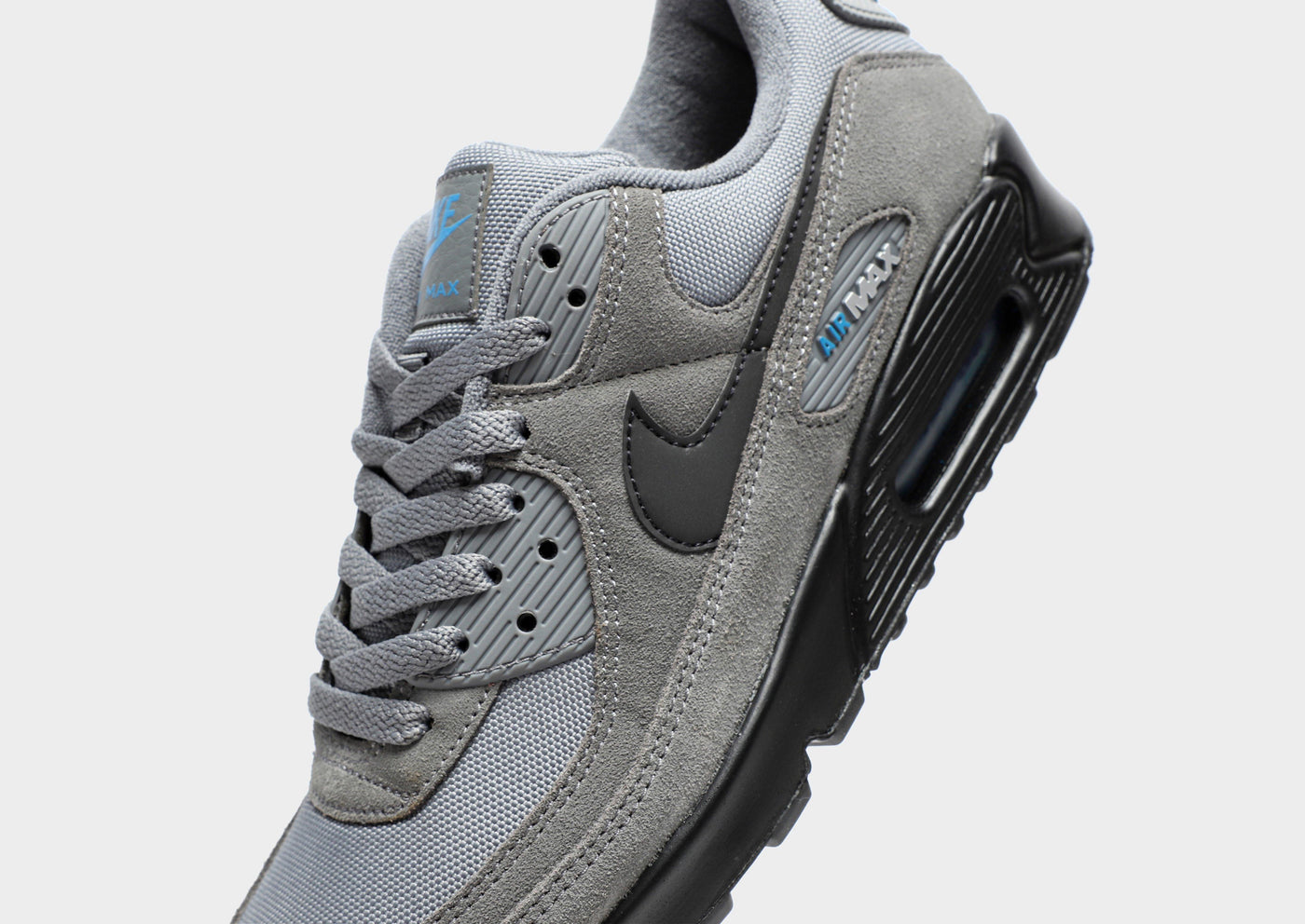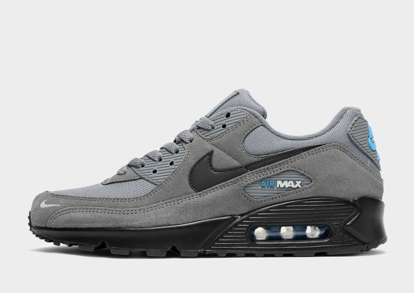 Lace up and look fresh in classic Swoosh with these men's Air Max 90 sneakers from Nike. In a Smoke Grey and Black colourway, these JD-exclusive sneaks are made with a textile and leather upper for a plush, durable feel. With a lace fastening to lock you in, they come with a padded ankle collar for snug comfort, with stitched overlays for that signature '90s look. They sit on a spongy foam midsole with a Max Air unit for a super-smooth ride, while the rubber Waffle outsole offers total traction in the streets. Finished up with Nike Air branding to the tongue and heel in Light Photo Blue.
