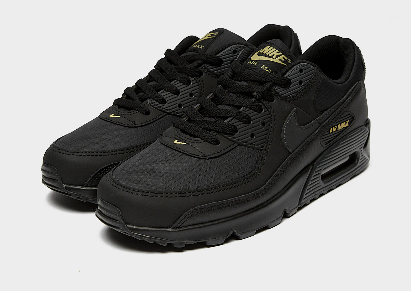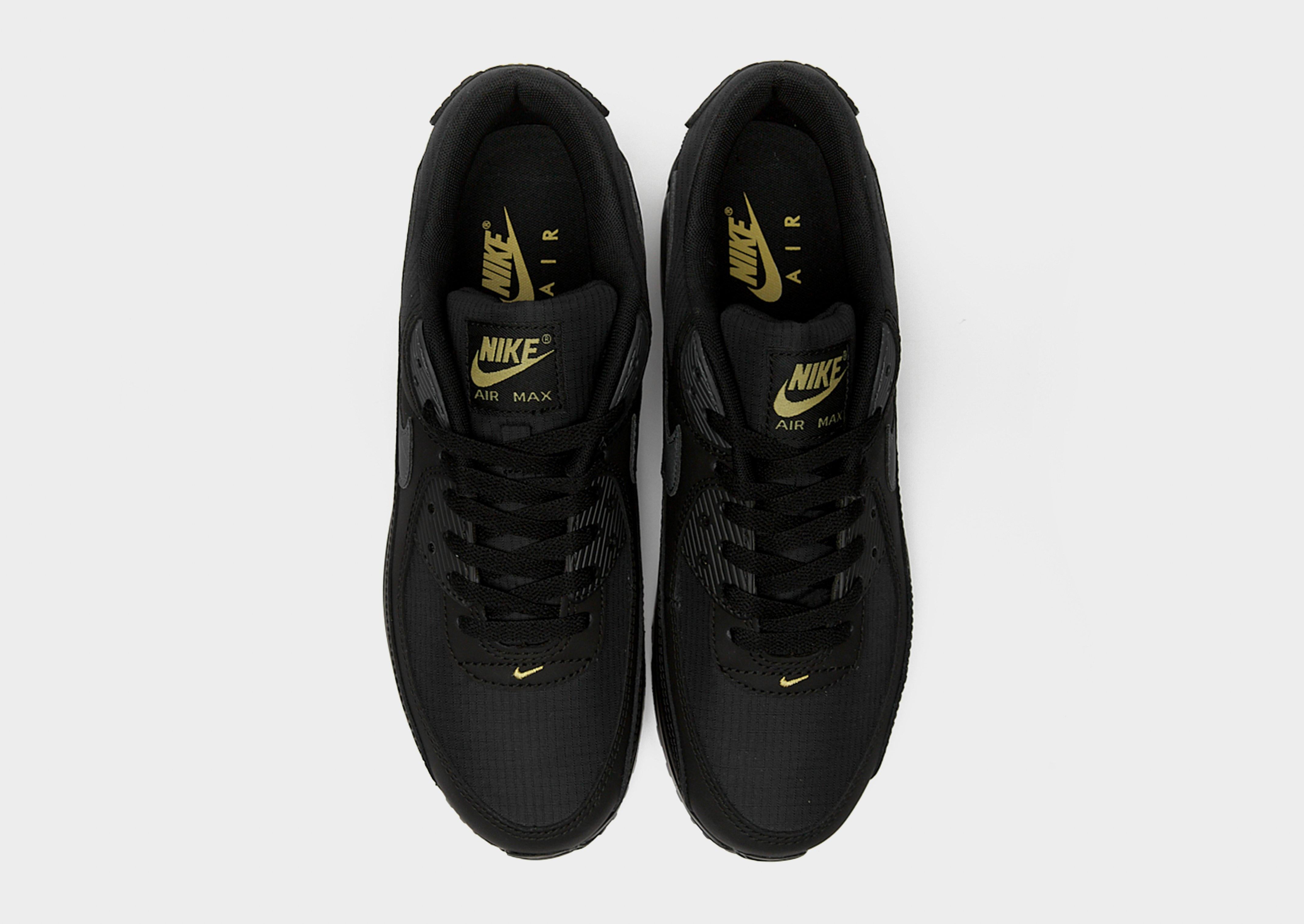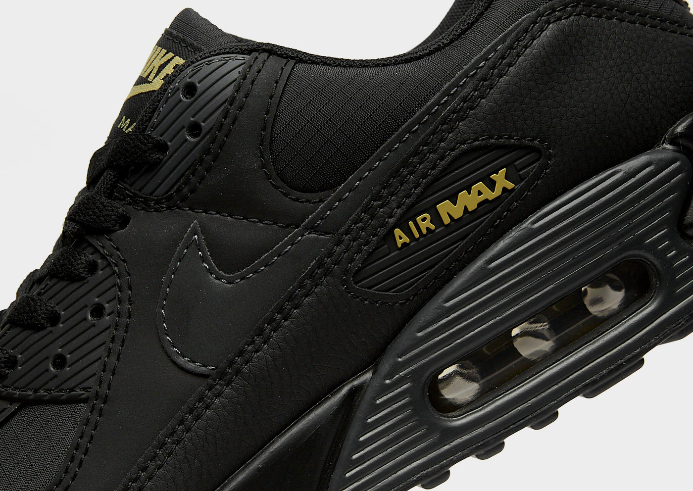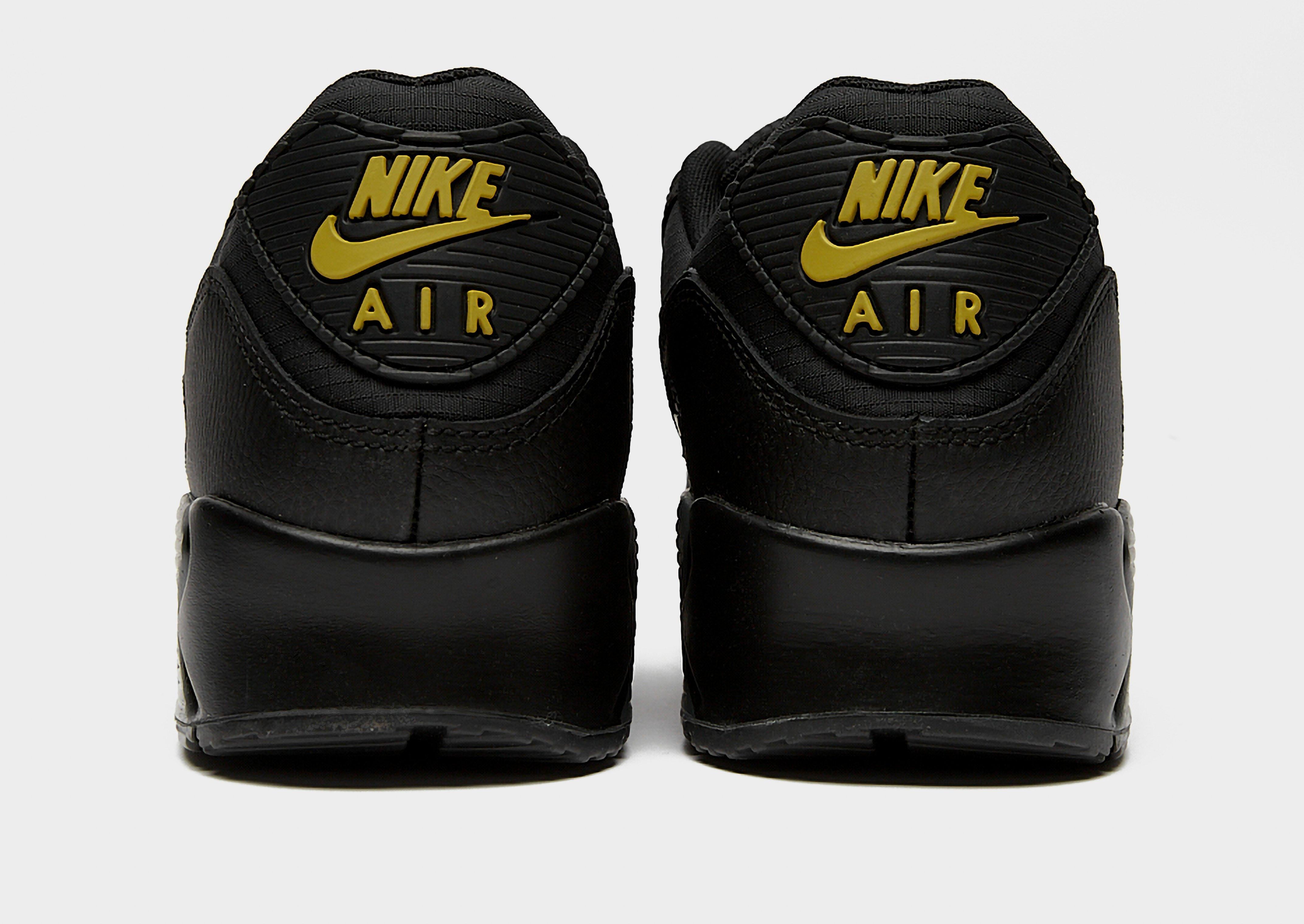 Bring '90s-inspired kicks to your rotation with these men's Air Max 90 trainers from Nike. In a Black, Buff Gold and Anthracite colourway, these JD-exclusive sneaks have a textile upper with leather and synthetic overlays for a layered look. They feature a lace fastening to lock you in, with a padded collar for extra support. Underfoot, the foam midsole and visible Max Air cushioning provide a smooth ride, whole the rubber Waffle outsole offers heritage style and grippy traction. Finished up with Air Max branding on the tongue and heel, with the signature Swoosh logo on the sidewalls.