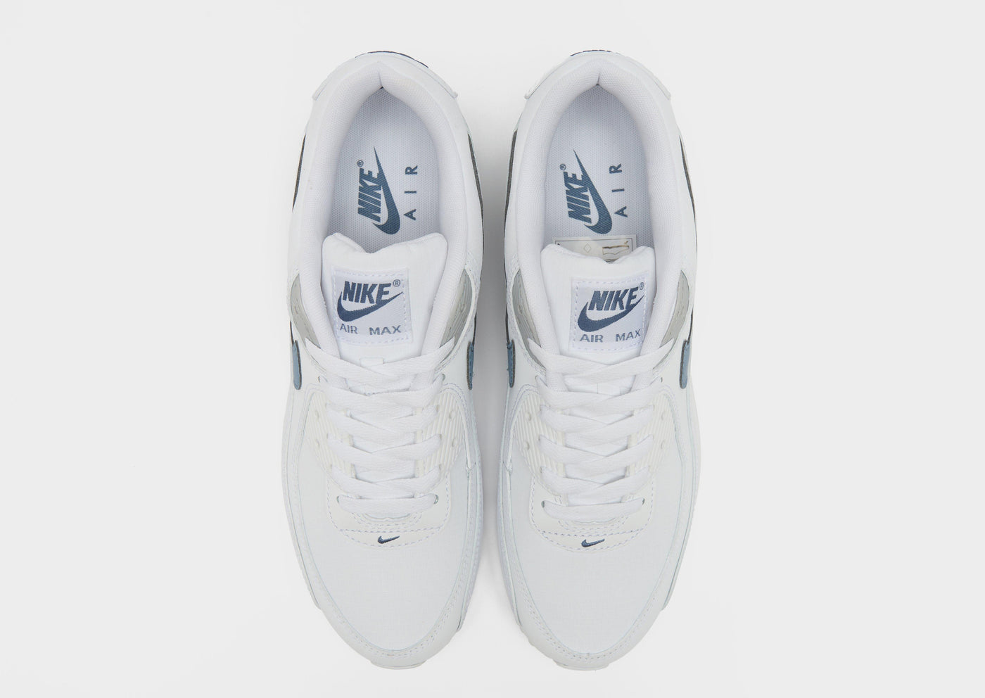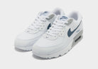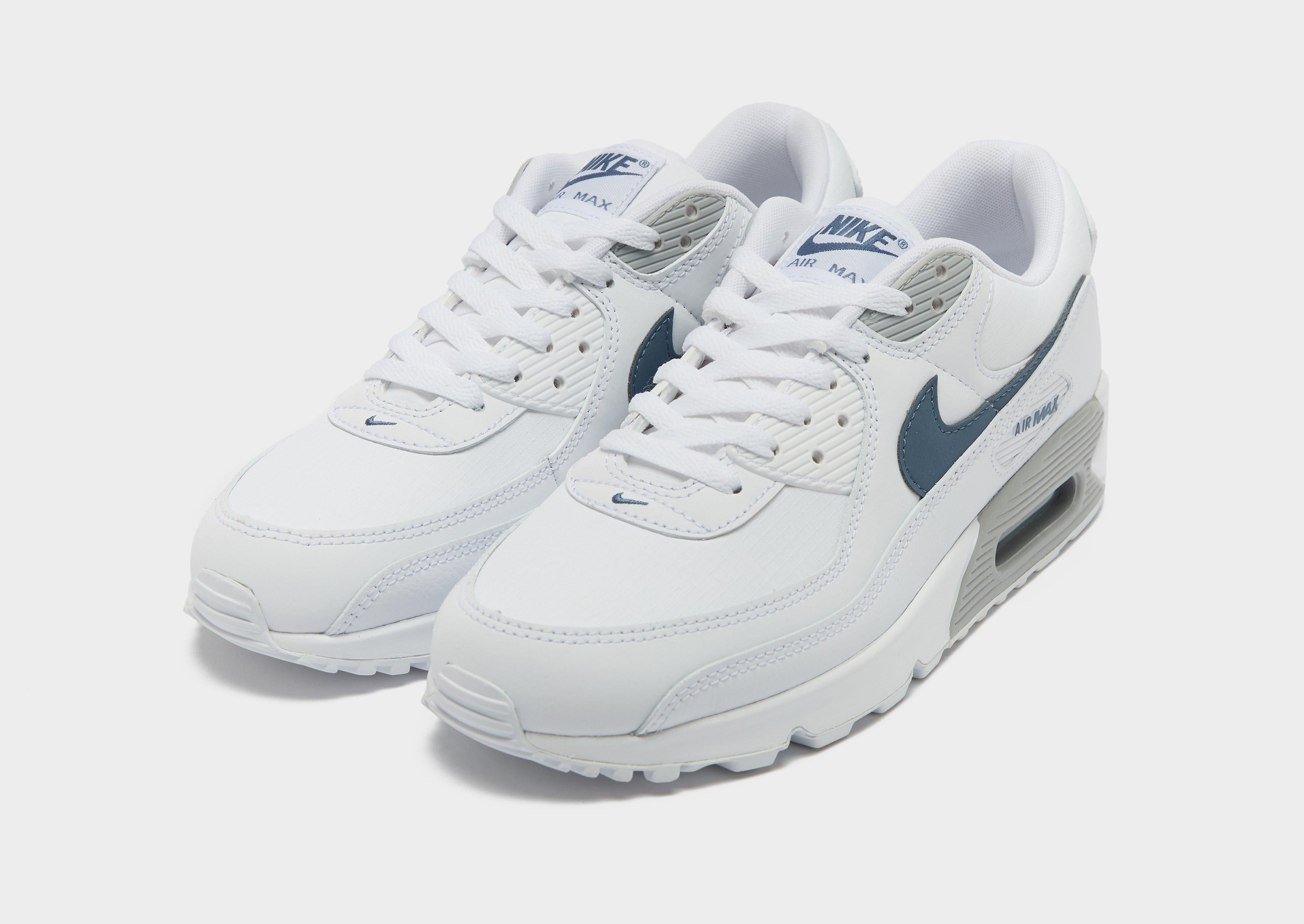 Bring the '90s energy with these men's Air Max 90 trainers from Nike. In a White, Diffused Blue and Wolf Grey colourway, these JD-exclusive sneaks have a textile upper with leather and synthetic overlays for a layered look. They feature a lace fastening to keep you locked in, while the foam midsole and Max Air cushioning provide responsive cushioning. Sat above a grippy rubber outsole, they're signed off with reflective details, Nike branding on the tongue and heel, and the signature Swoosh logo to the sidewalls.